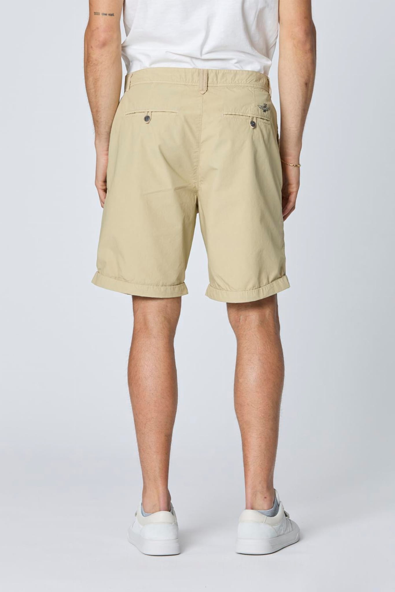 ⇒ Dwie boczne kieszenie wykończone wstawkami ze strukturalnej bawełny oraz dwie z tyłu zapinane na guzik.