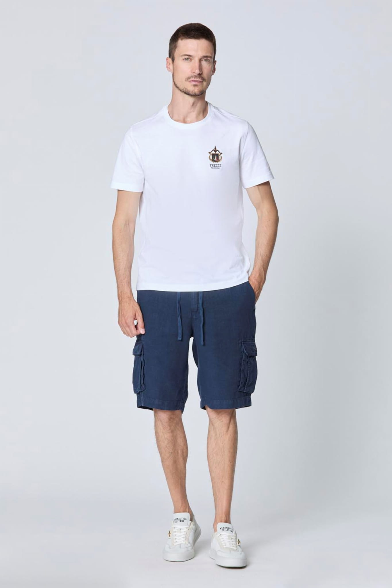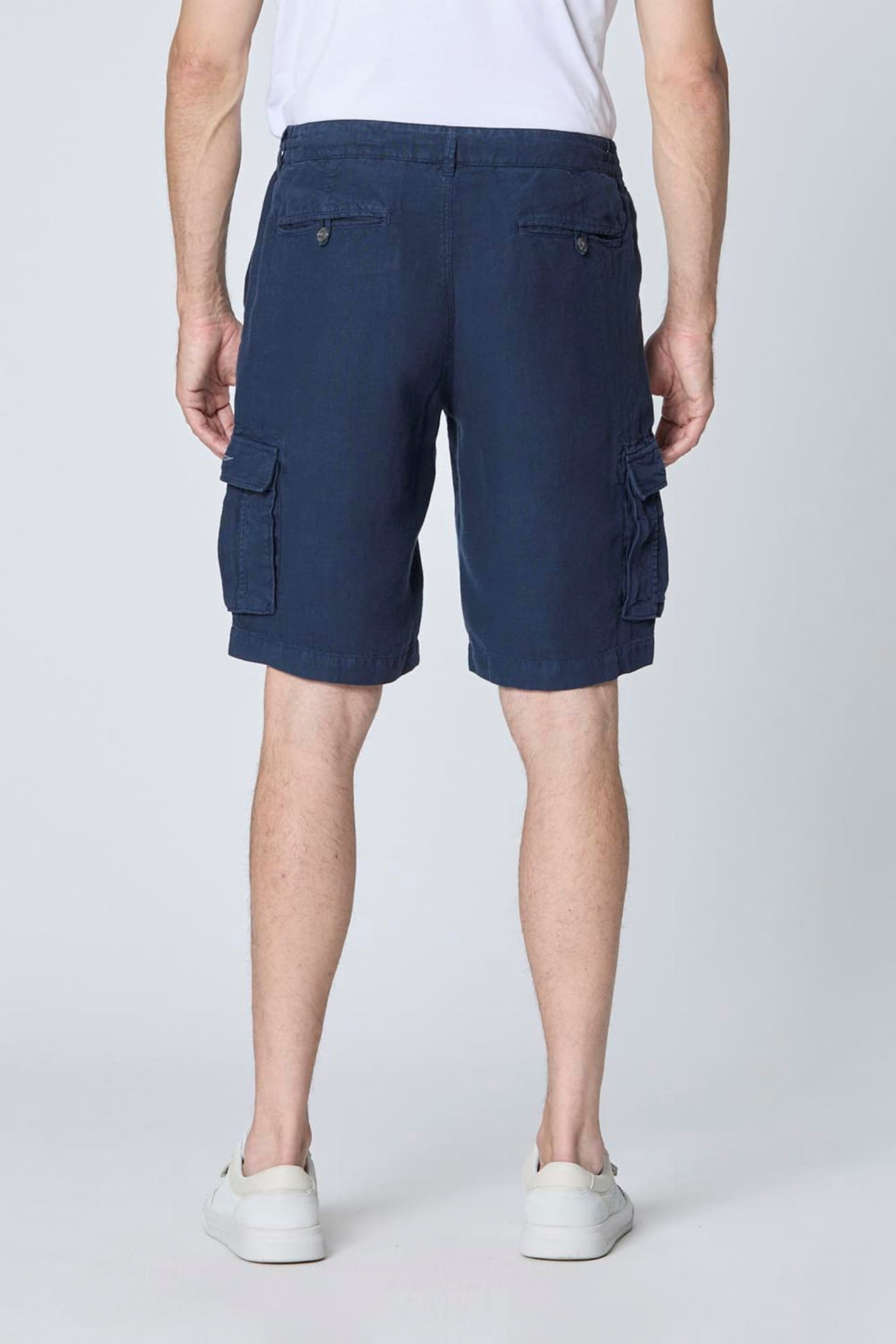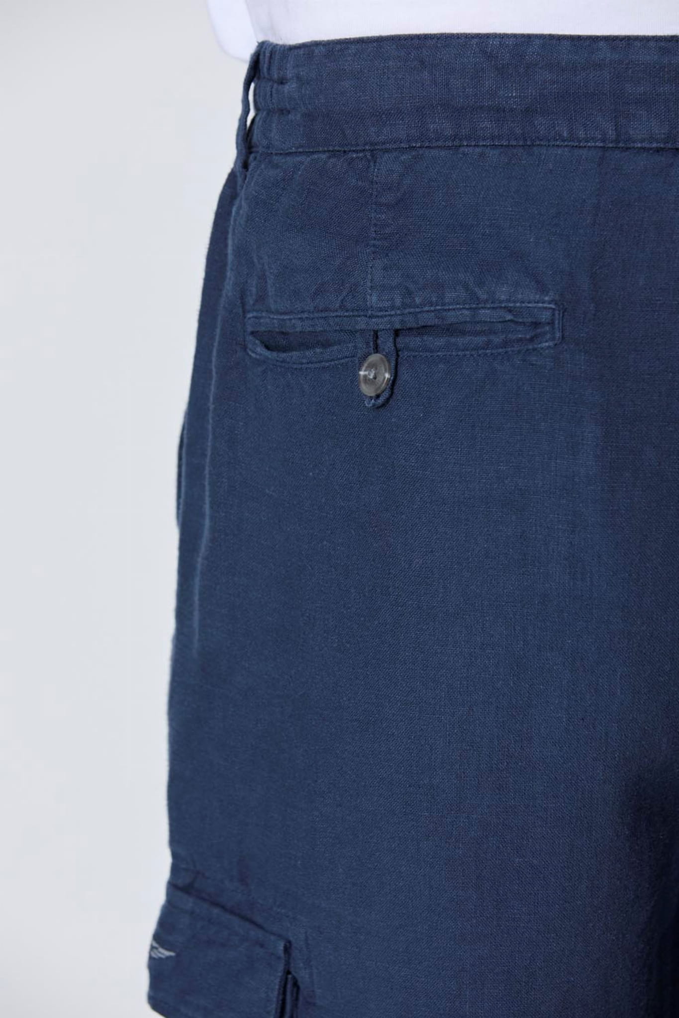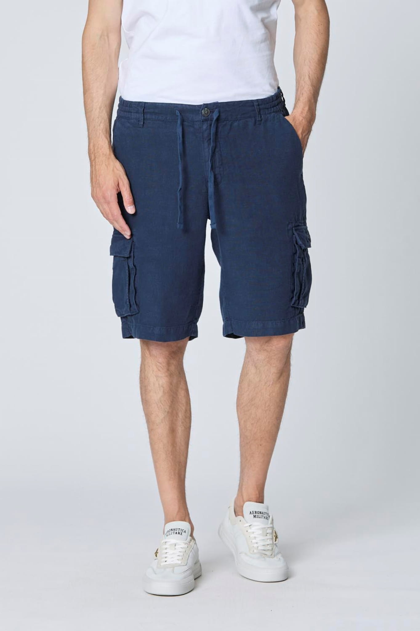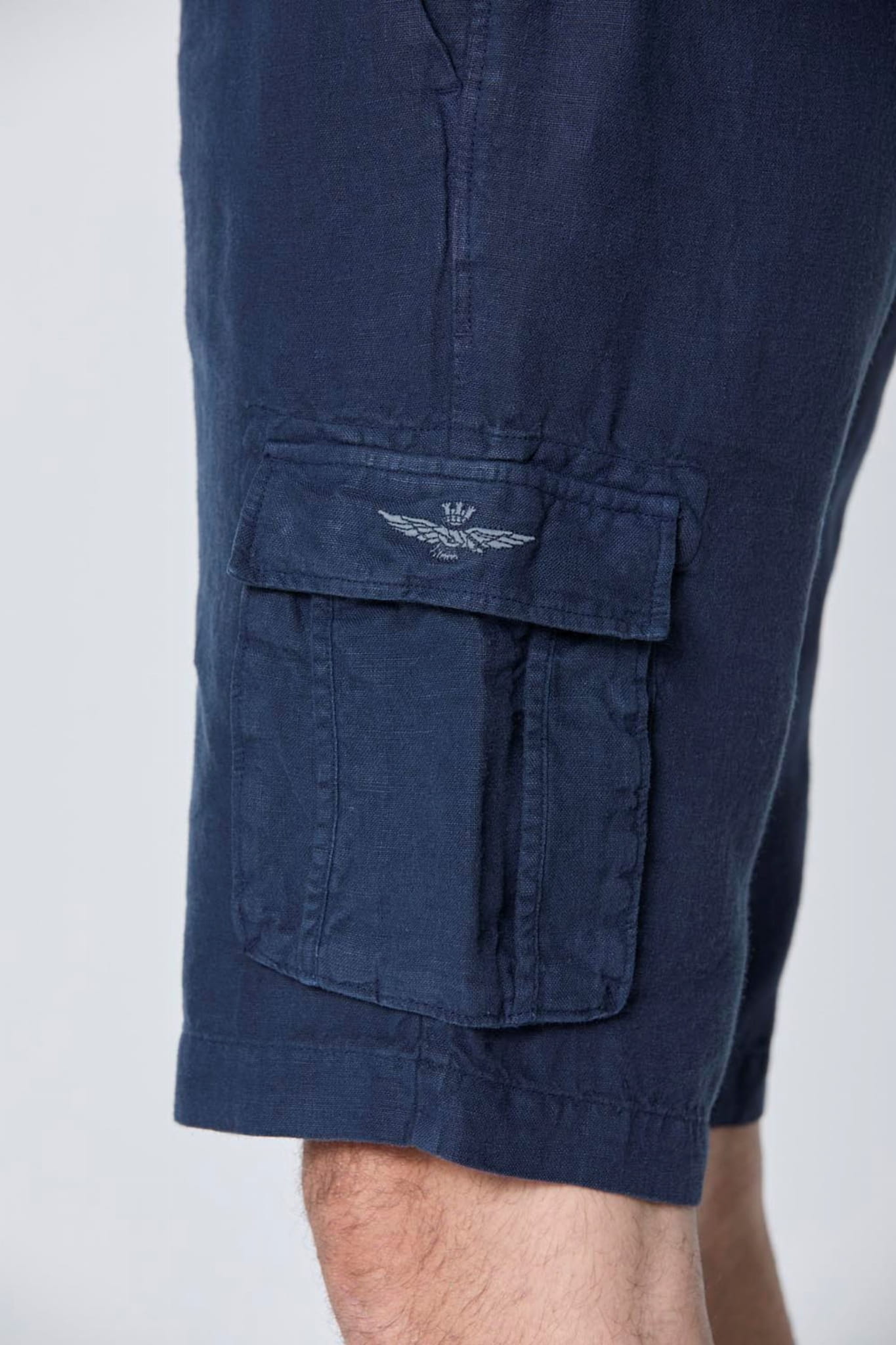 Męskie krótkie spodenki lniane bermudy szorty marki Aeronautica Militare, w kolorze granatowym.