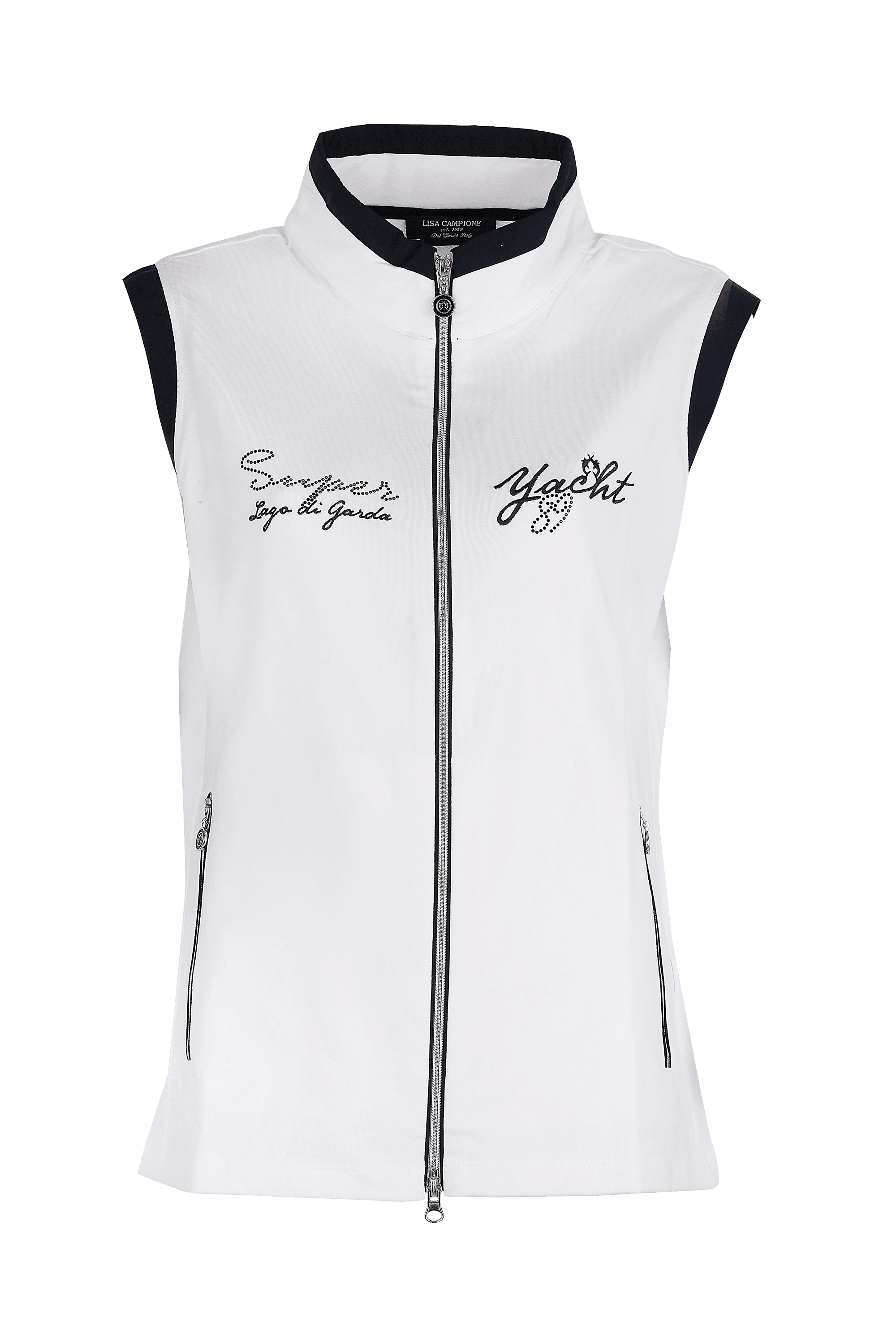 Damski rozpinany bezrękawnik marki Campione, w kolorze białym.