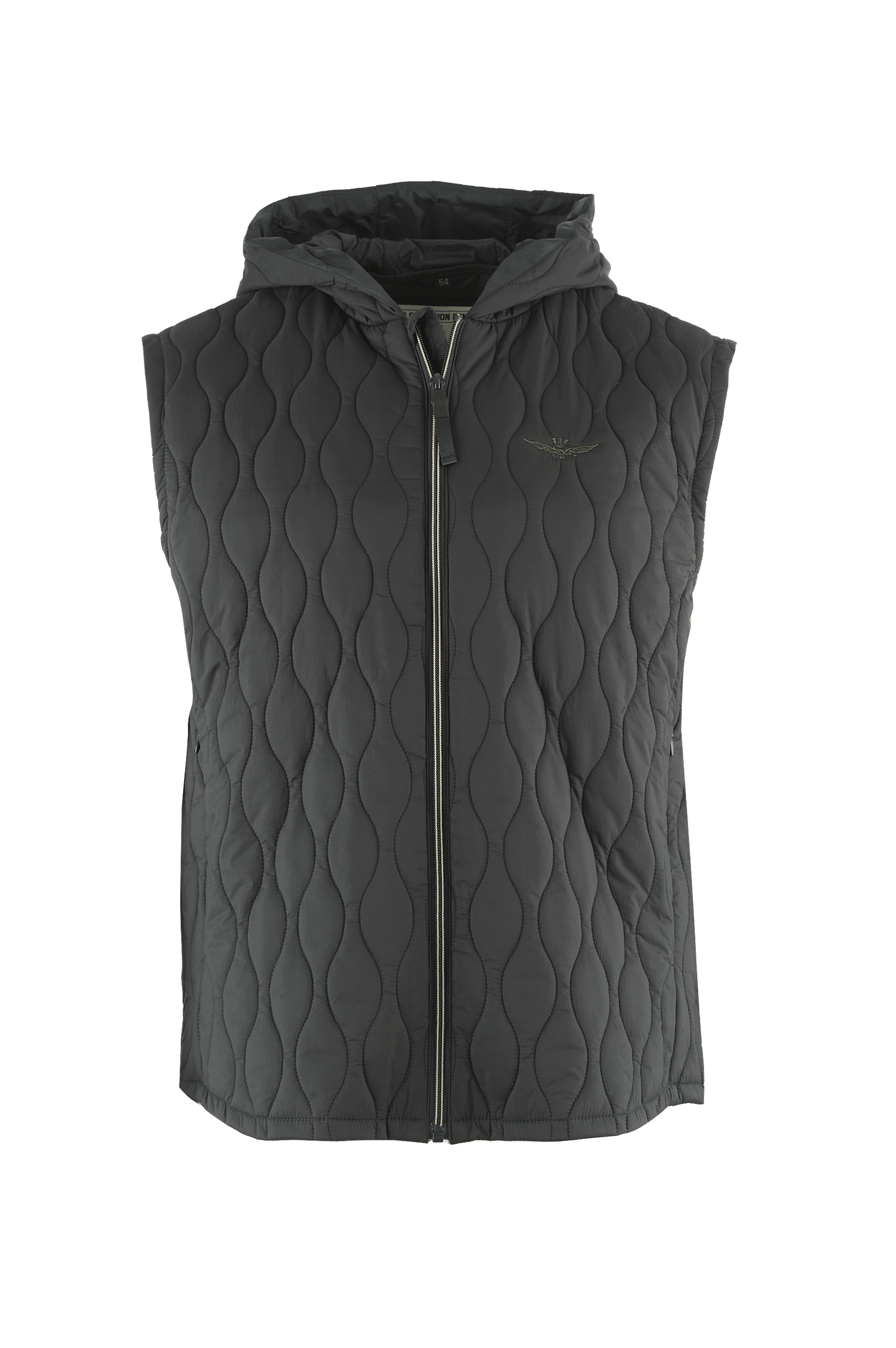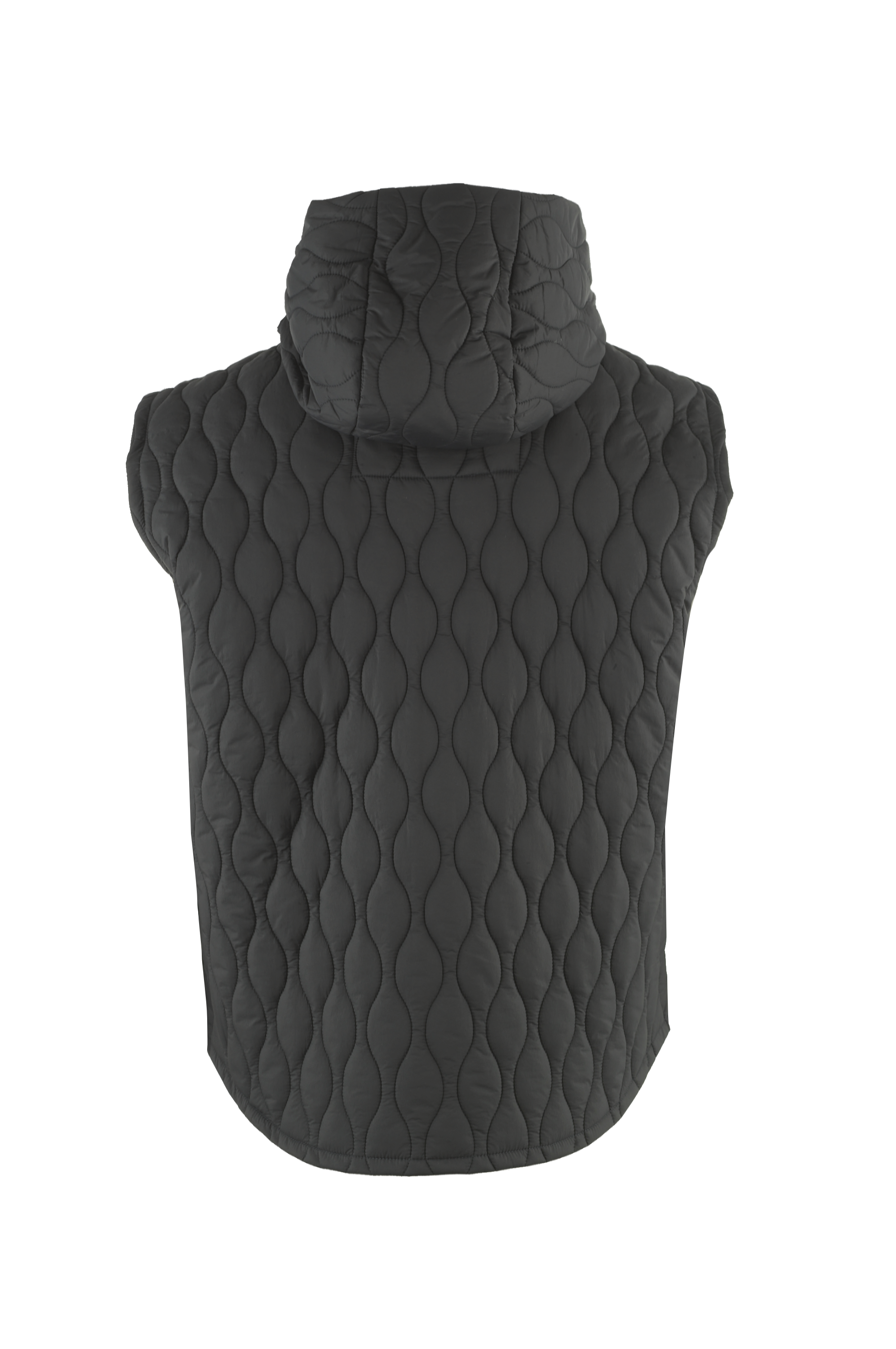 Męski pikowany bezrękawnik z kapturem w kolorze czarnym.