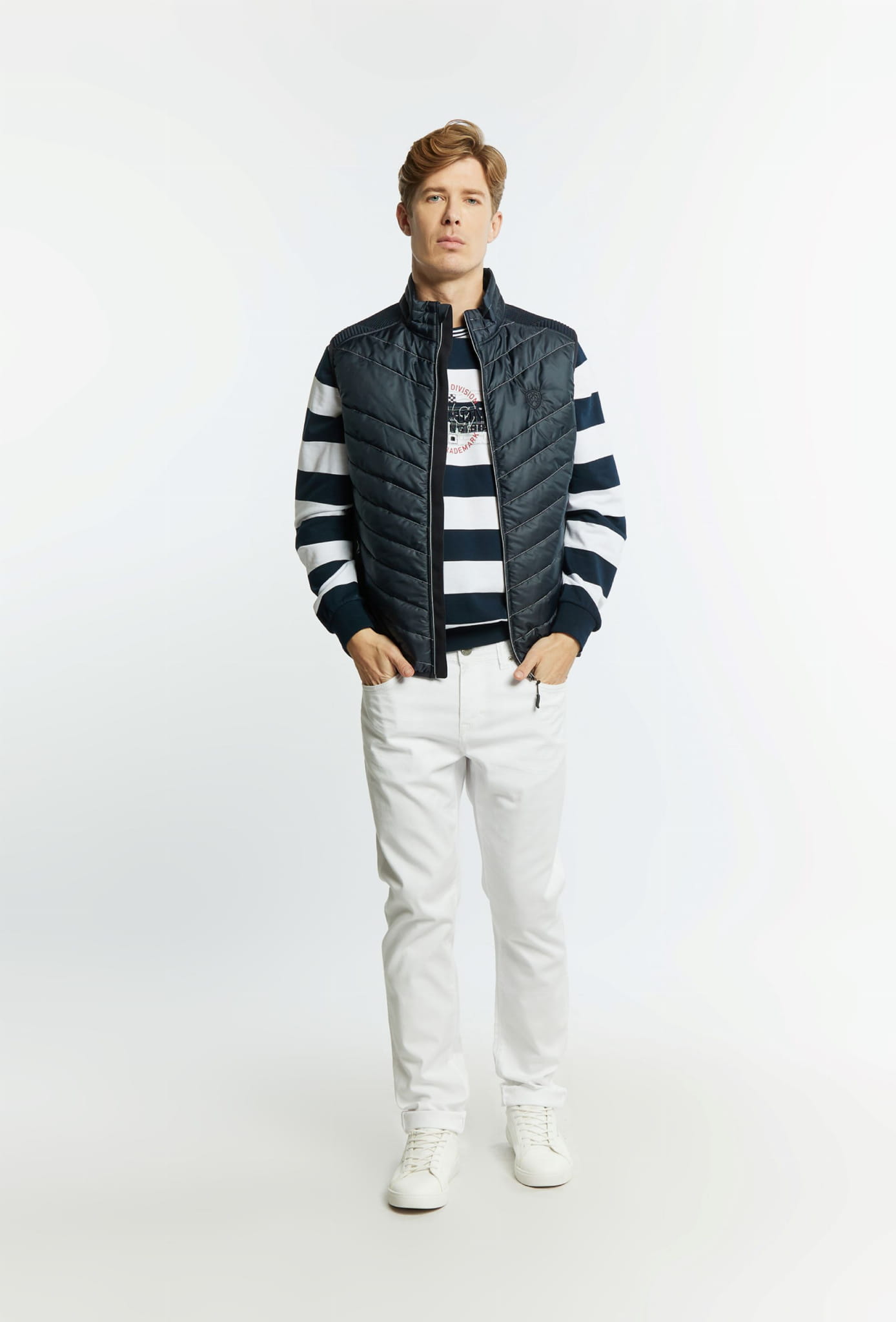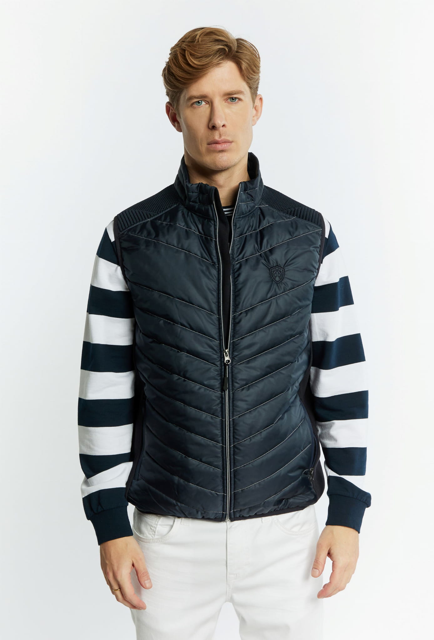 Męski bezrękawnik pikowany marki Campione, w kolorze granatowym.