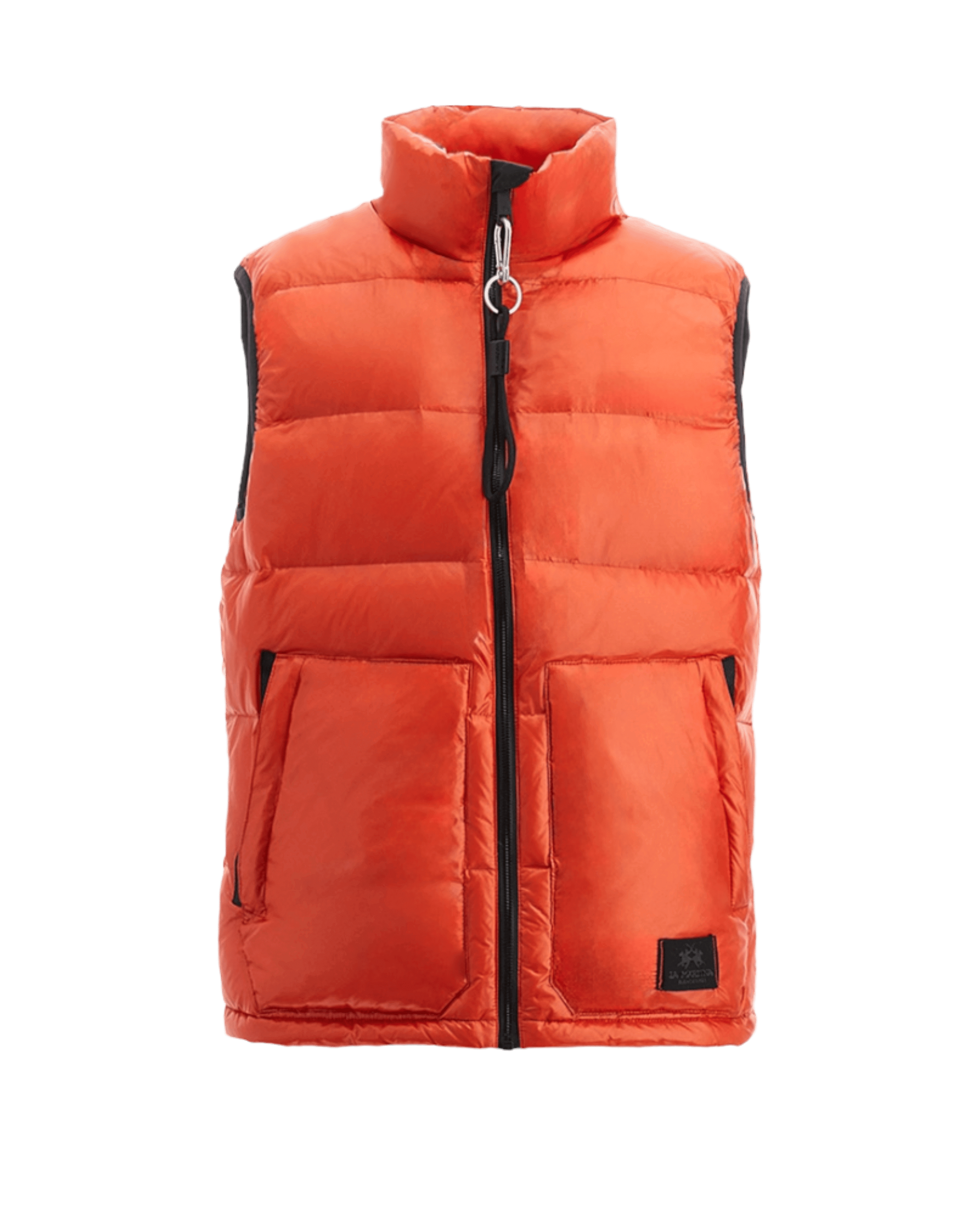 Męski pikowany puchowy bezrękawnik marki La Martina, w kolorze pomarańczowym.