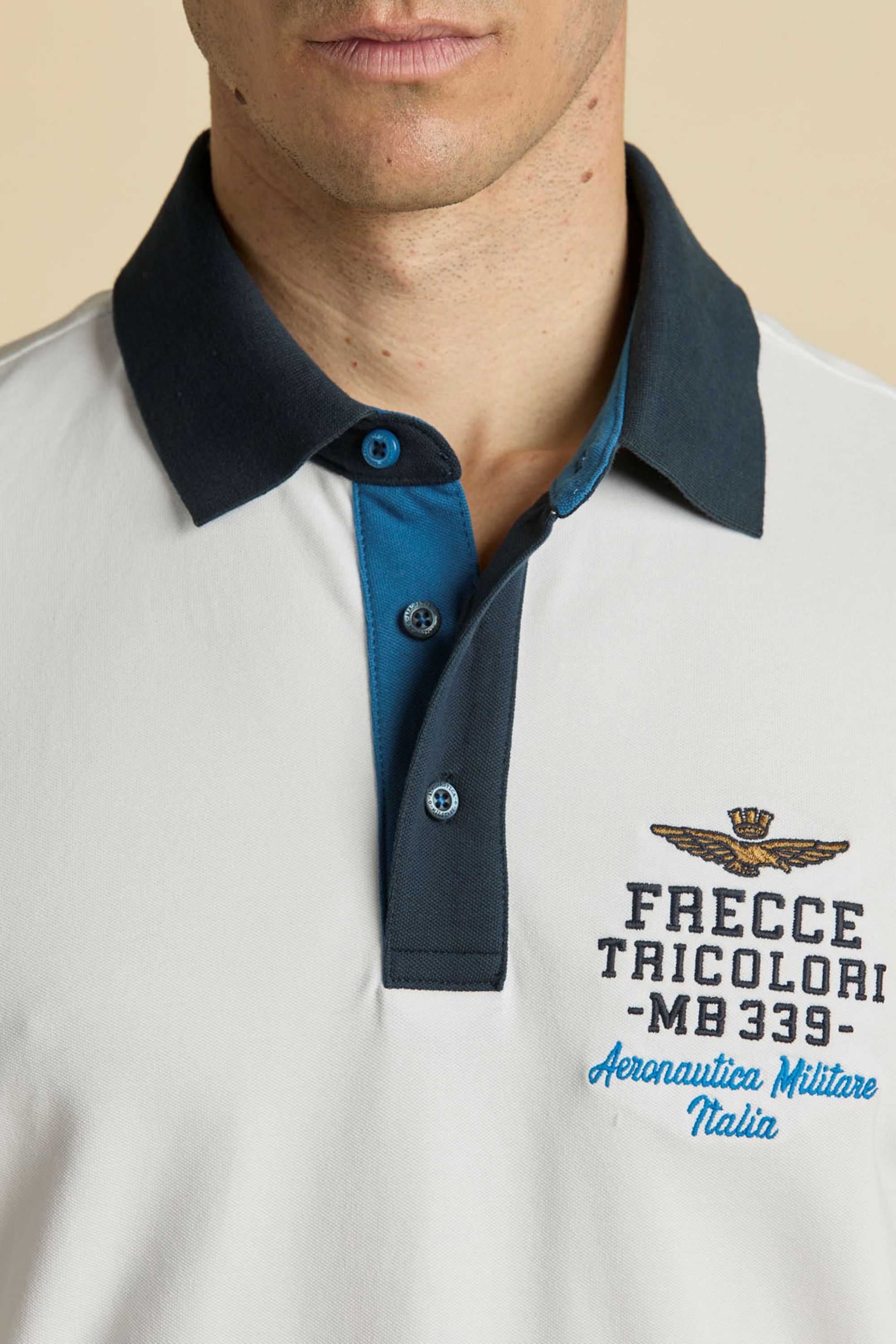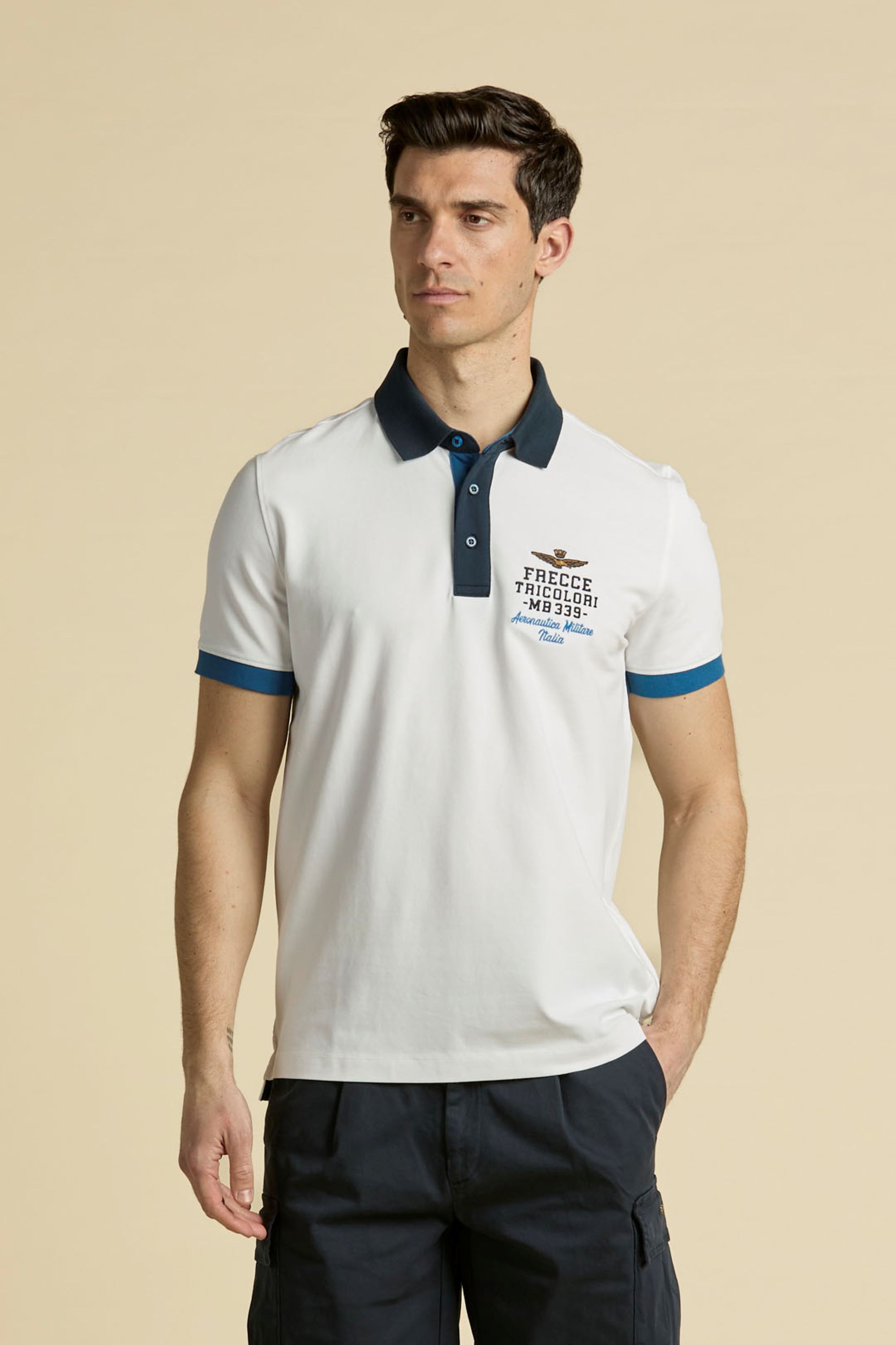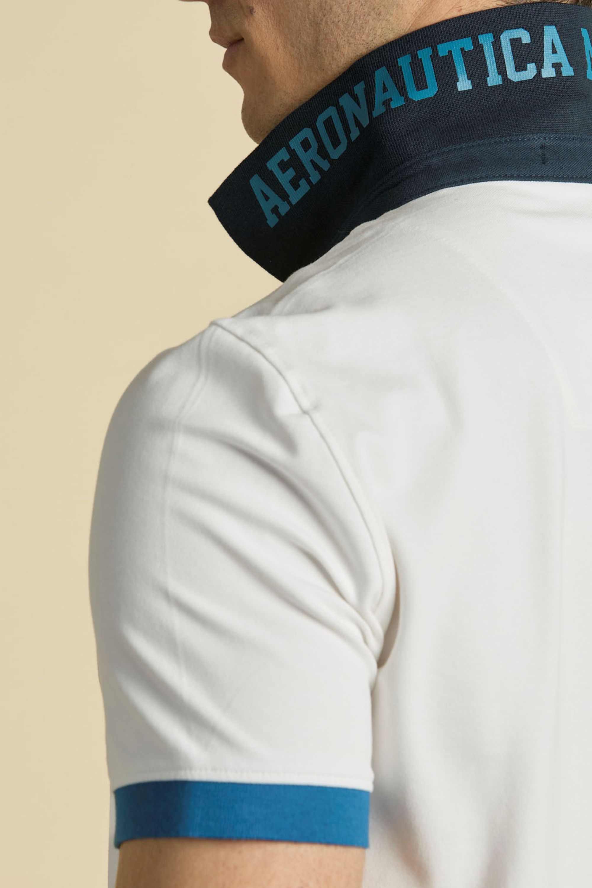 Męska Koszulka polo z krótkim rękawem i kołnierzykiem marki Aeronautica Militare, w kolorze białym.