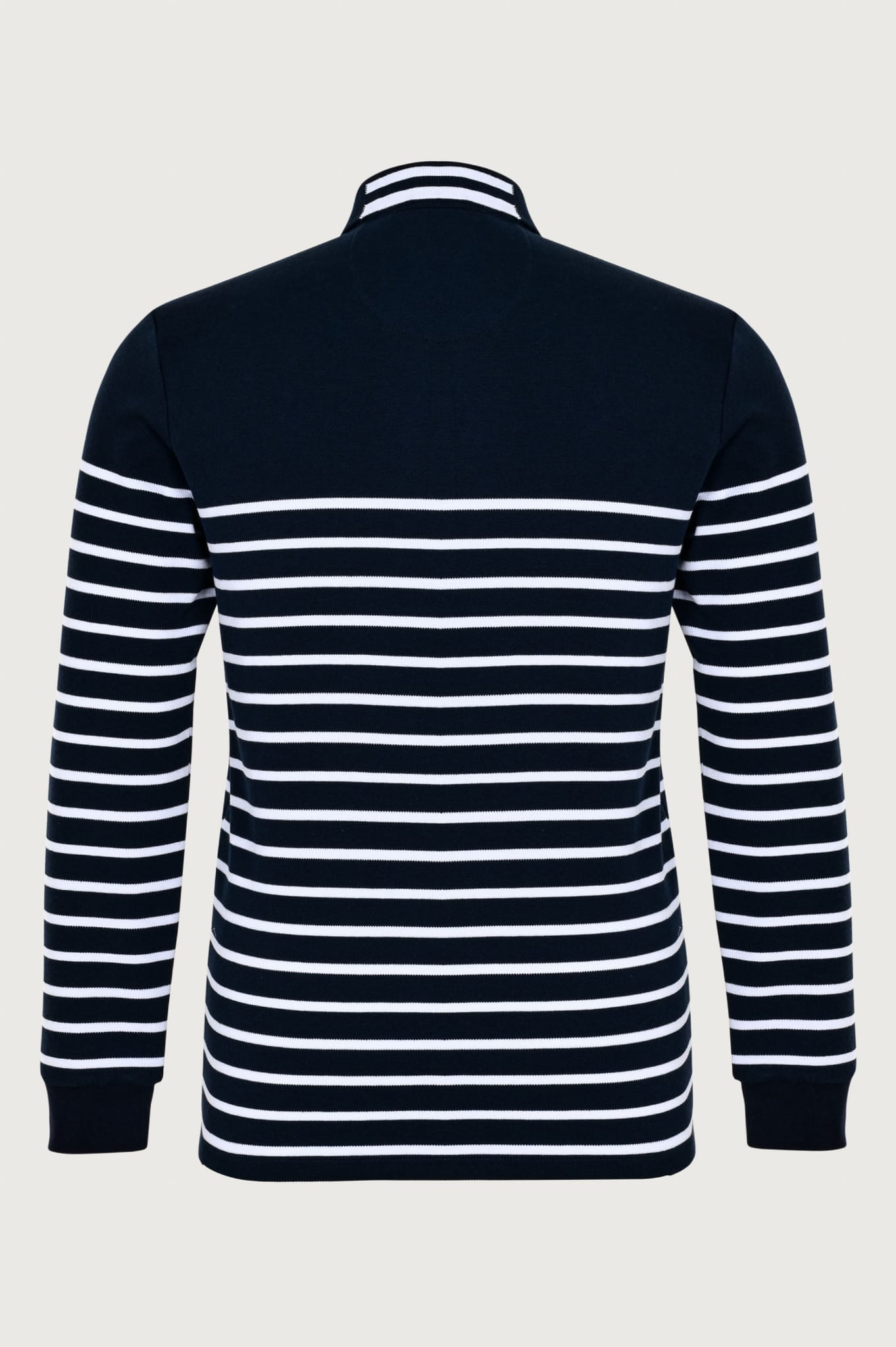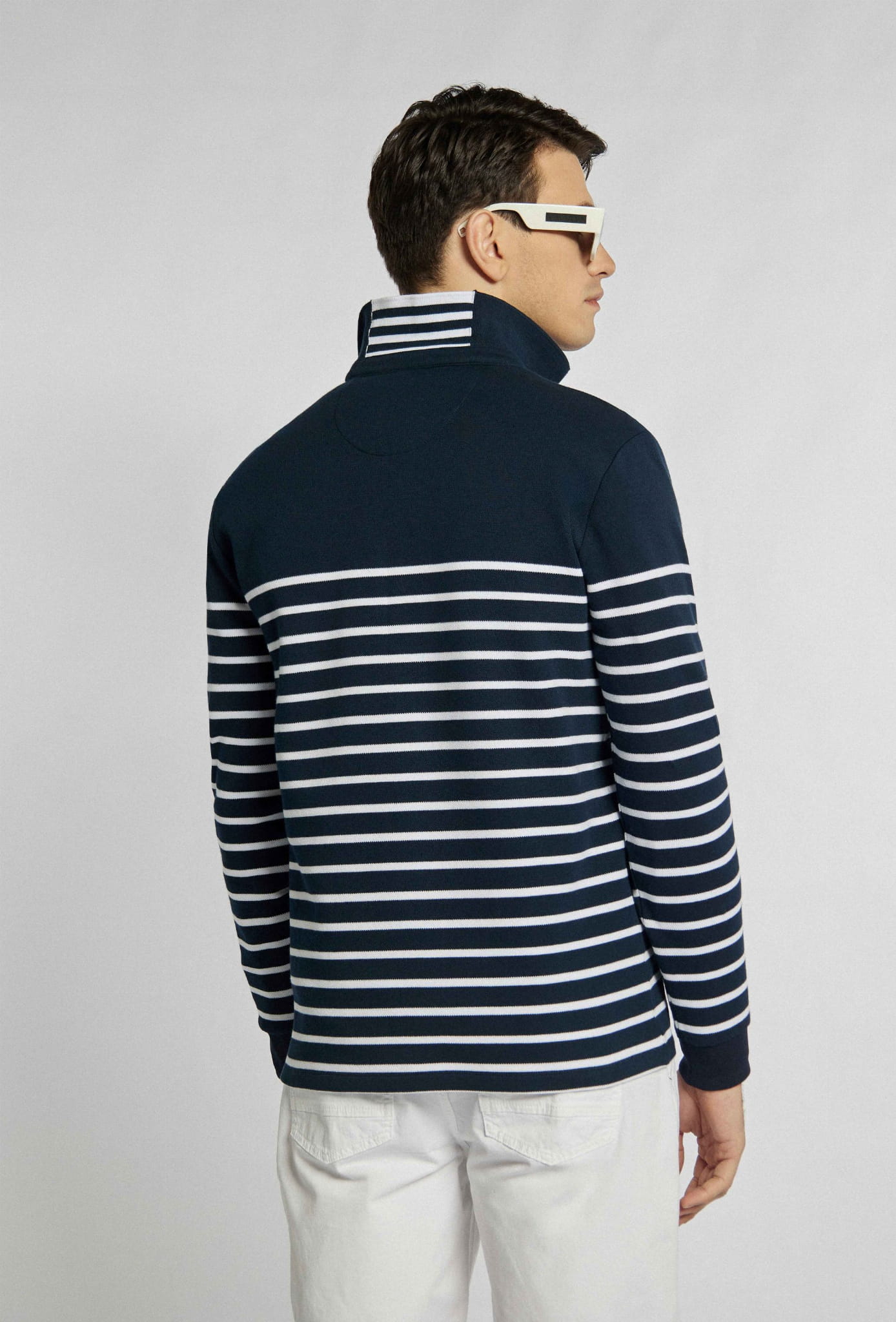 ⇒ Prążkowany kołnierzyk z kontrastową wstawką z tyłu.