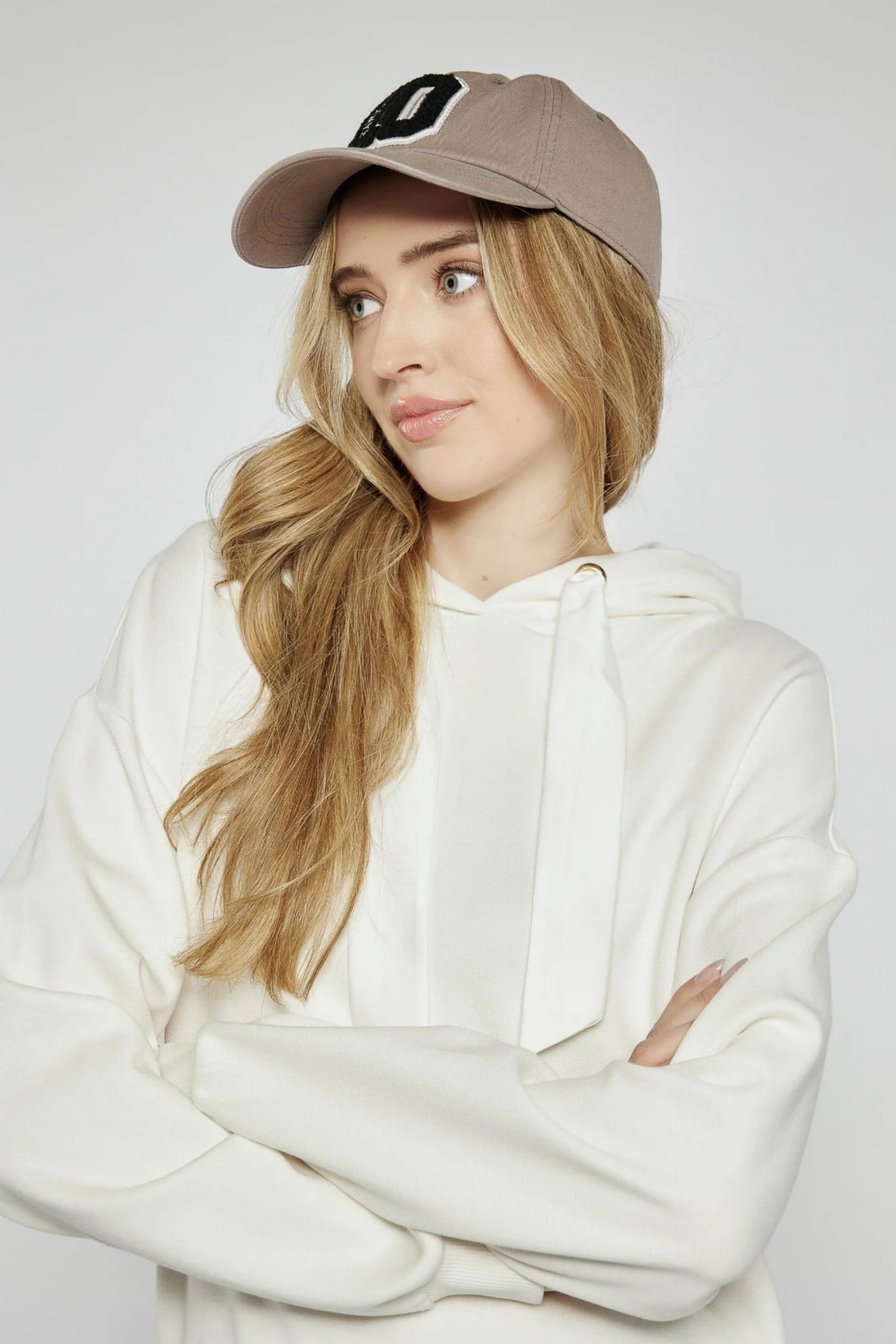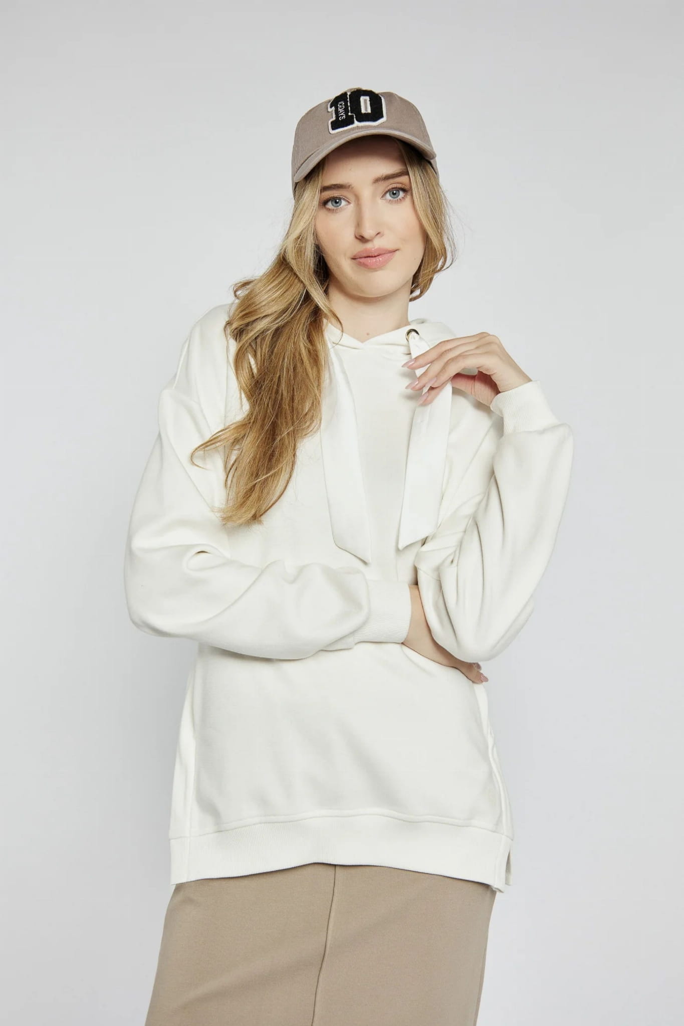 Damska bluza z kapturem wkładana przez głowę marki Campione, w kolorze kremowym.