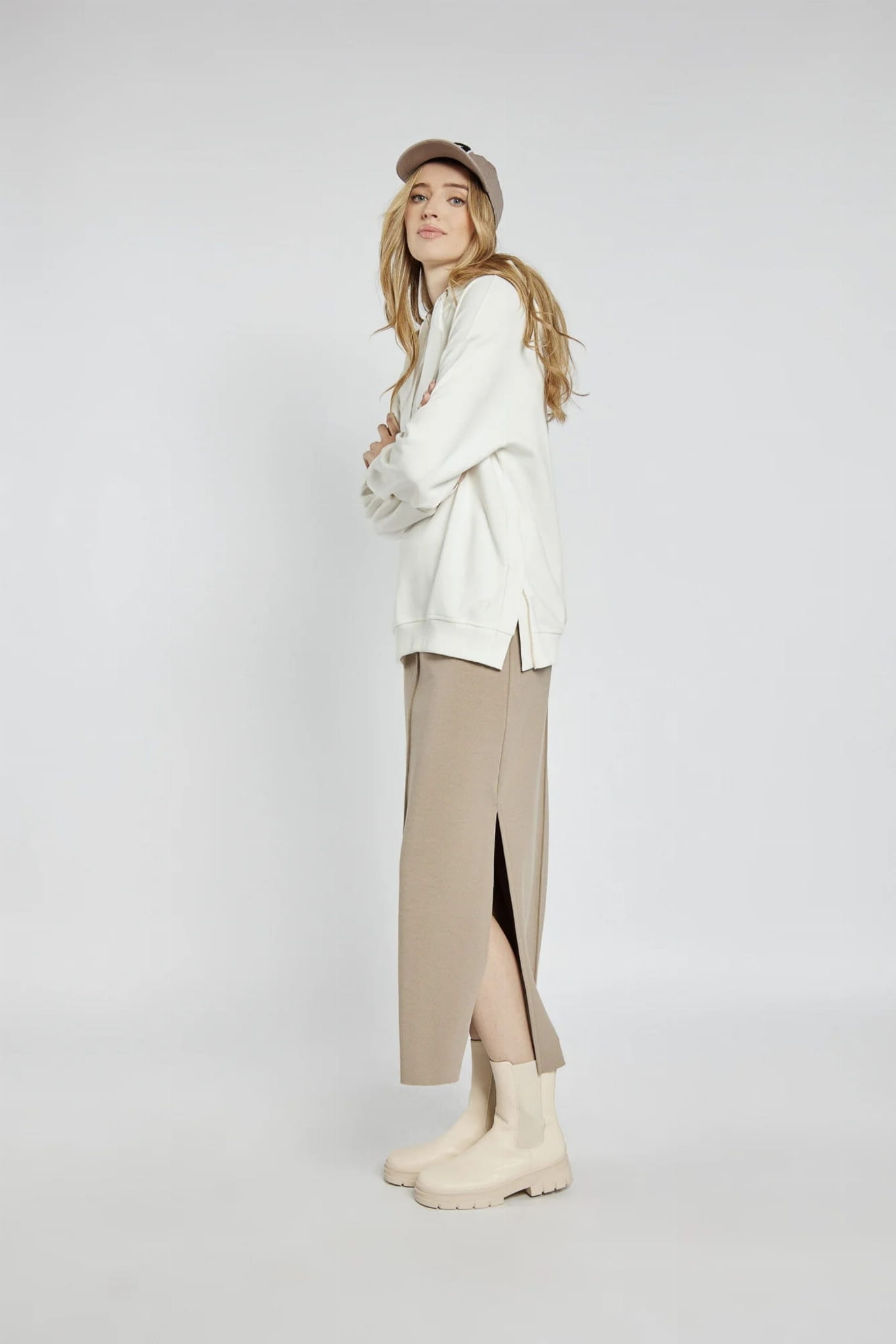 ⇒ Modelka ma 181 cm wzrostu i nosi rozmiar 36.