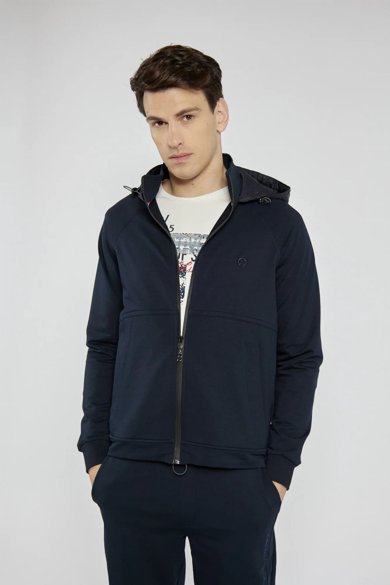 Męska rozpinana bluza z kapturem marki Campione, w kolorze granatowym.