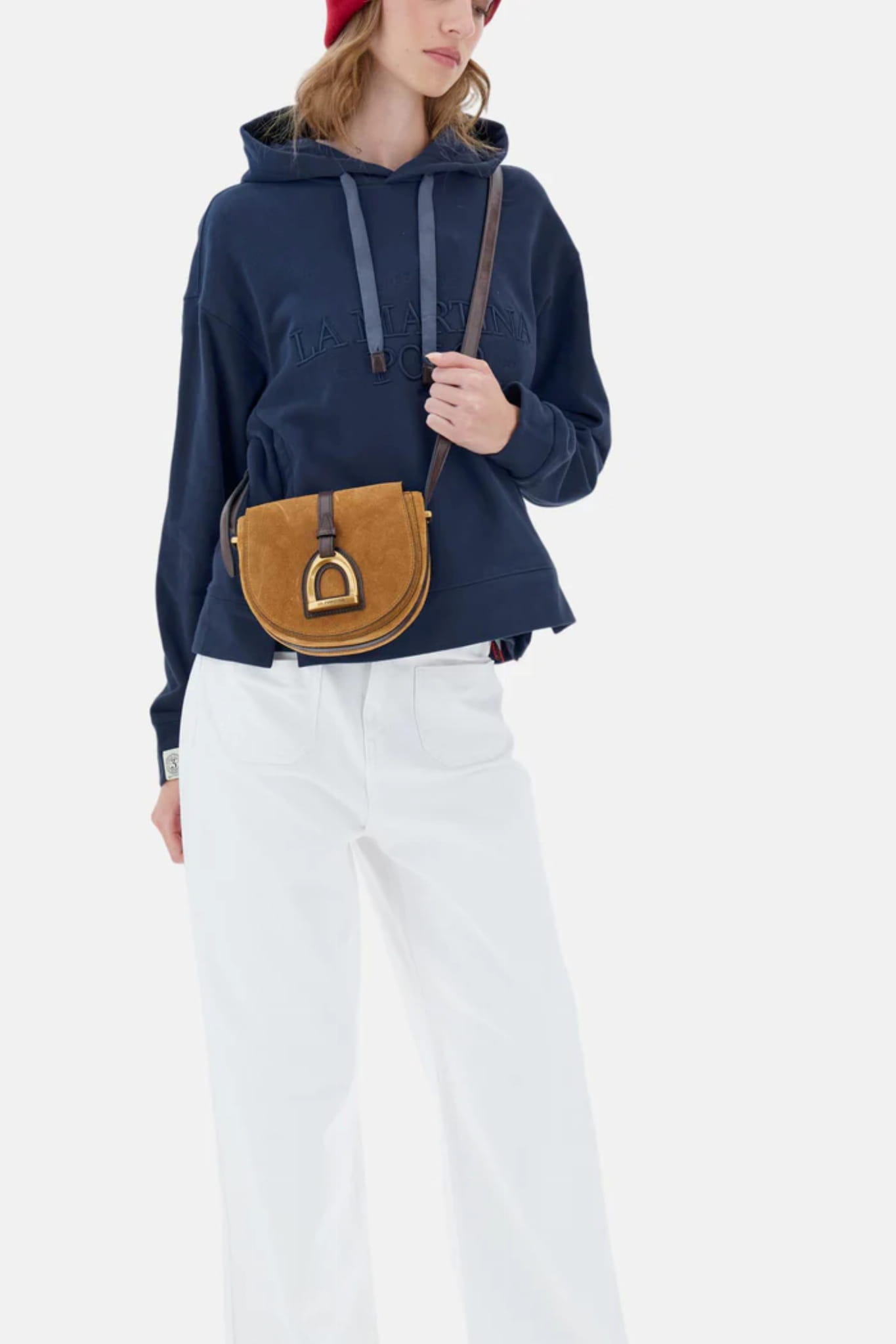 Damska bluza z kapturem wkładana przez głowę marki La Martina, w kolorze granatowym.