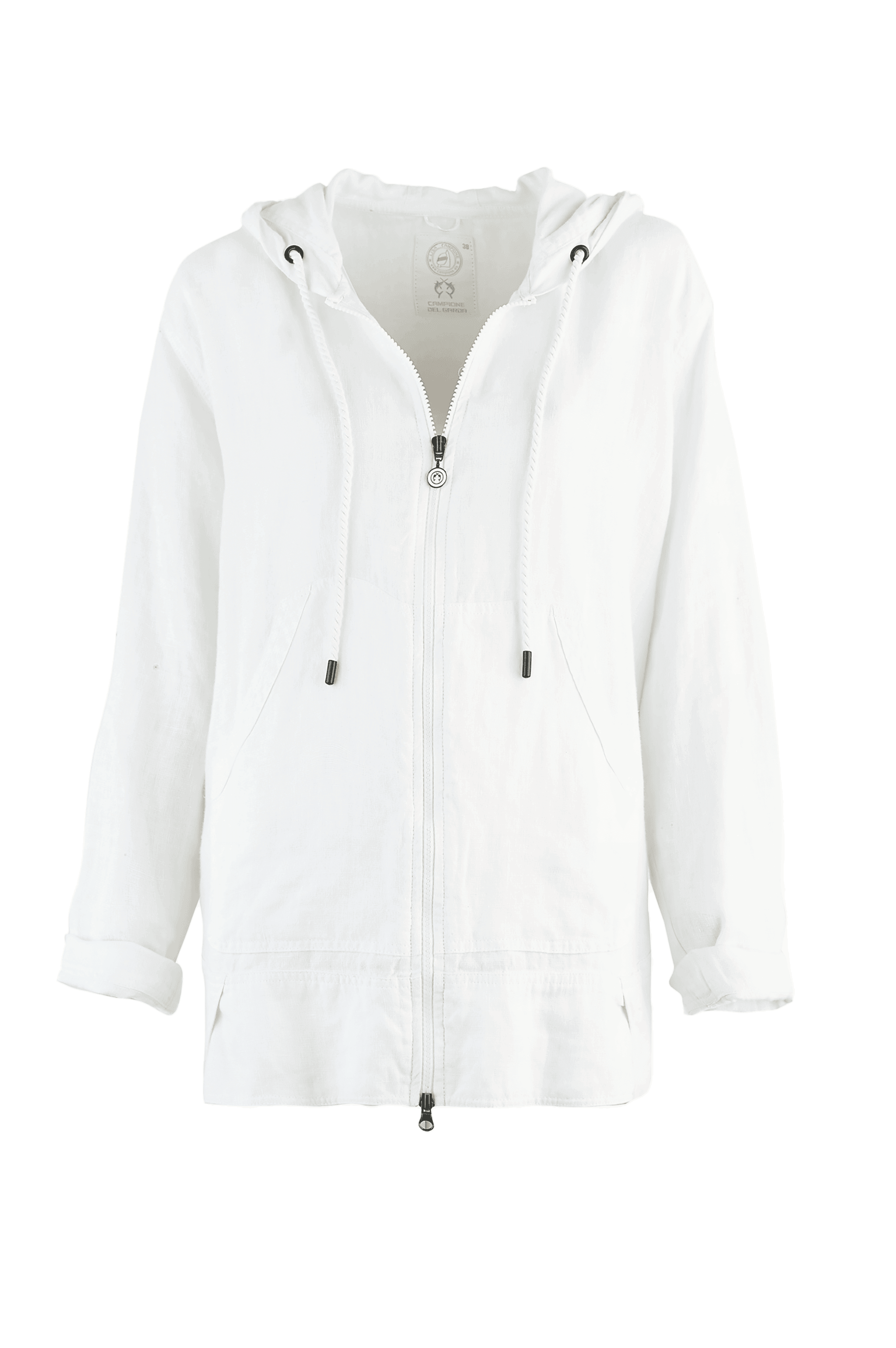 Damska rozpinana lniana bluza oversize z kapturem marki Campione, w kolorze białym.