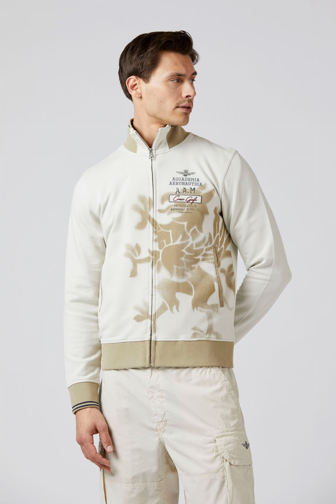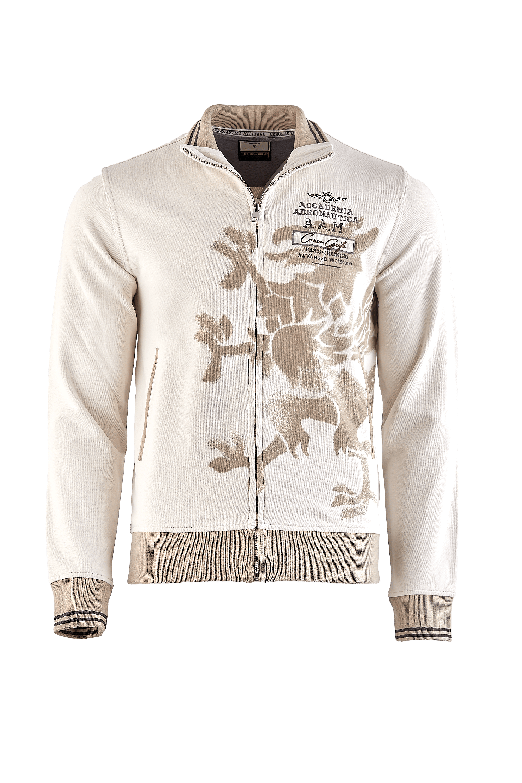 Męska rozpinana bluza z kieszeniami i stójką marki Aeronautica Militare, w kolorze beżowym.