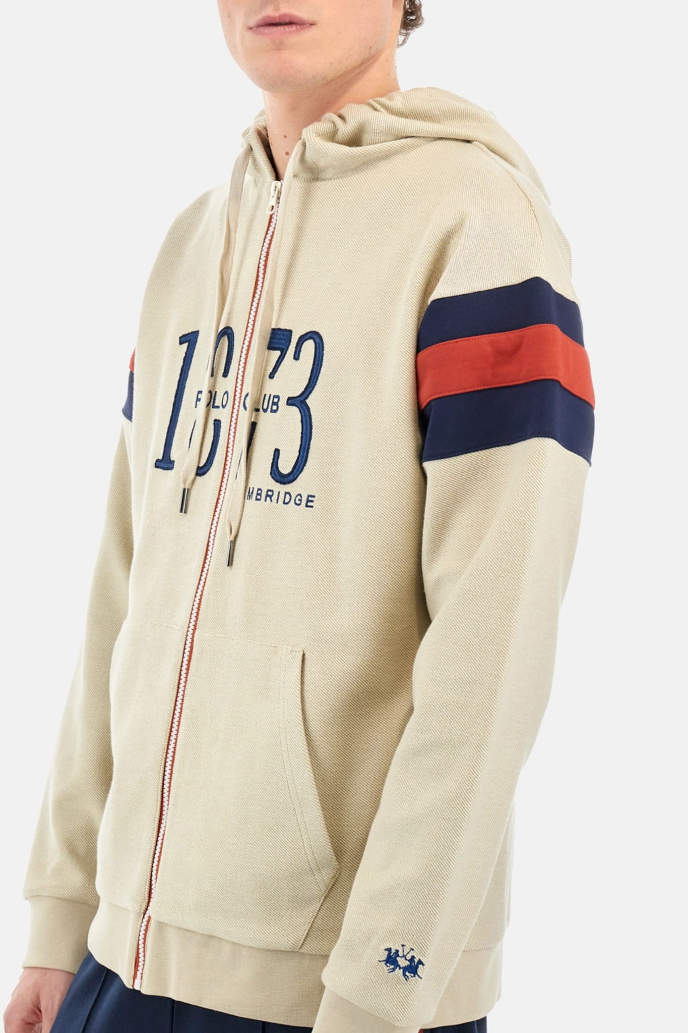 Męska bluza z kapturem marki La Martina, w kolorze piaskowym.