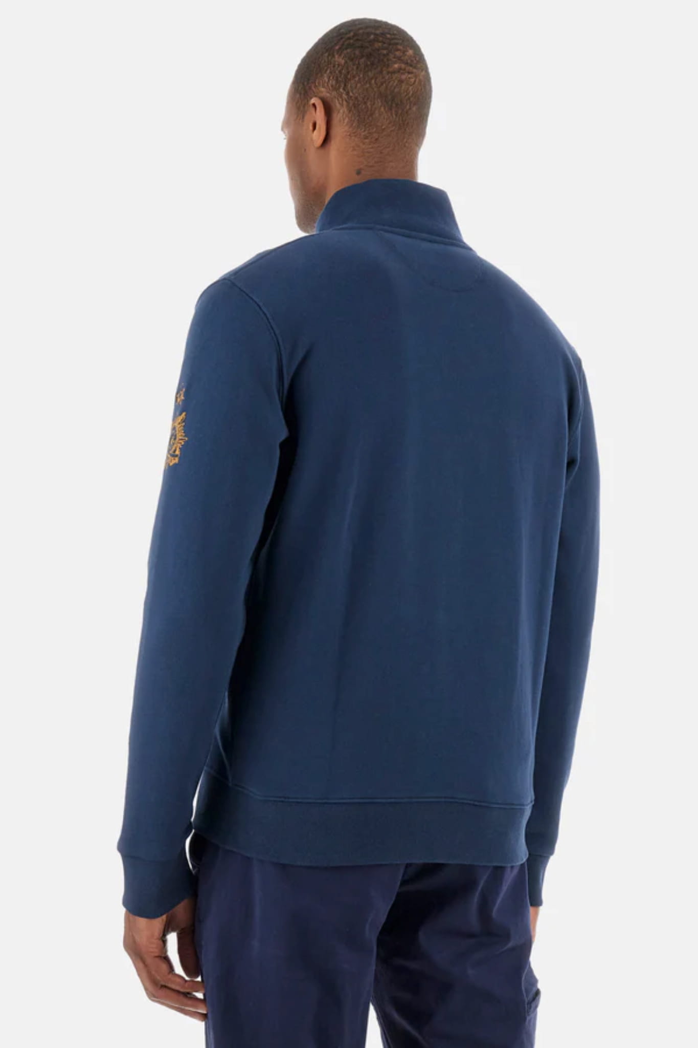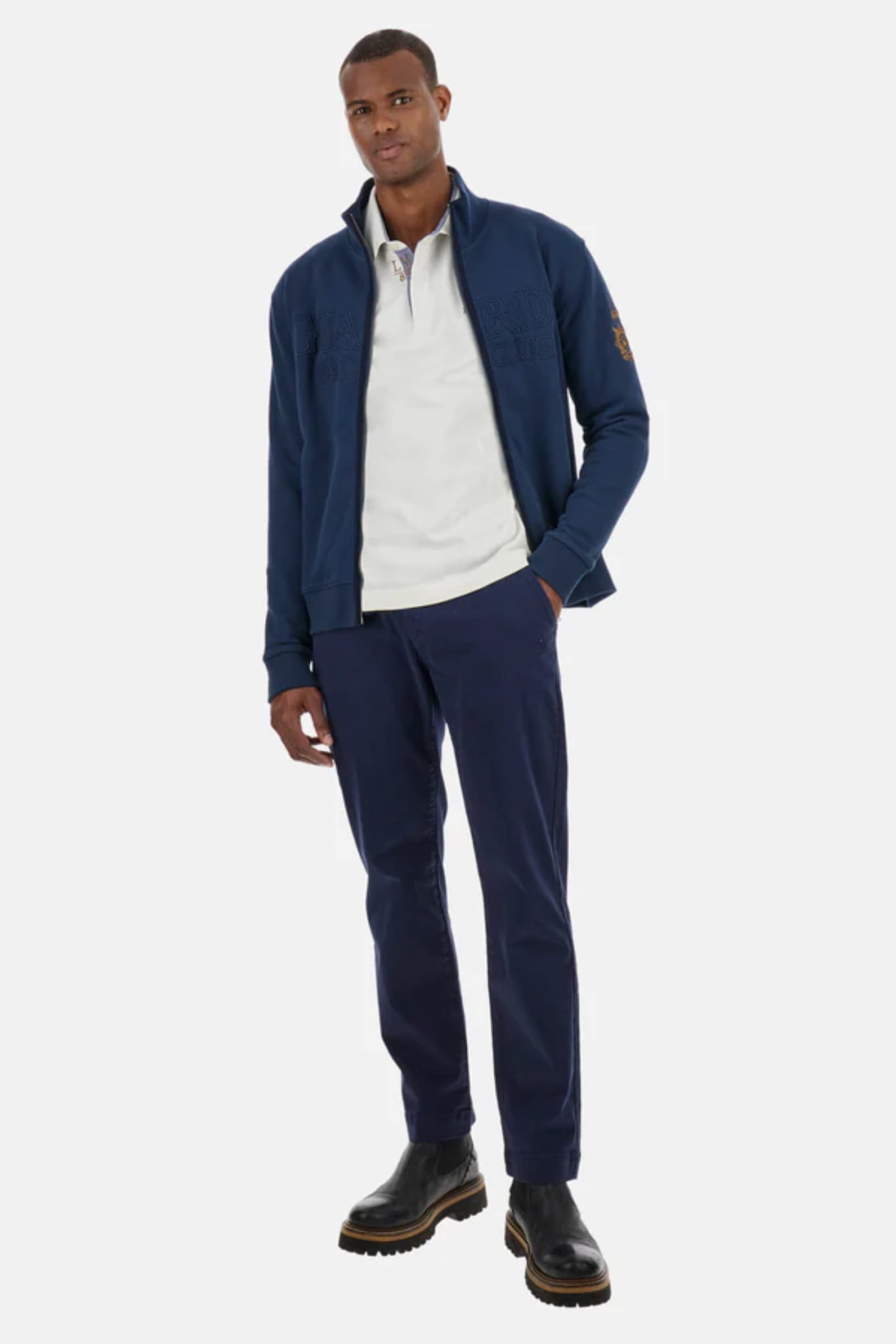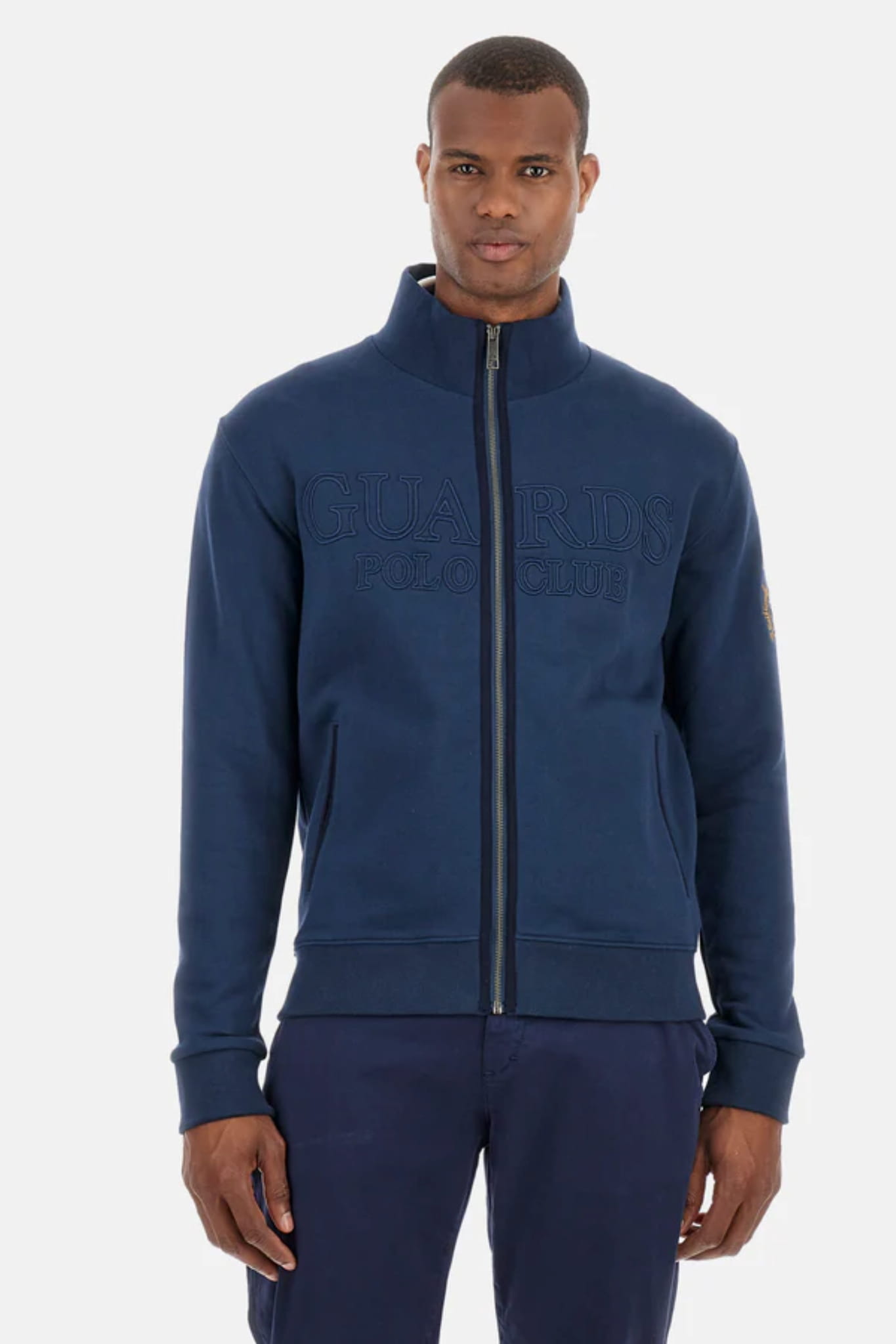 Męska rozpinana bluza ze stójką i kieszeniami marki La Martina, w kolorze granatowym.