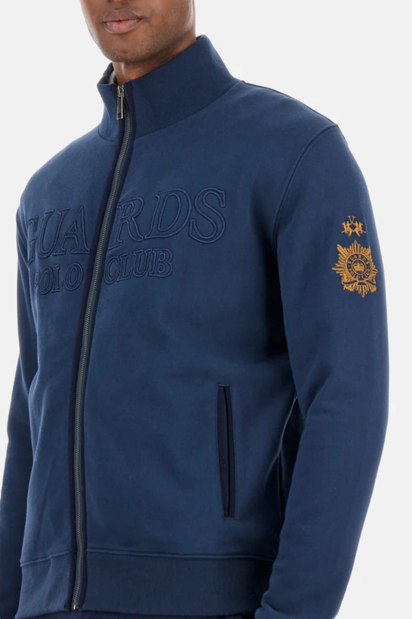 ⇒ Na jednym z rękawów znajduje się małe starannie wyhaftowane logo marki oraz emblemat sygnujący linię Guards England.