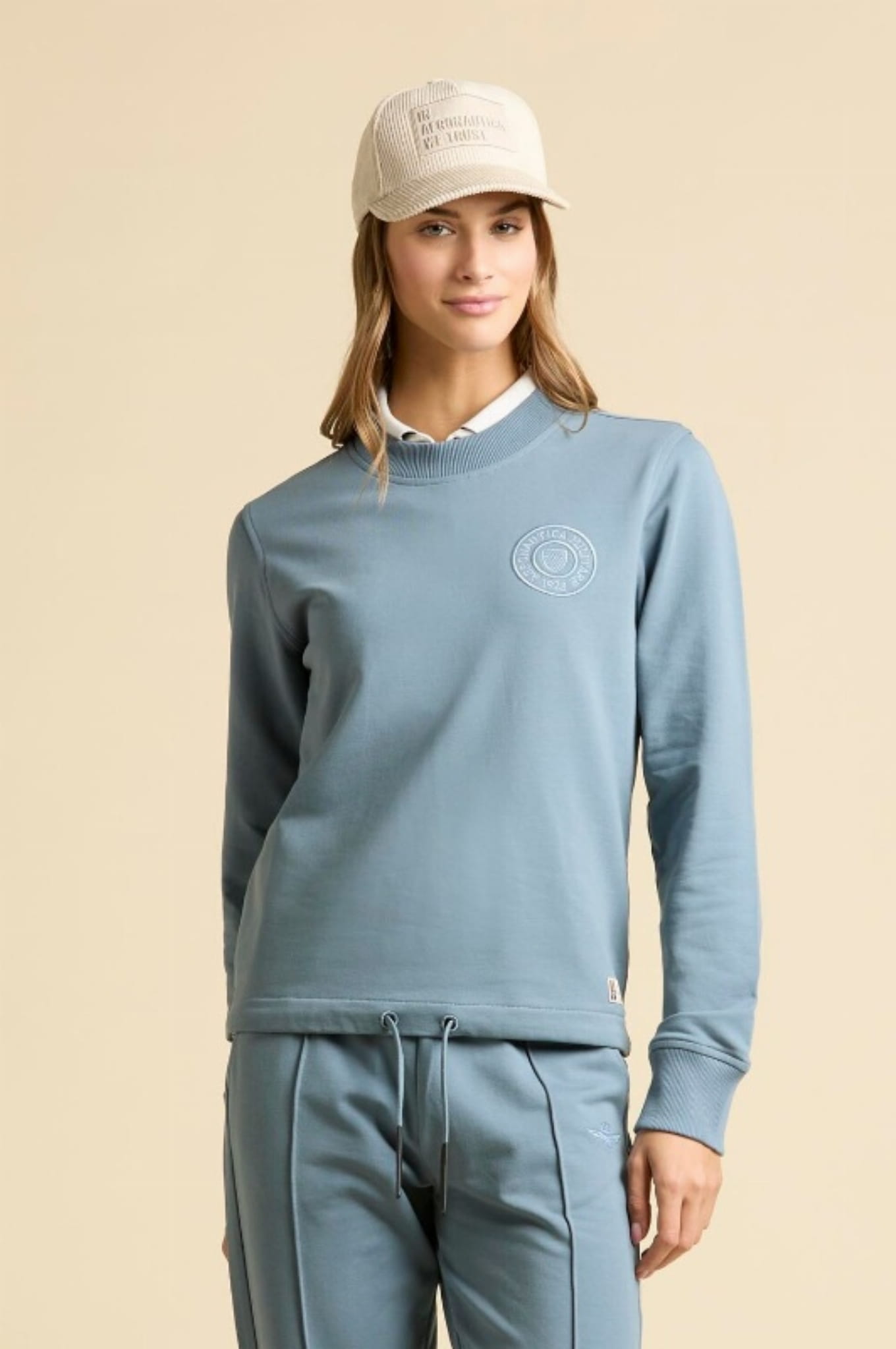 Damska bluza wkładana przez głowę marki Aeronautica Militare, w kolorze niebieskim.