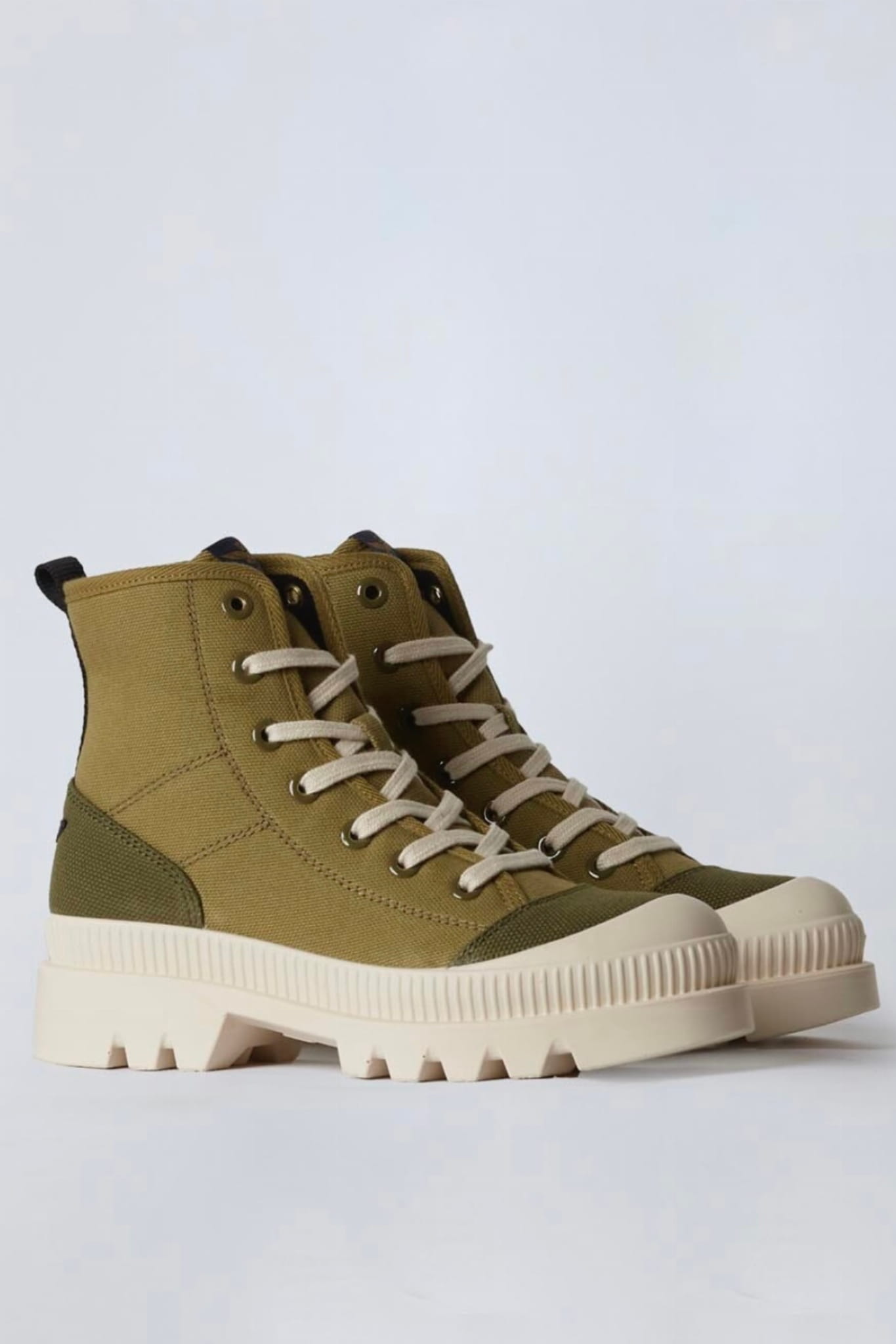 ⇒ Idealne dla nowoczesnej, pewnej siebie kobiety, te botki o średniej wysokości łączą wytrzymałe bawełniane płótno z kontrastującymi detalami, tworząc idealne połączenie stylu i trwałości.