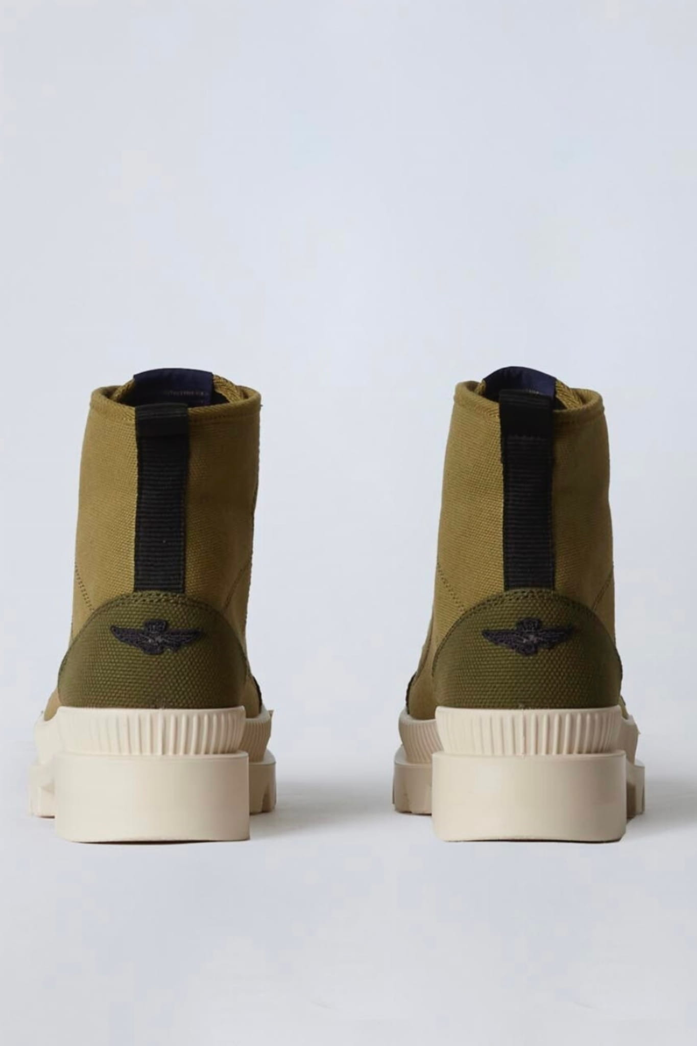 ⇒ Na każdym bucie z tyłu znajduje się starannie wyhaftowane małe logo marki Aeronautica Militare, w formie kultowego orzełka z wieżyczką.