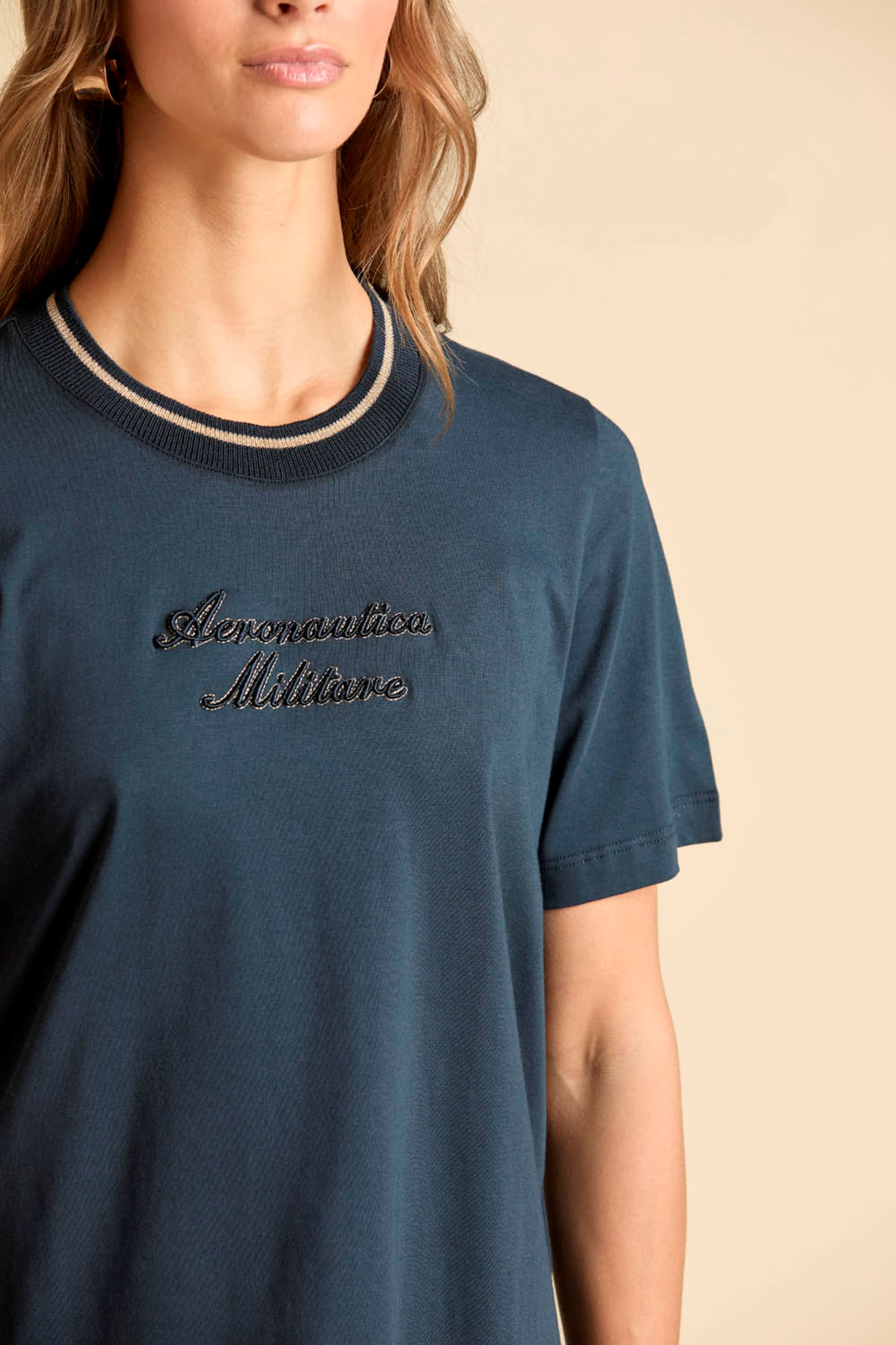 Damski t-shirt marki Aeronautica Militare, w kolorze granatowym.