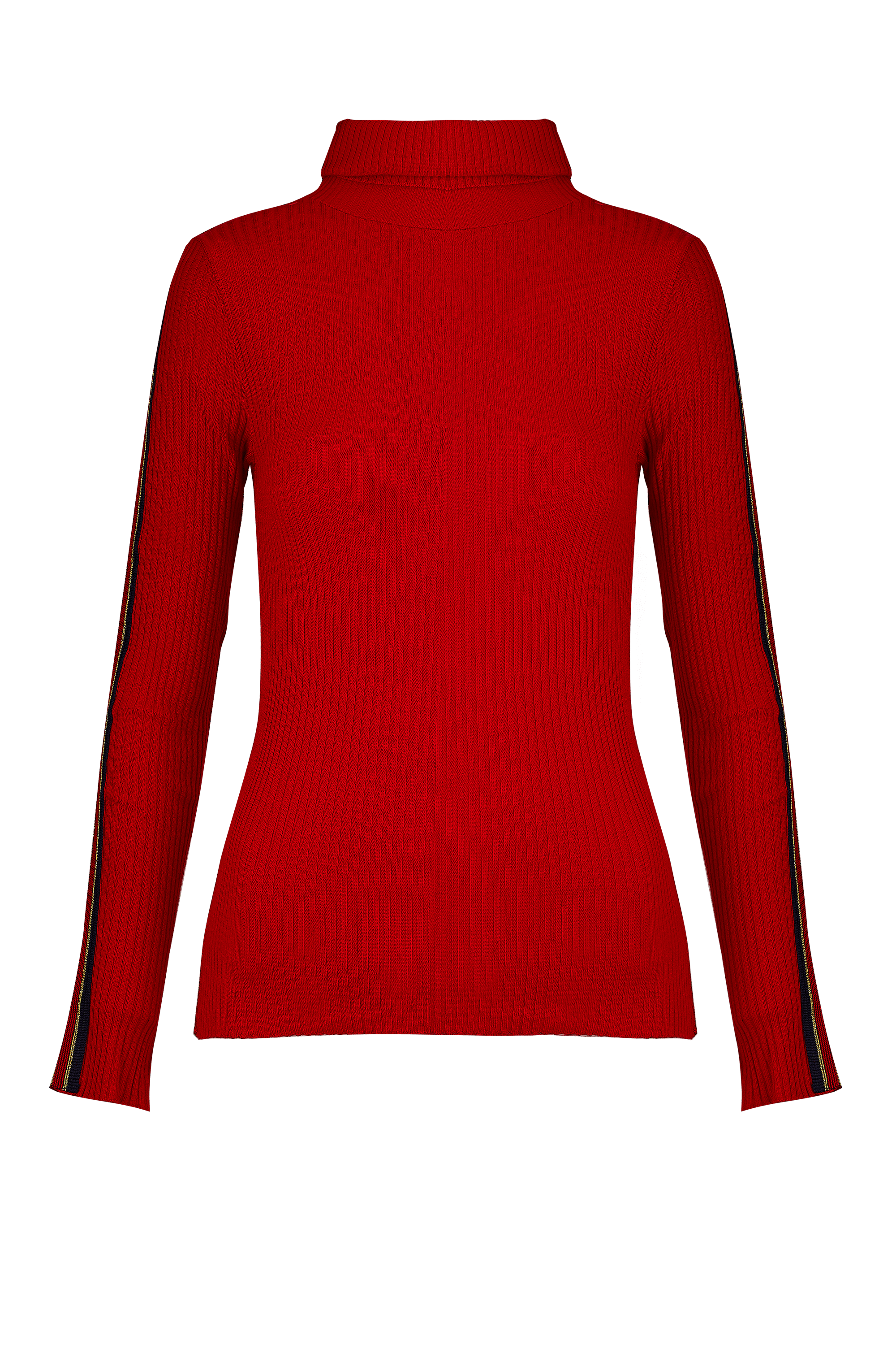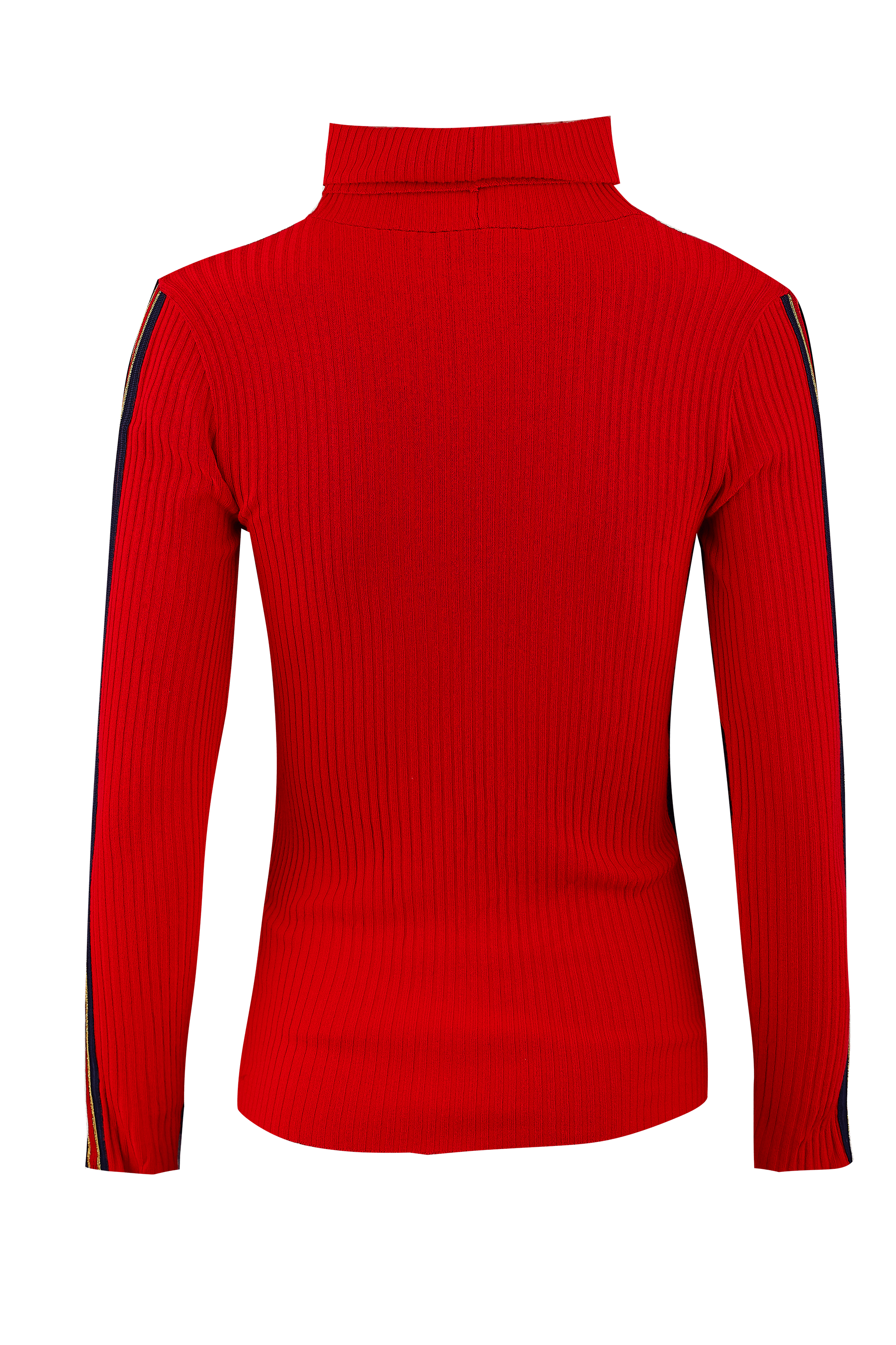 Damski wiskozowy sweter golf z lampasami marki Campione, w kolorze czerwonym.