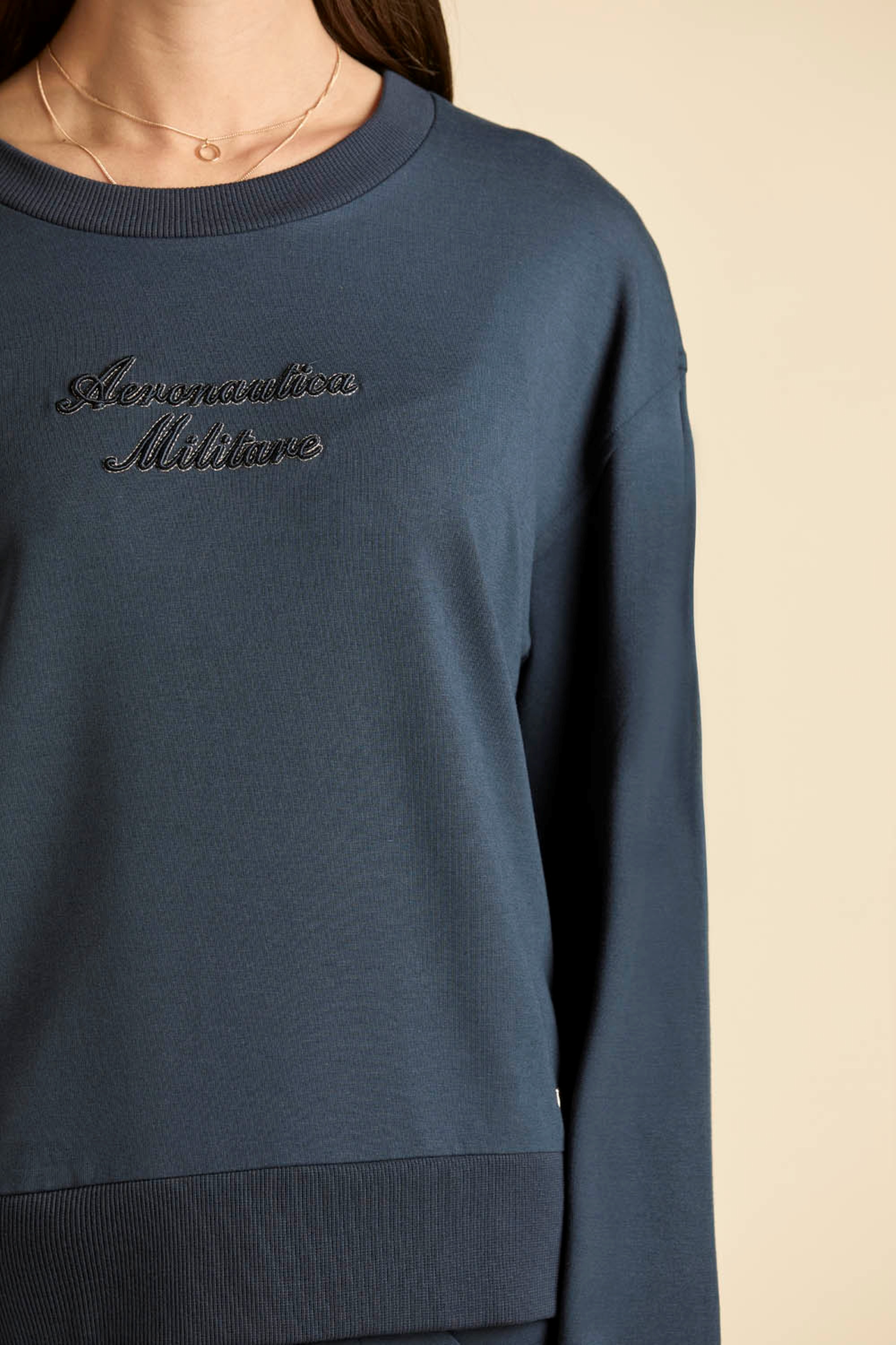 Damska bluza wkładana przez głowę marki Aeronautica Militare, w kolorze granatowym.