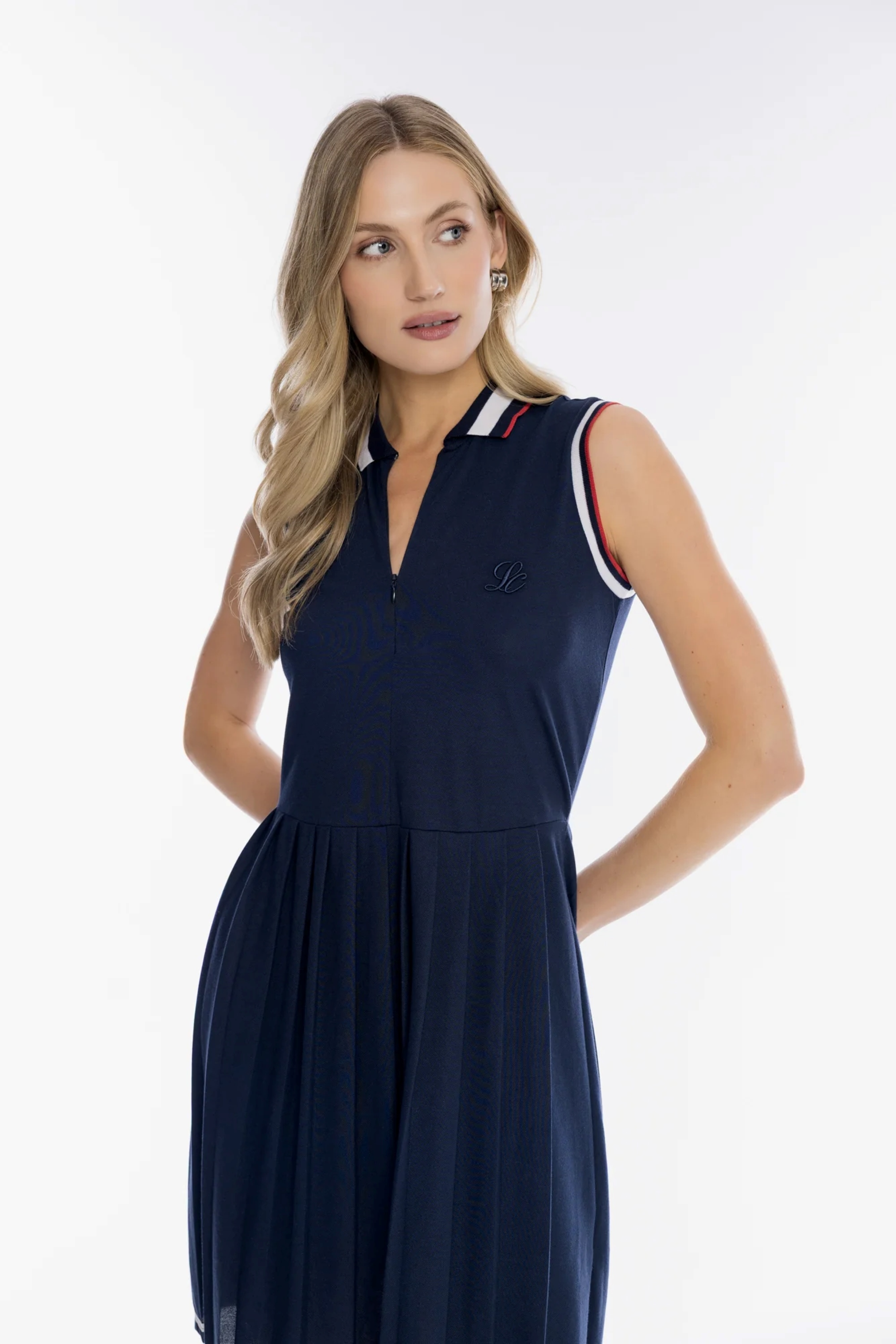 Damska krótka sukienka polo na ramiączka marki Campione, w kolorze granatowym.