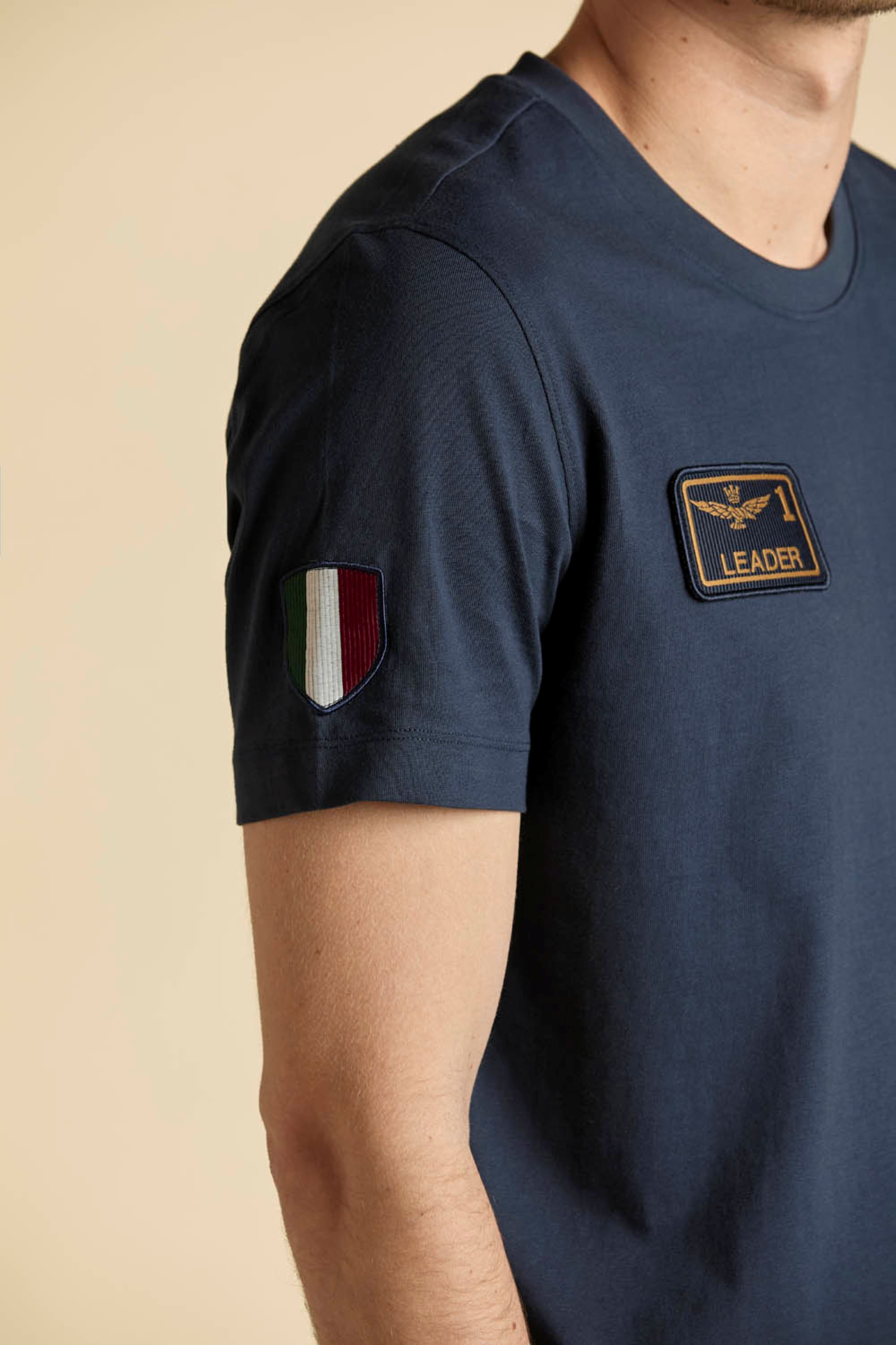 Męska koszulka t-shirt z krótkim rękawem marki Aeronautica Militare, w kolorze granatowym.