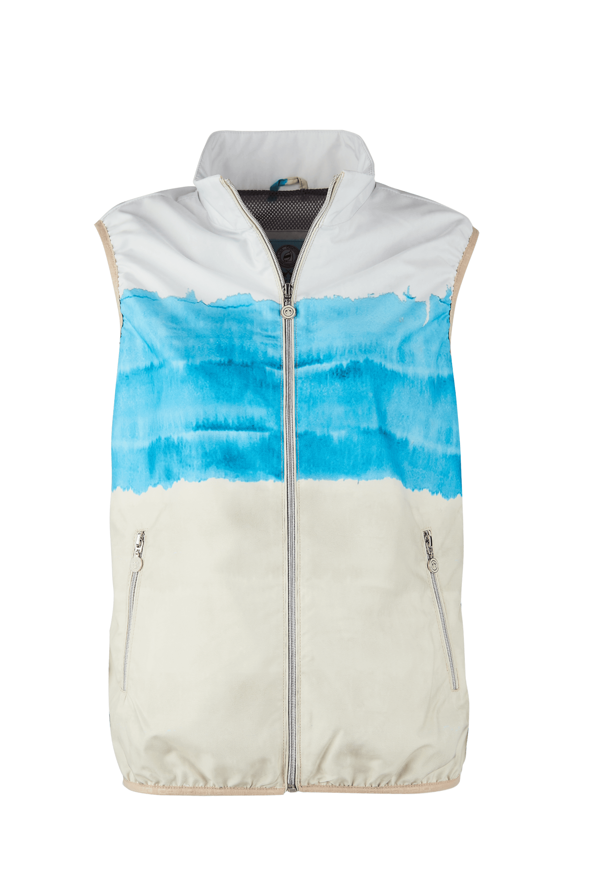 Damski bezrękawnik marki Campione, w kolorze białym, beżowym i niebieskim.