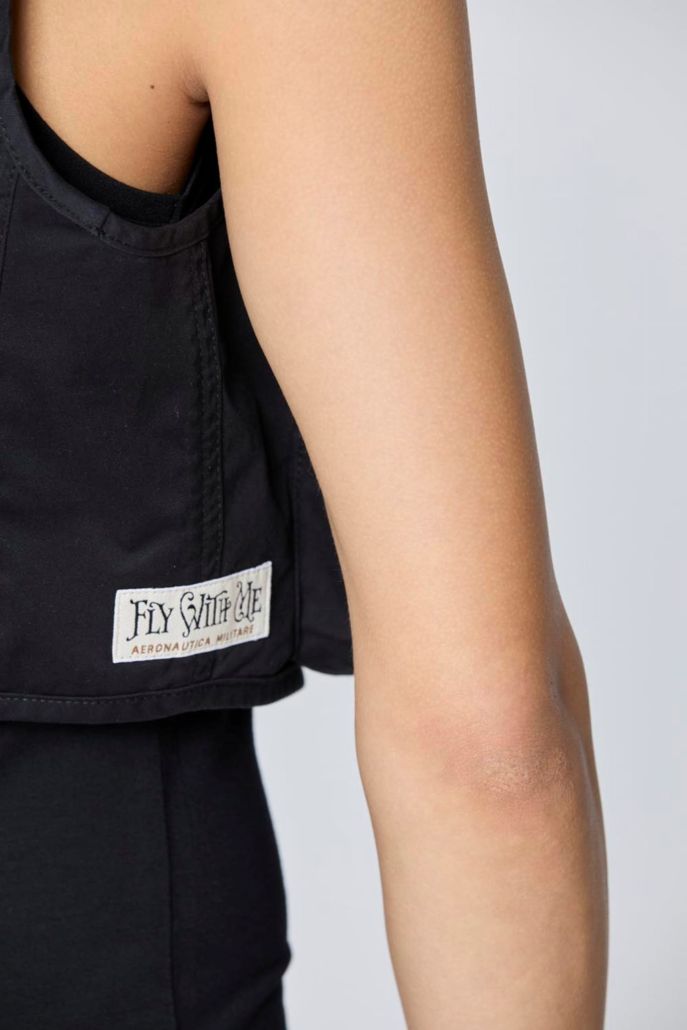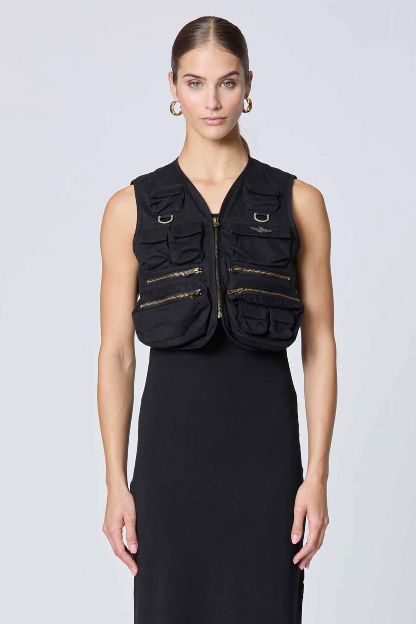 Damska krótka kamizelka bezrękawnik marki Aeronautica Militare, w kolorze czarnym.