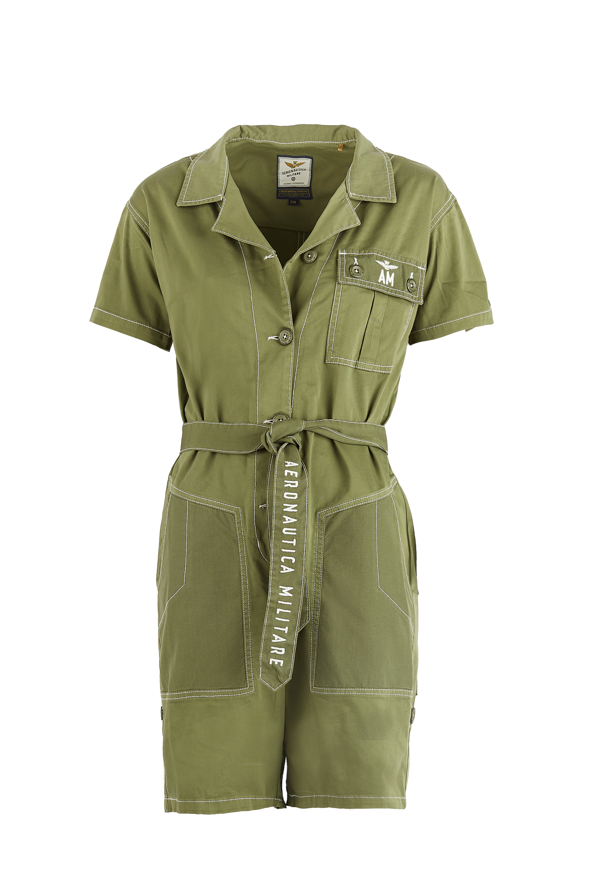 Damski krótki kombinezon marki Aeronautica Militare, w kolorze zielonym.