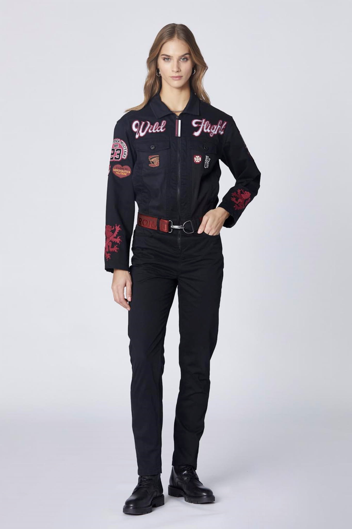 ⇒ Ubiór w stylu militarnym, pochodzący z linii LOVERS, który w pełni identyfikuje kobietę Aeronautica Militare.