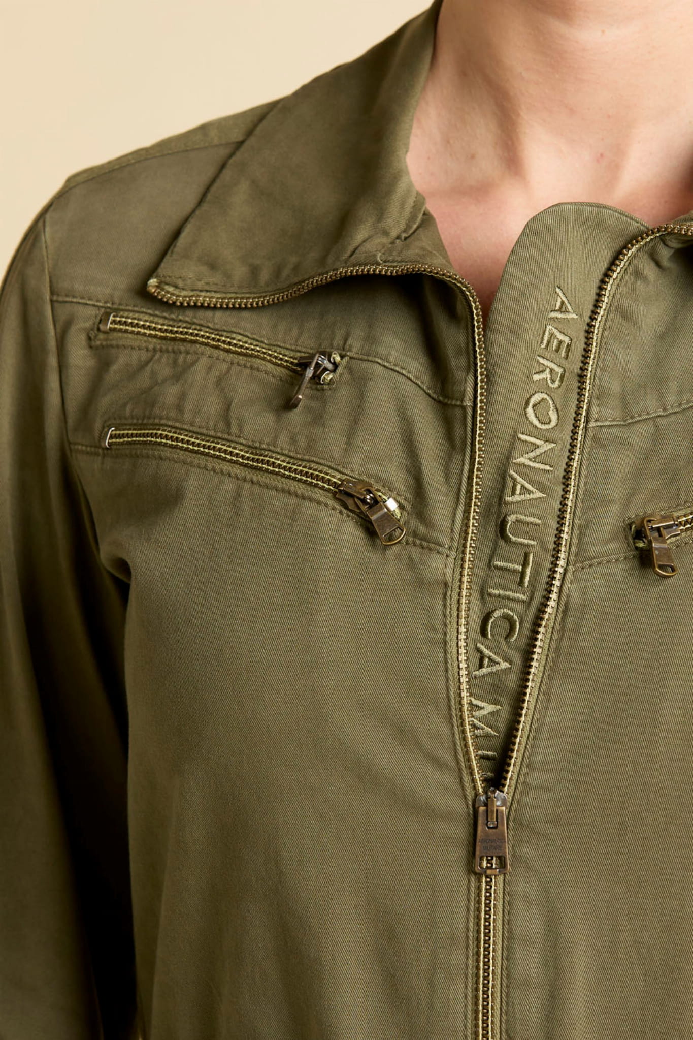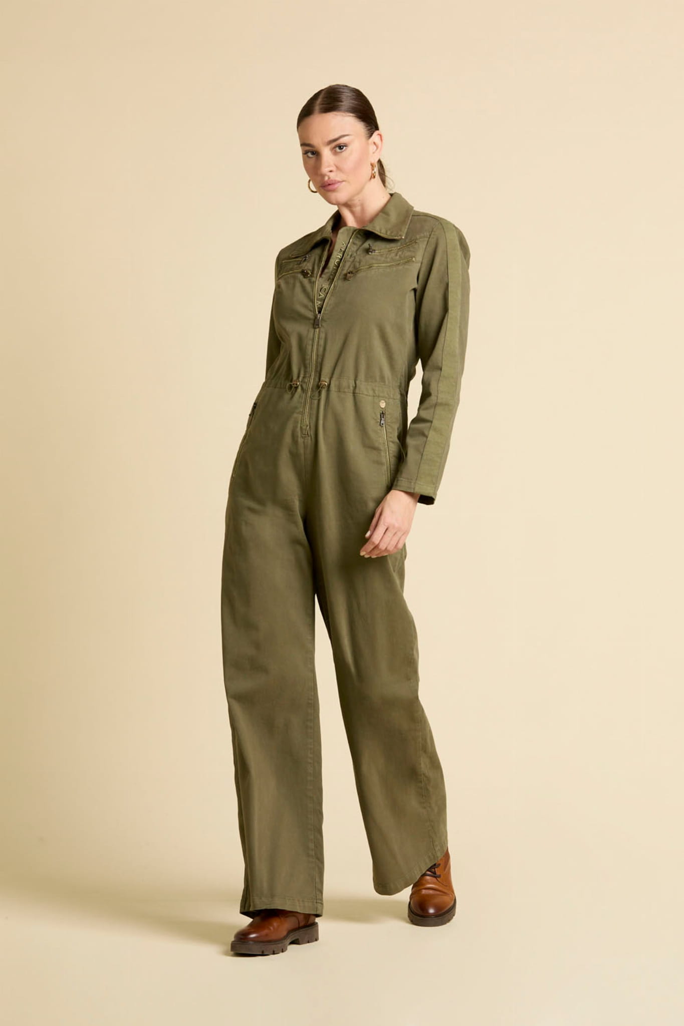 Damski kombinezon marki Aeronautica Militare, w kolorze oliwkowym.