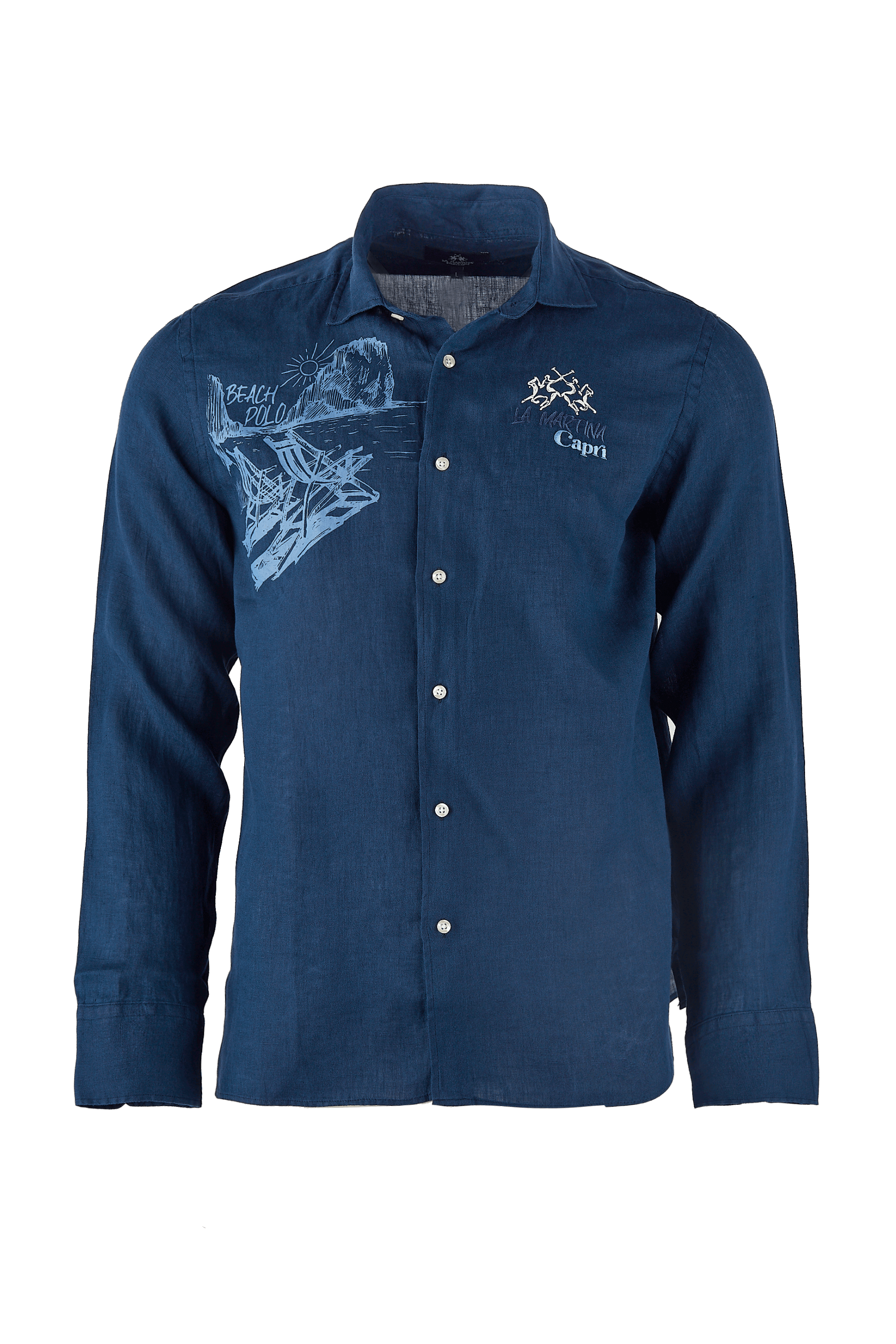 Męska koszula na długi rękaw z kołnierzykiem marki La Martina, w kolorze granatowym.