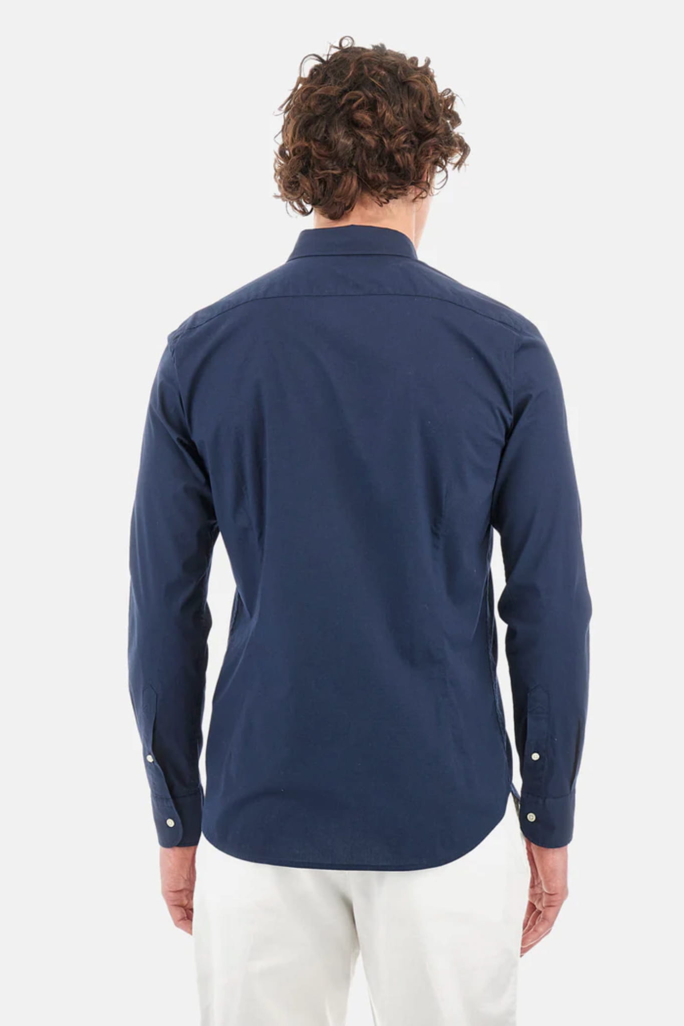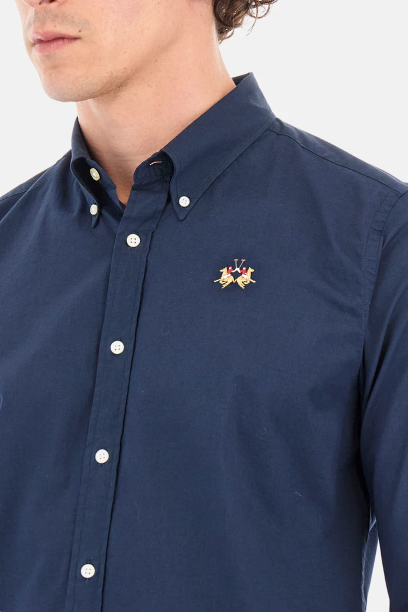 Męska koszula z długim rękawem i kołnierzykiem marki La Martina, w kolorze granatowym.