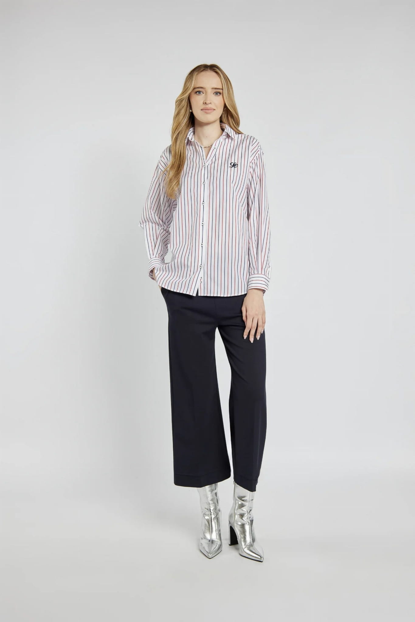 ⇒ Koszula jest zapinana na guziki, podobnie mankiety.