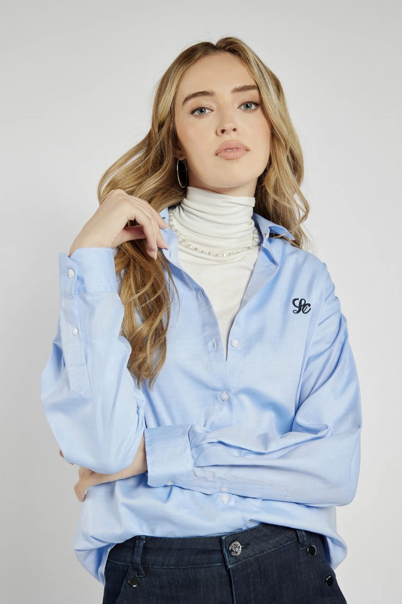 Damska koszula na długi rękaw z kołnierzykiem marki Campione, w kolorze niebieskim.