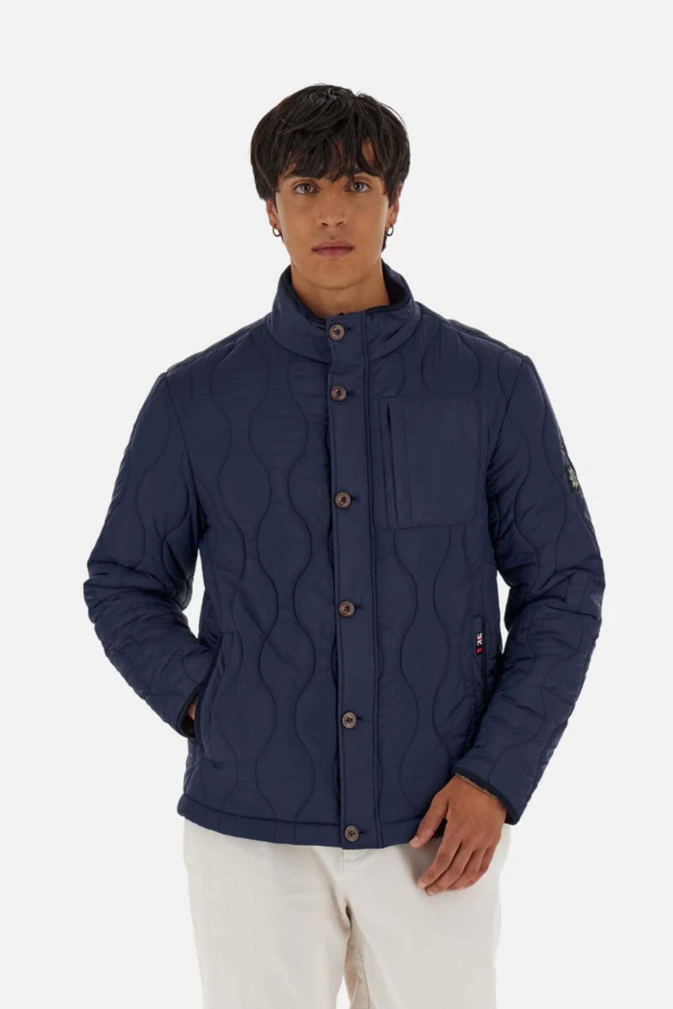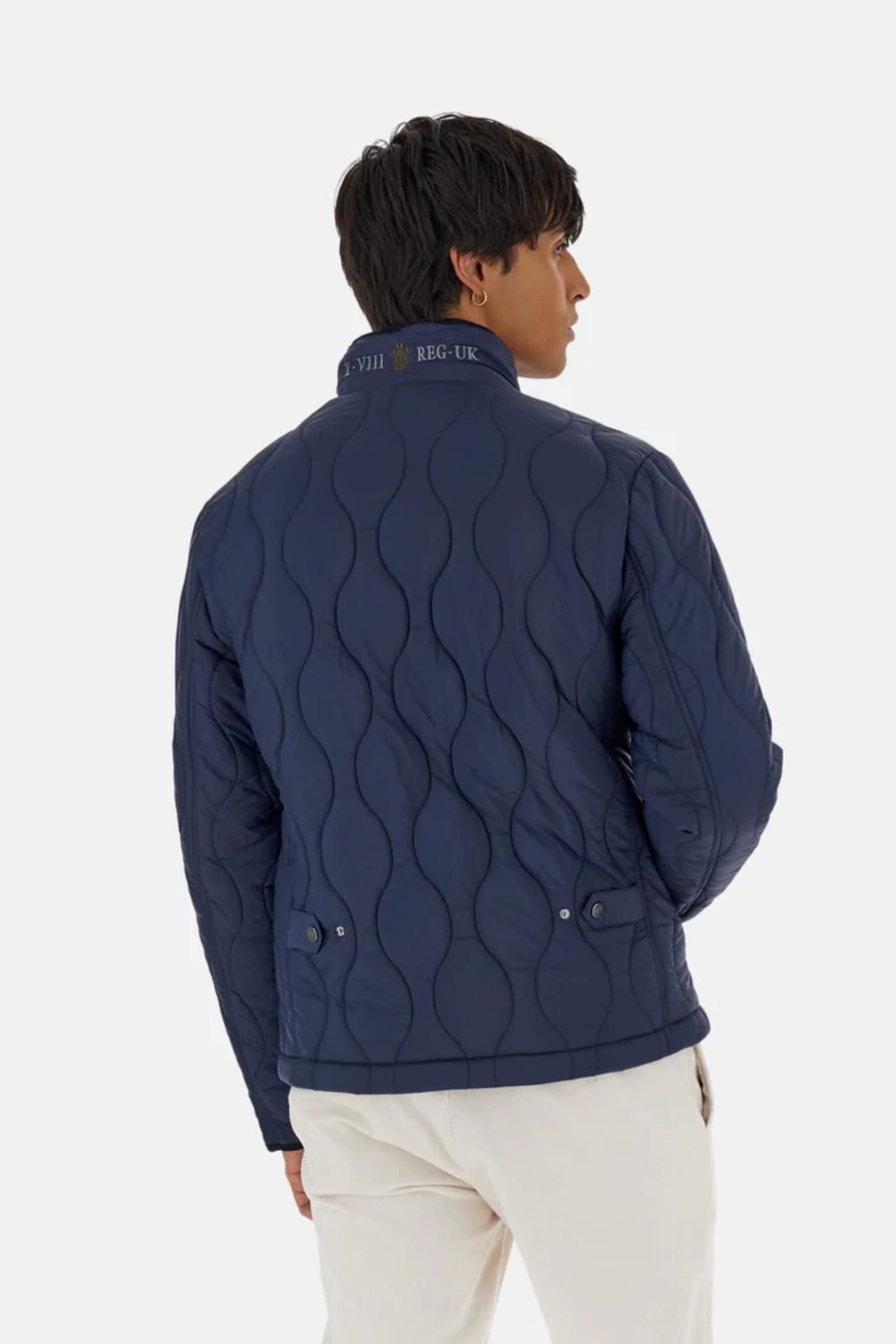 Męska pikowana kurtka przejściowa ze stójką marki La Martina, w kolorze granatowym.
