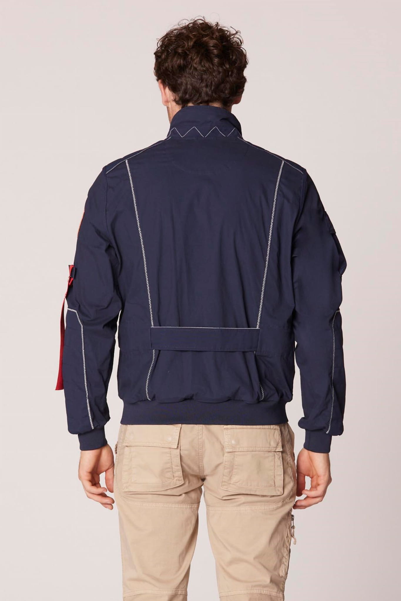 ⇒ Kontrastowe przeszycia na rękawach, ramionach i z tyłu kurtki.
