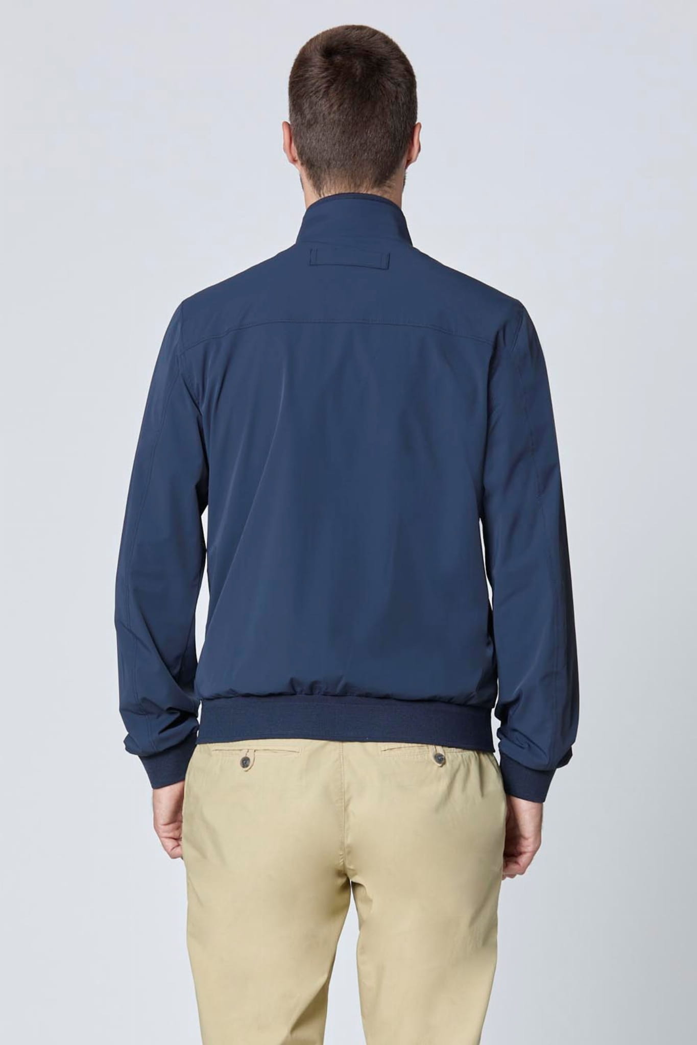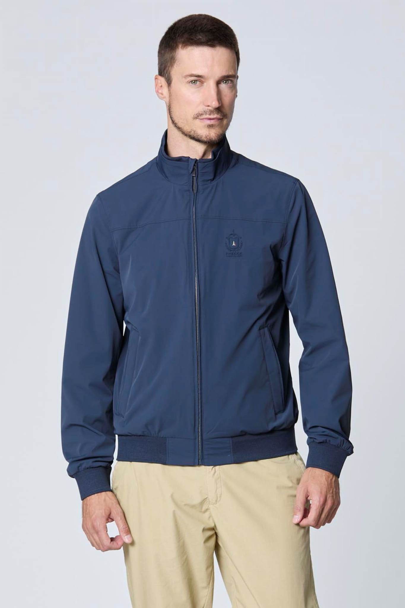 Męska rozpinana kurtka wiatrówka ze stójką marki Aeronautica Militare, w kolorze granatowym.