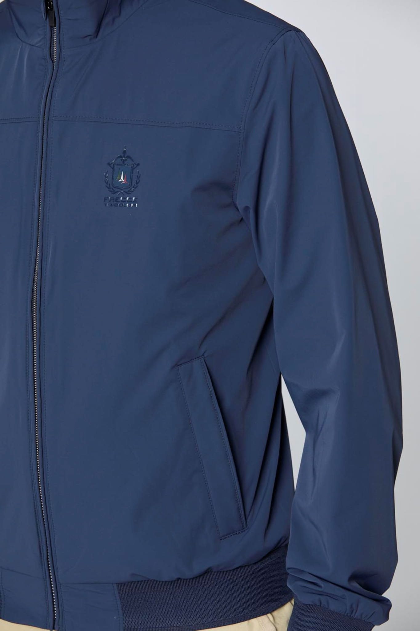 ⇒ Na wysokości klatki piersiowej po lewej stronie znajduje się termotransferowy nadruk poświęcony Frecce Tricolore, z wyrafinowanym efektem połysku.