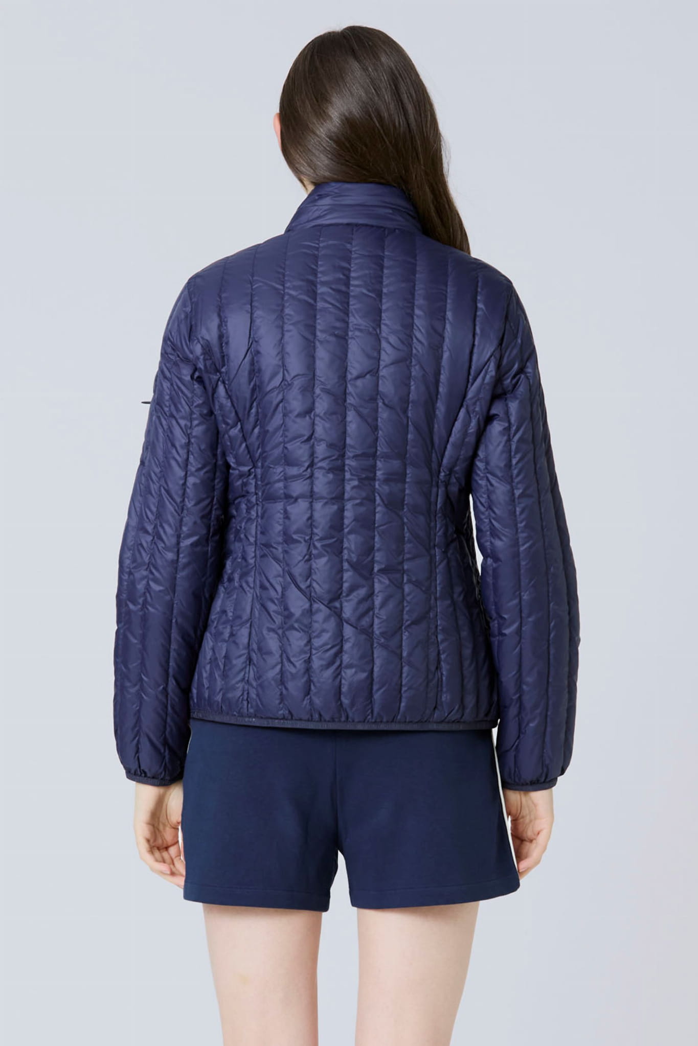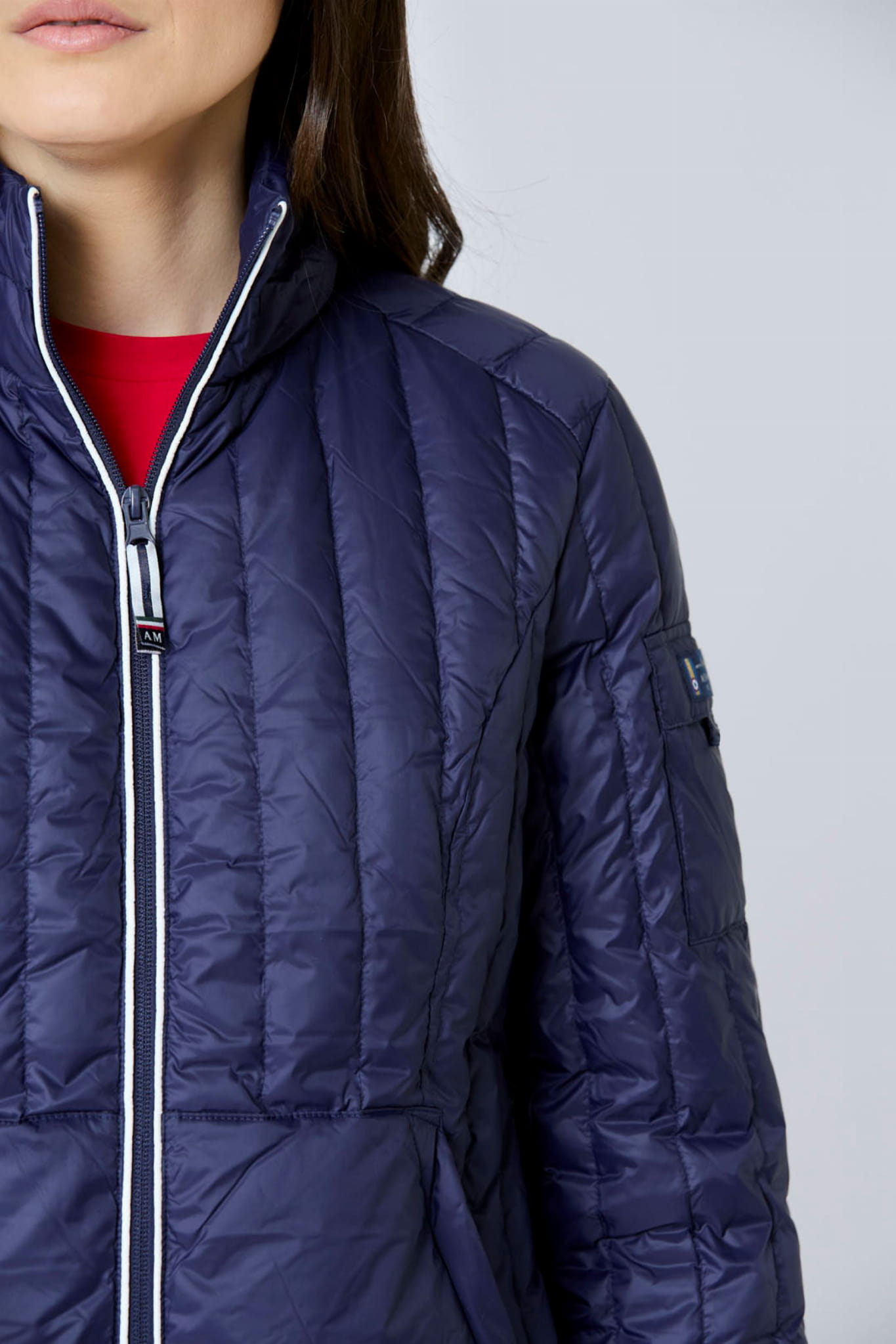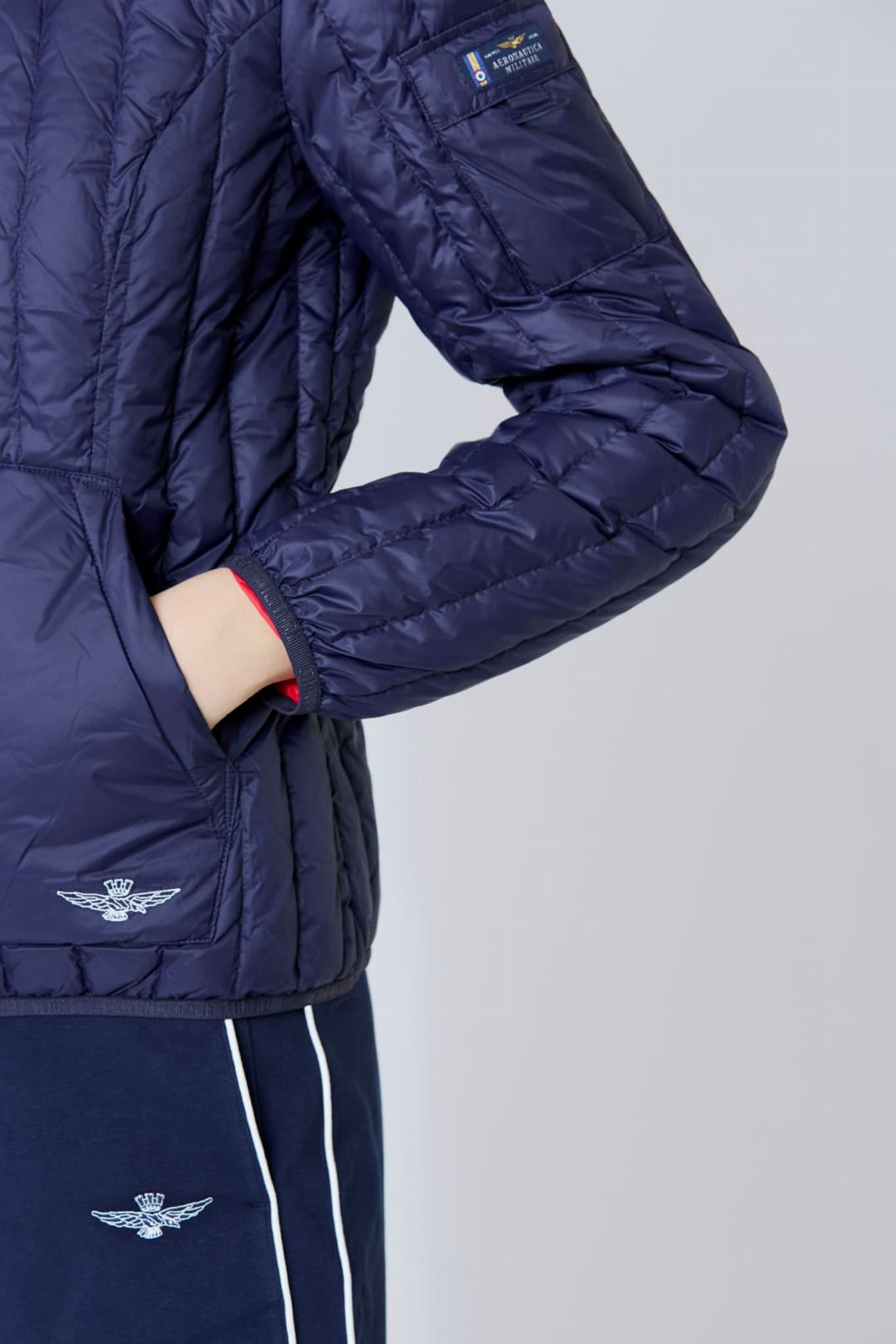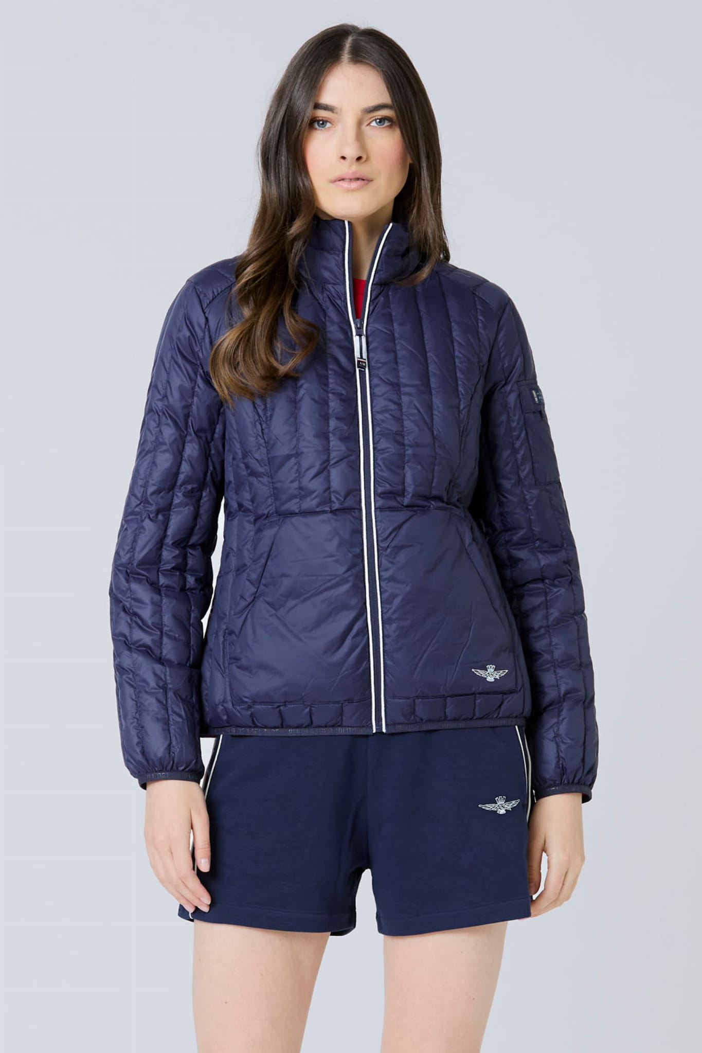 Damska pikowana puchowa kurtka marki Aeronautica Militare, w kolorze granatowym.