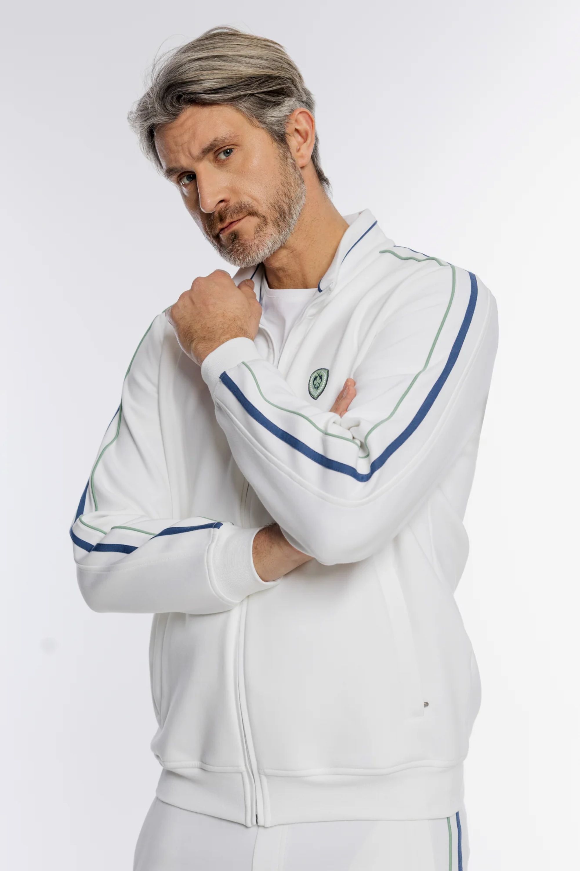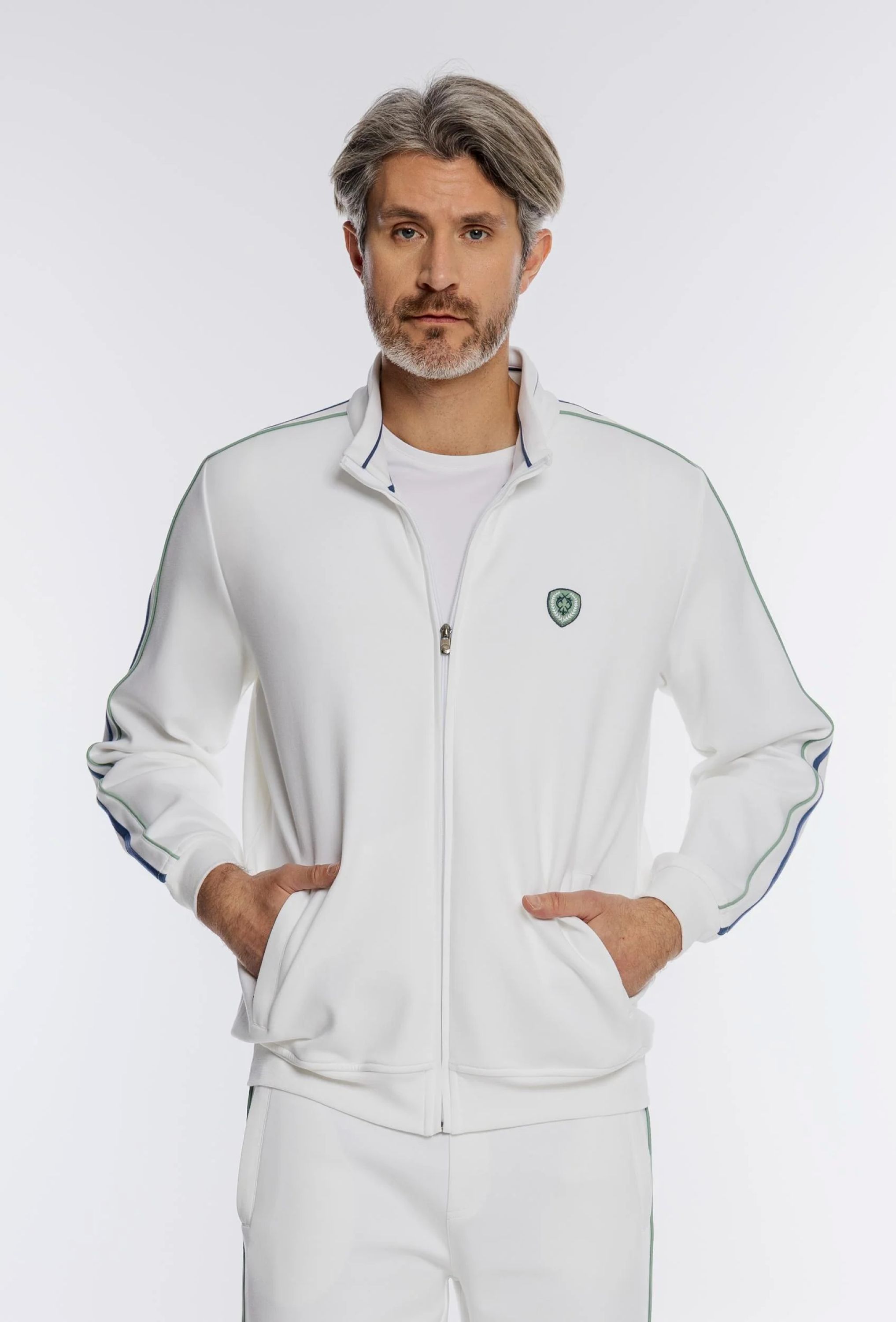 Męska rozpinana bluza ze stójką marki Campione, w kolorze białym.