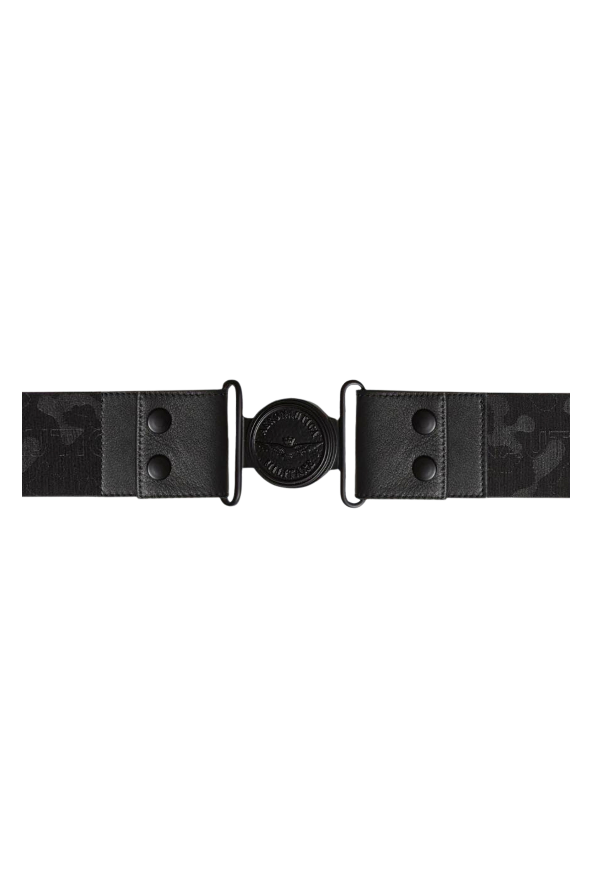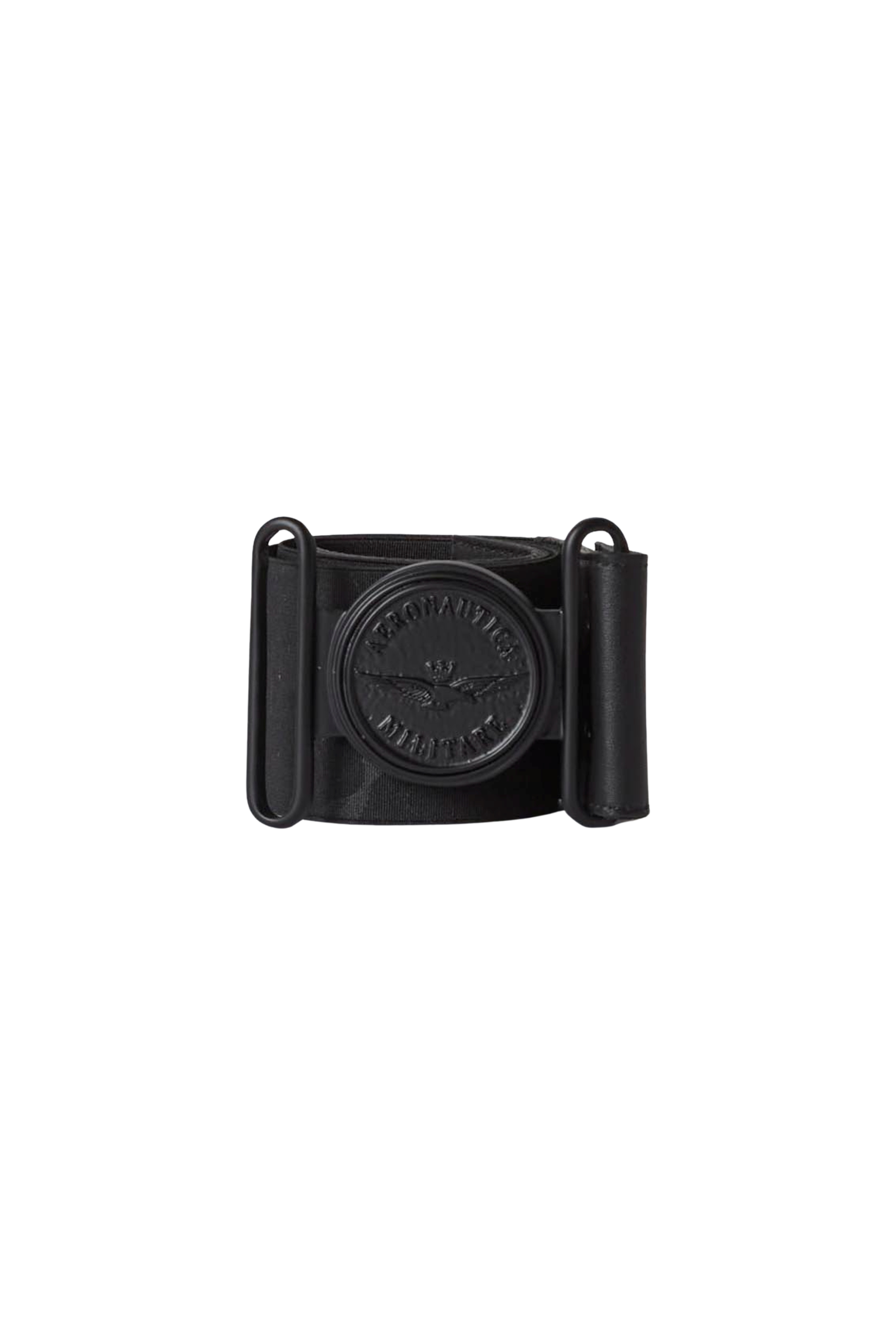 Damski elastyczny pasek marki Aeronautica Militare, w kolorze czarnym.