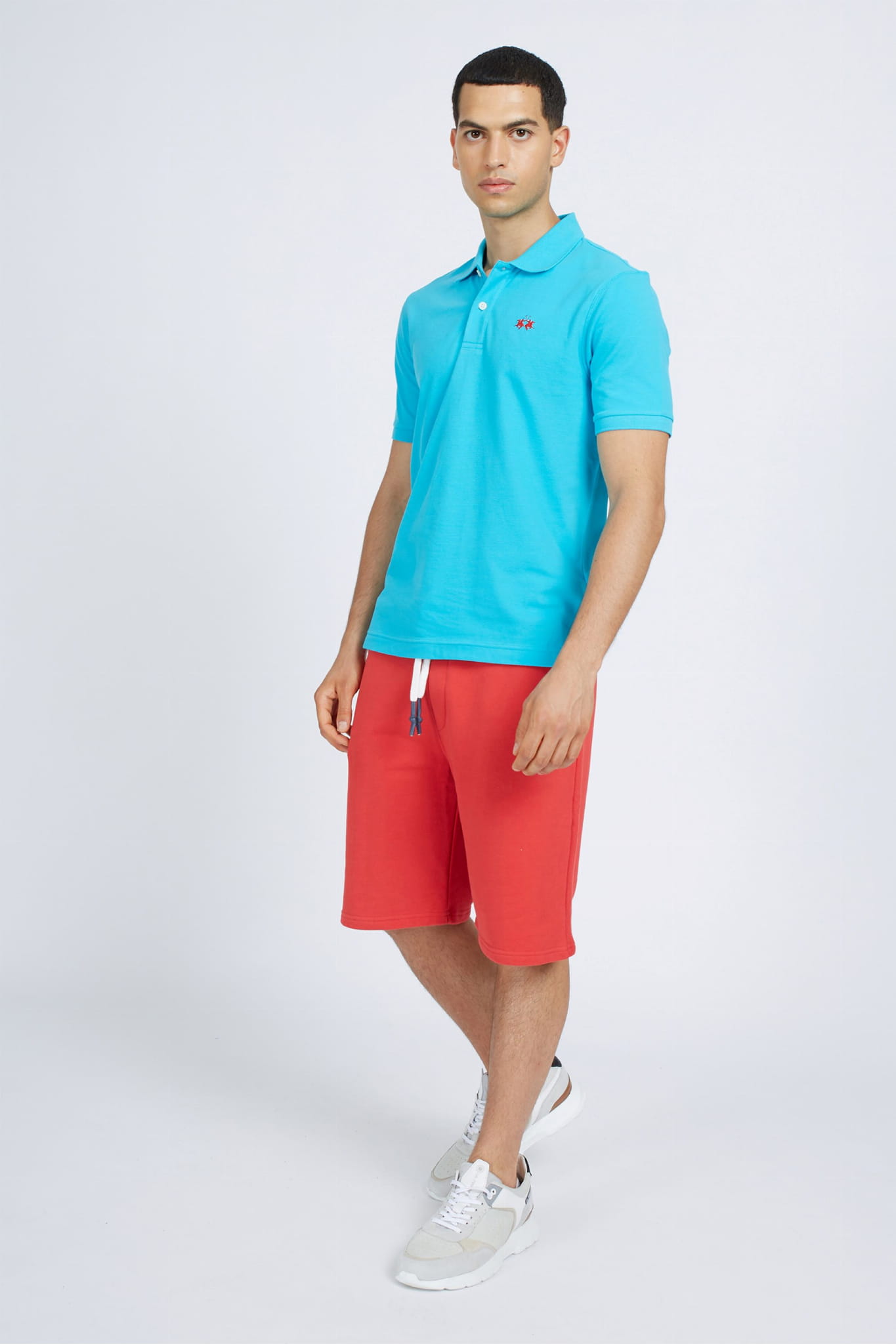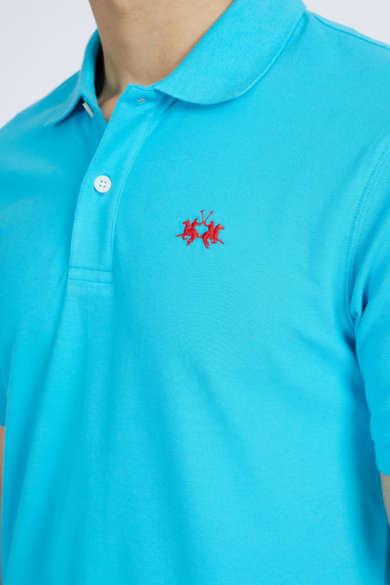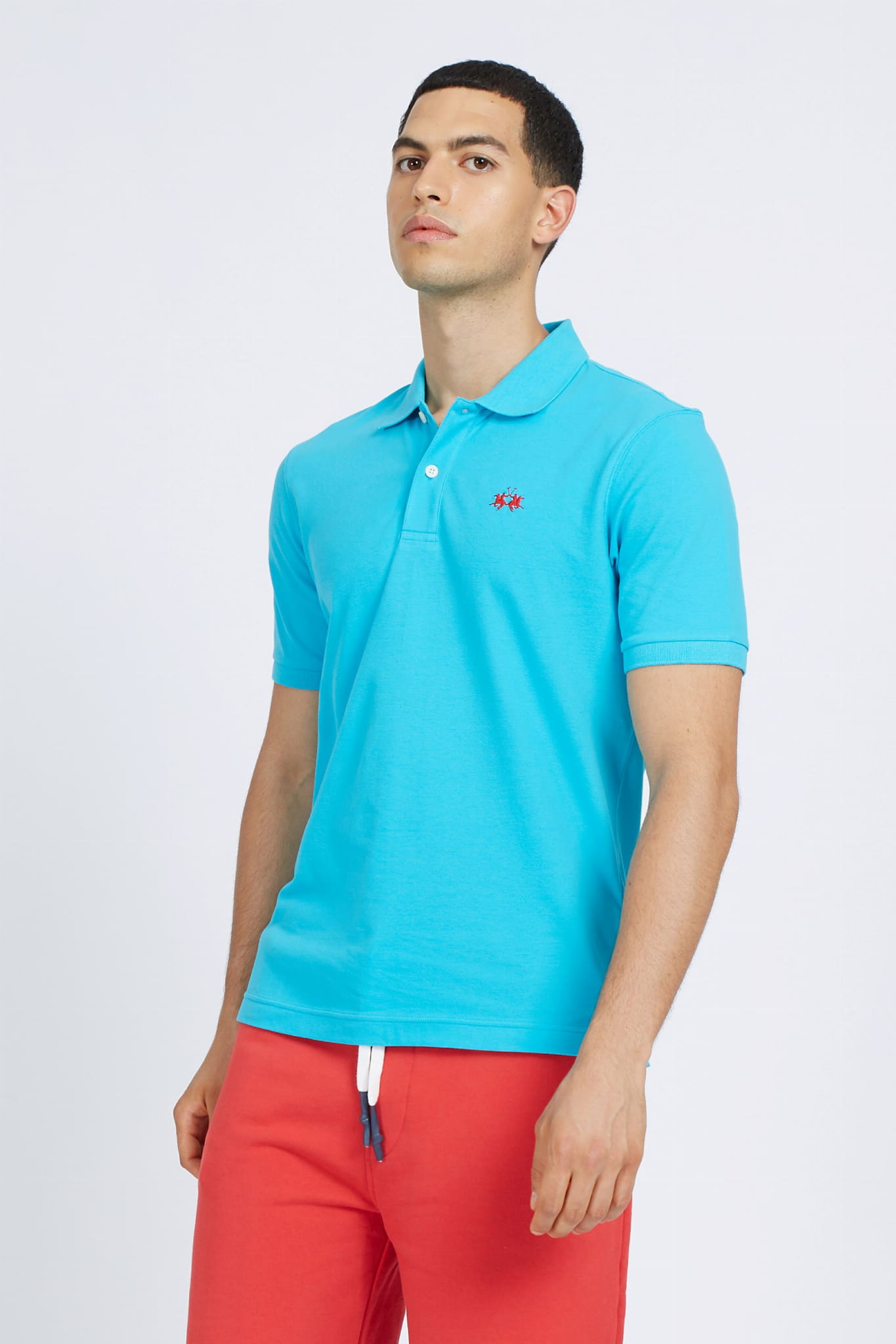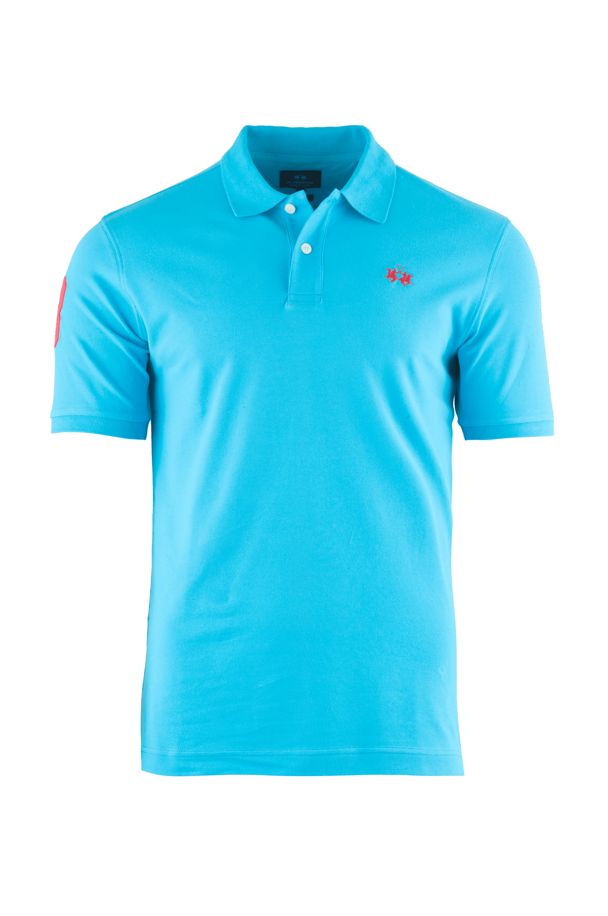 Męska koszulka polo z krótkim rękawem marki La Martina, w kolorze niebieskim.