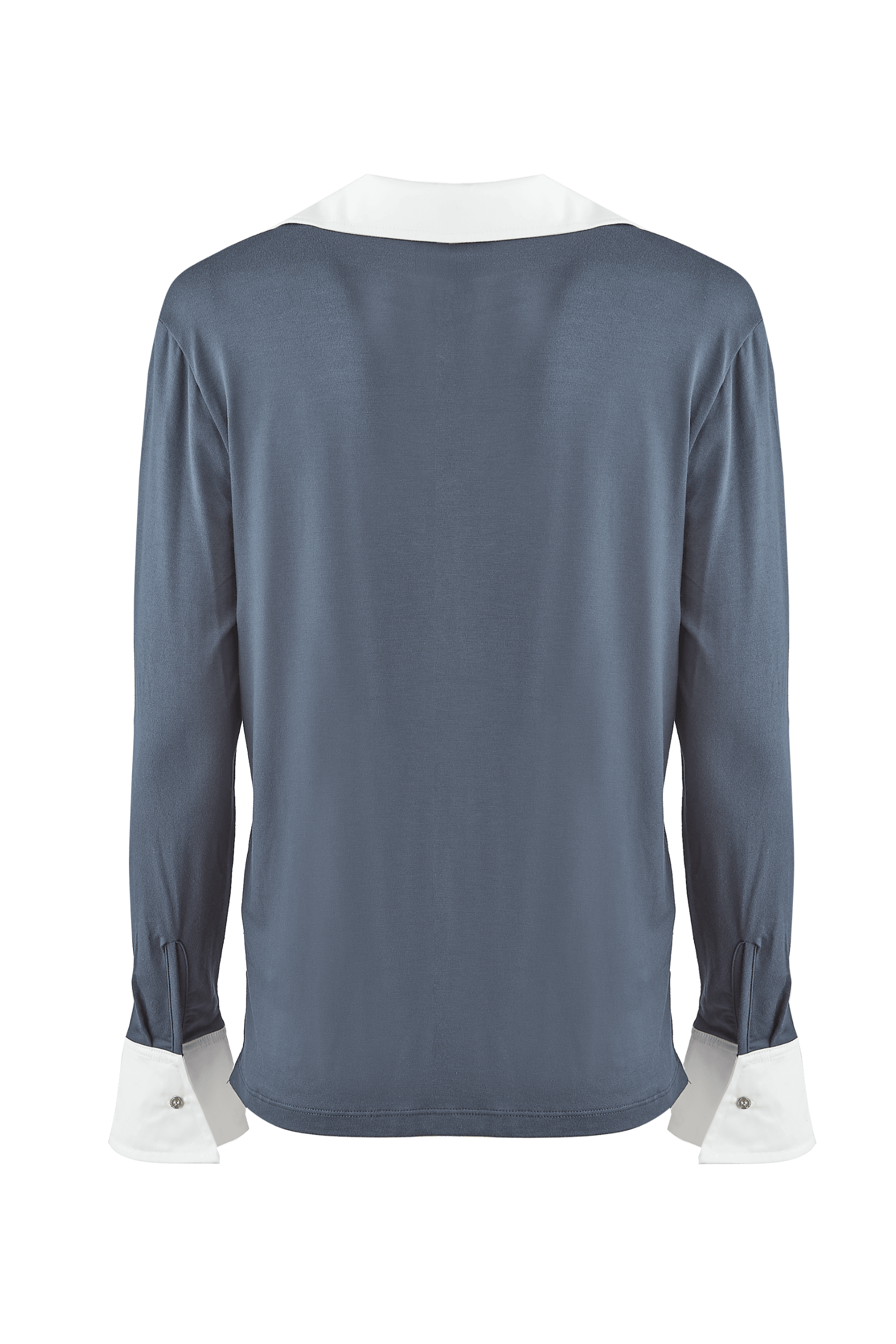 ⇒ Kontrastowe białe mankiety zapinane na guziki, które można wywinąć oraz klasyczny kołnierzyk.