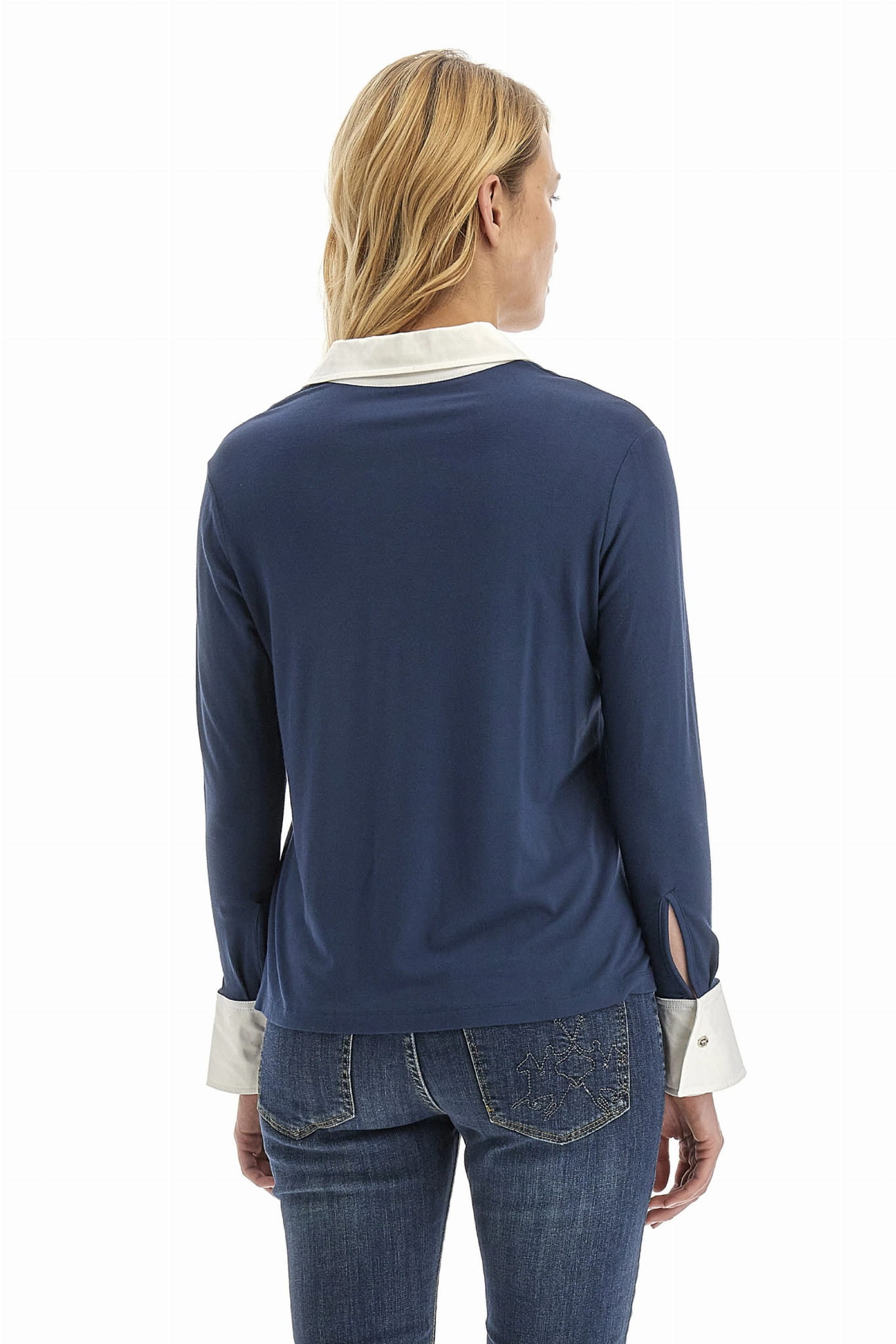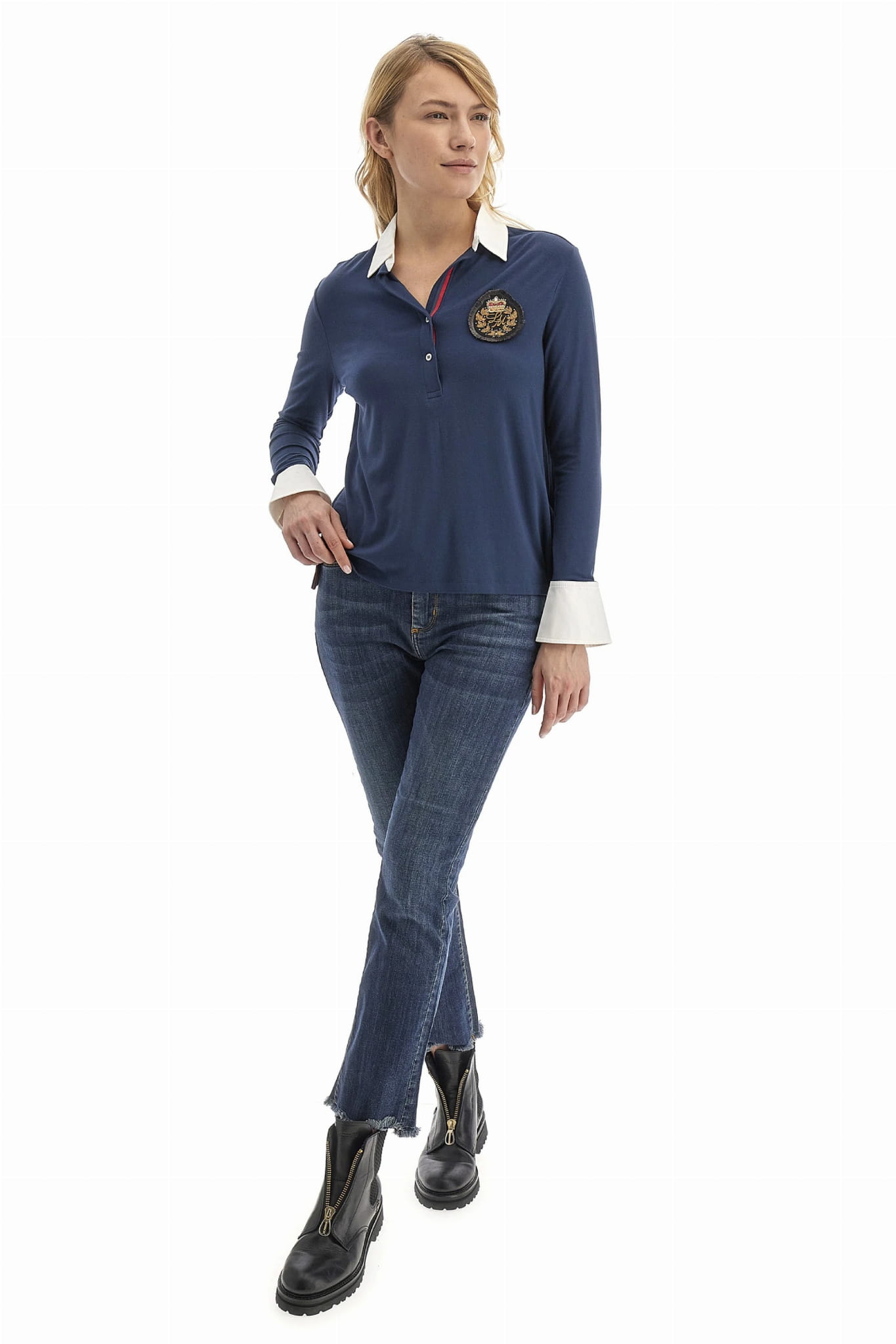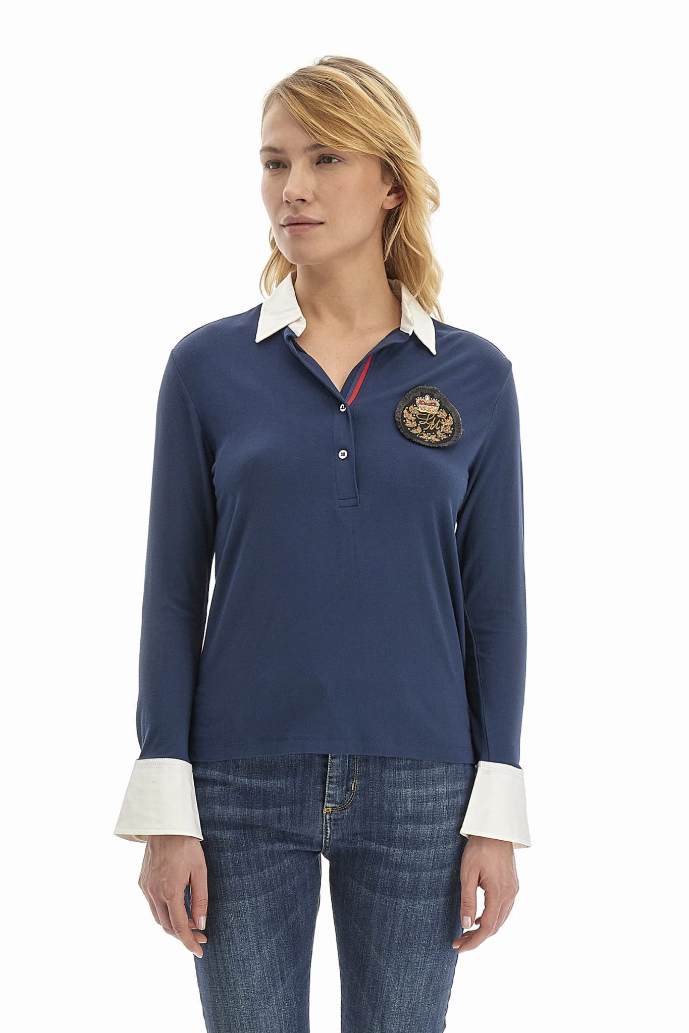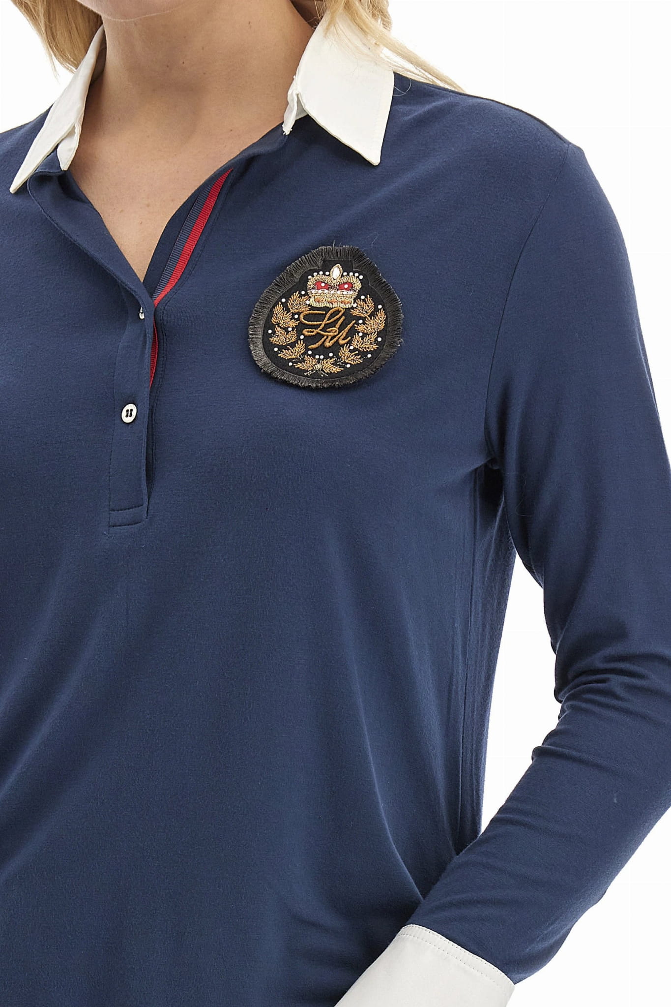 Damska koszulka polo z długim rękawem i kołnierzykiem marki La Martina, w kolorze granatowym.