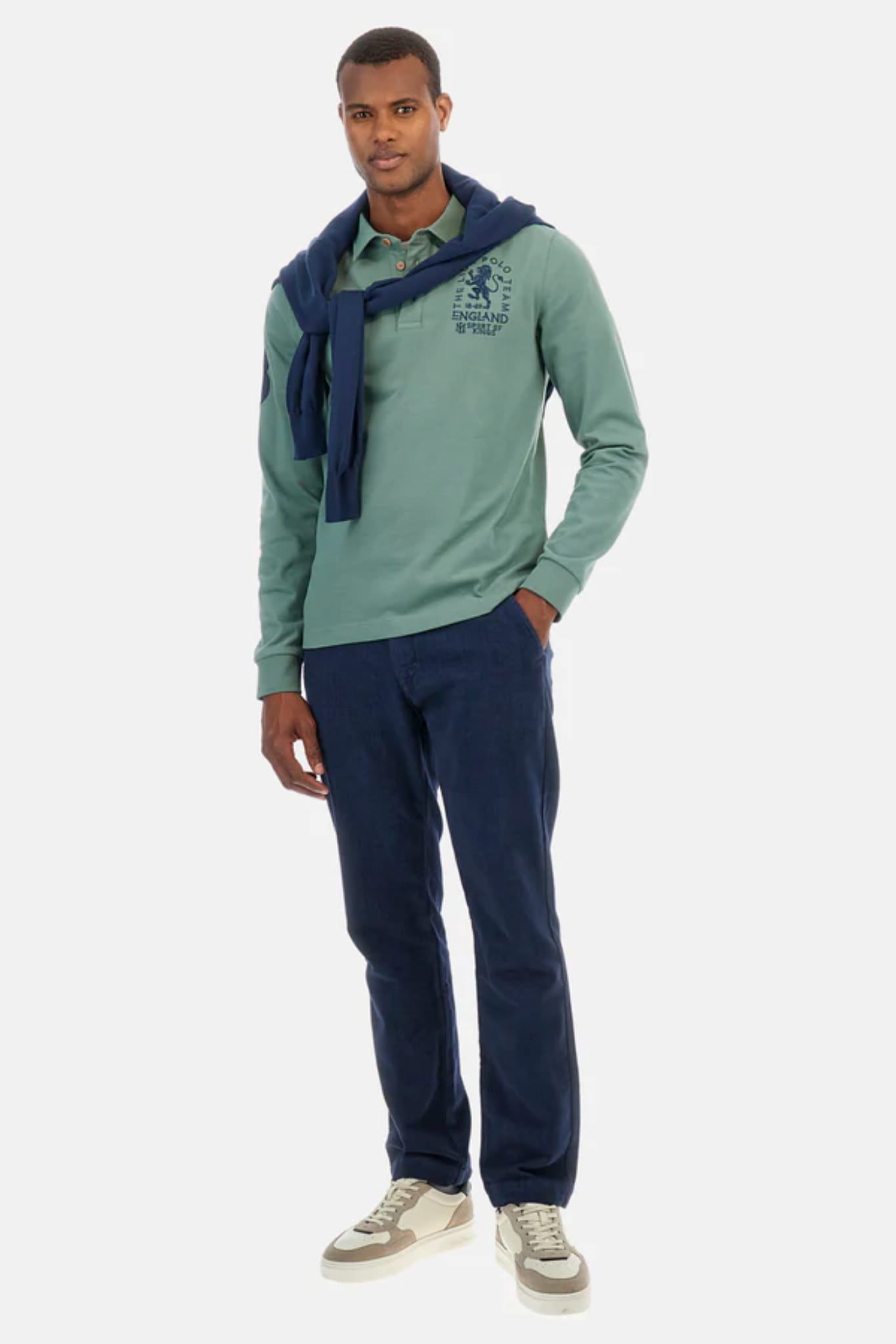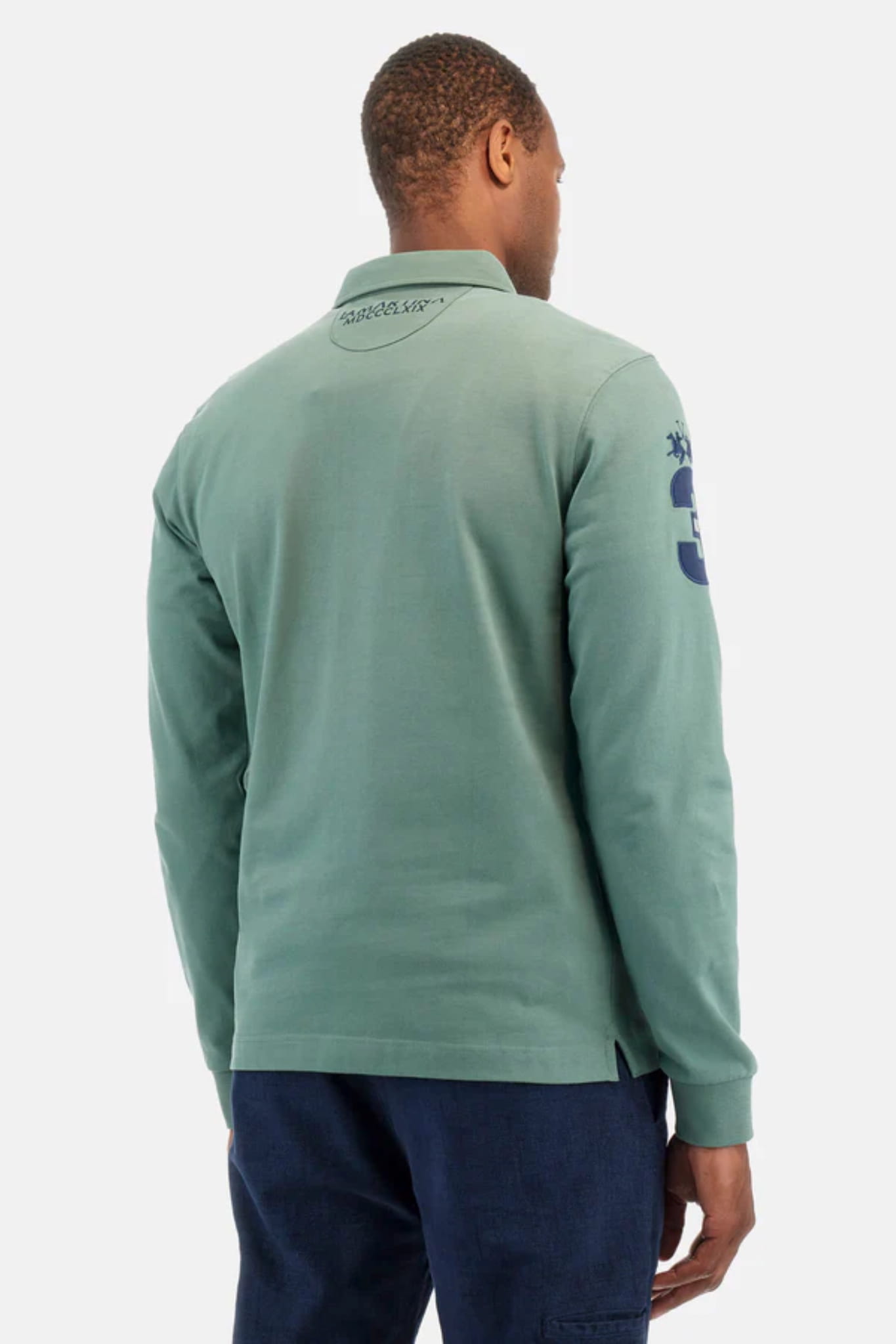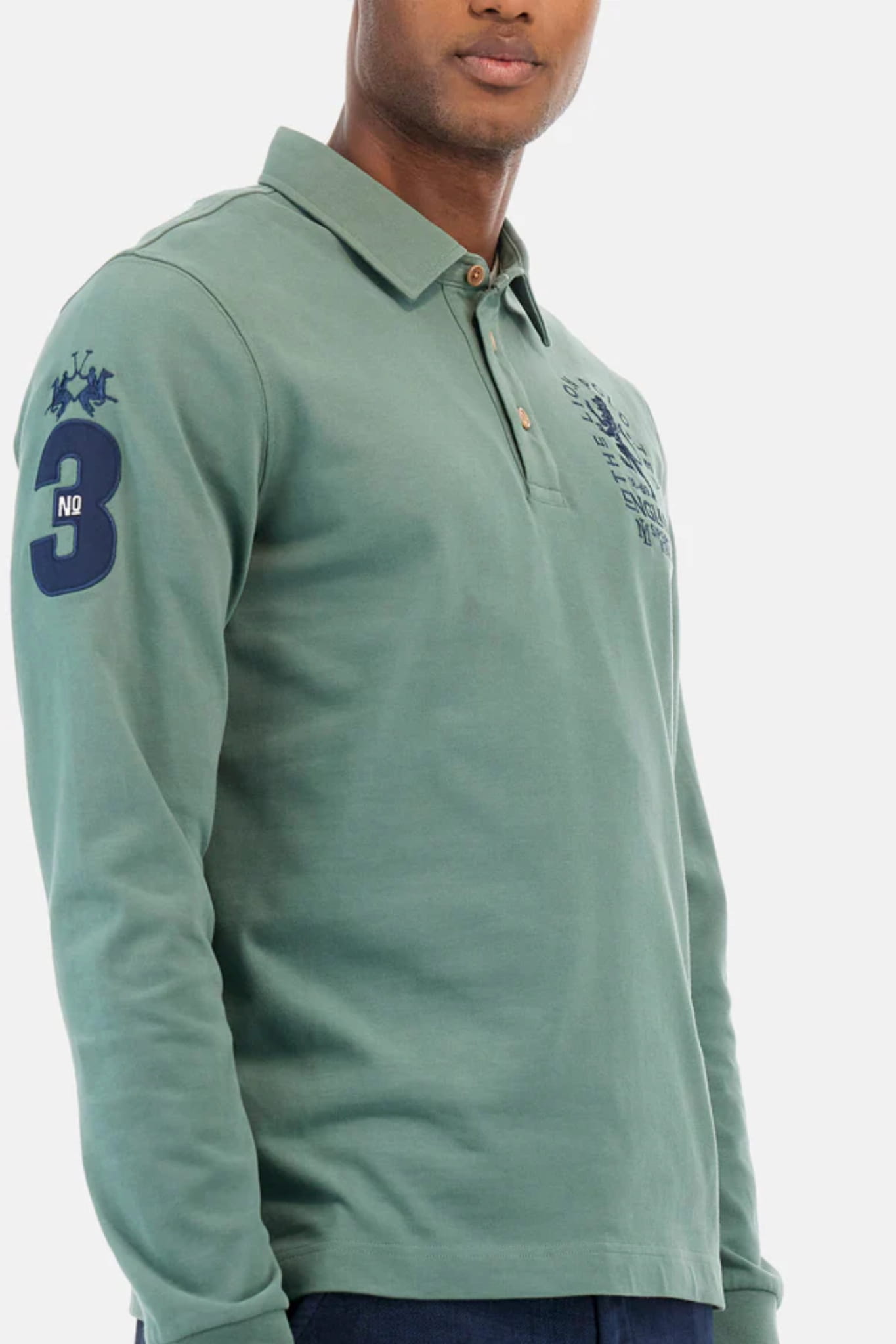 Męskie polo z długim rękawem i kołnierzykiem marki La Martina, w kolorze jasnej zieleni.