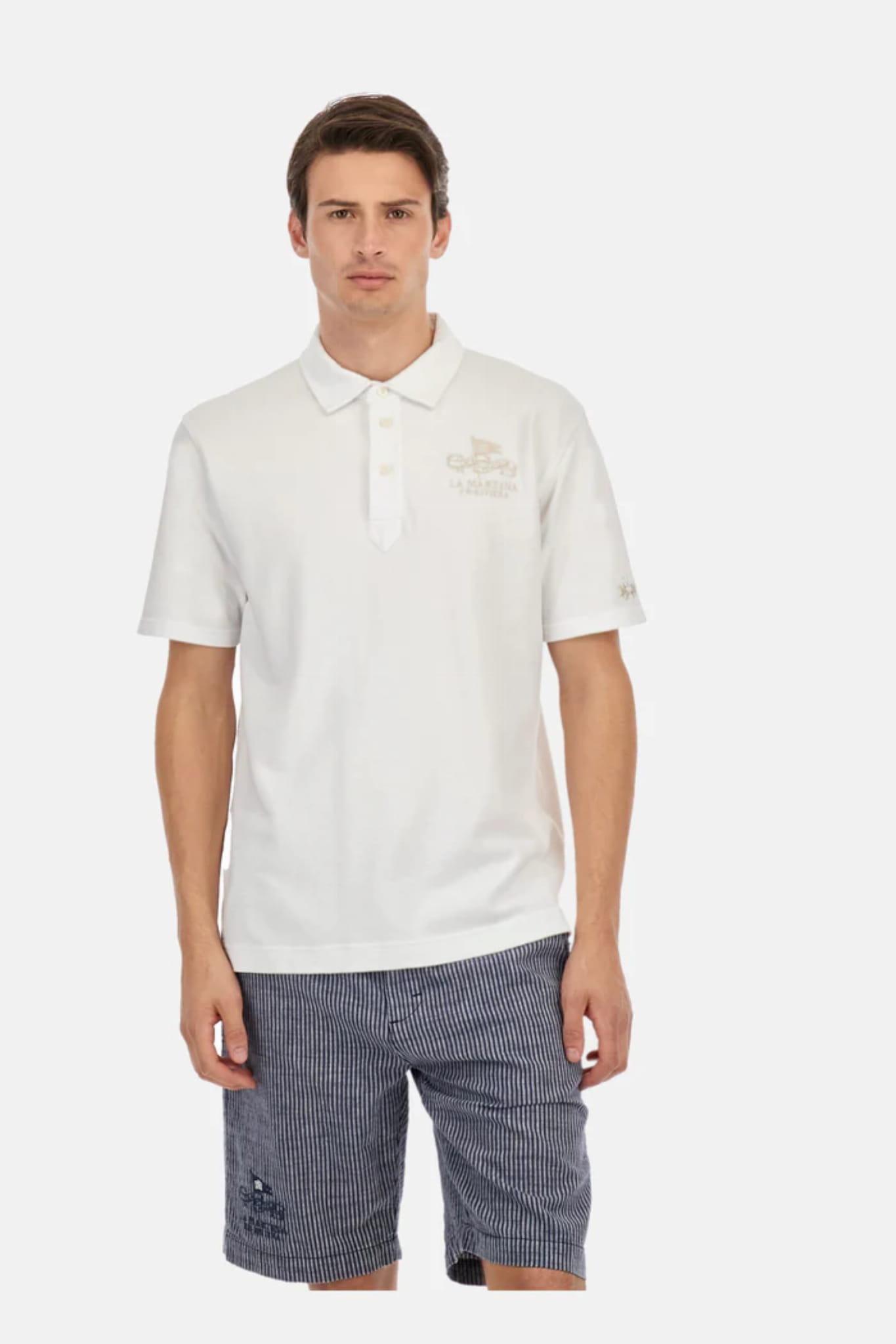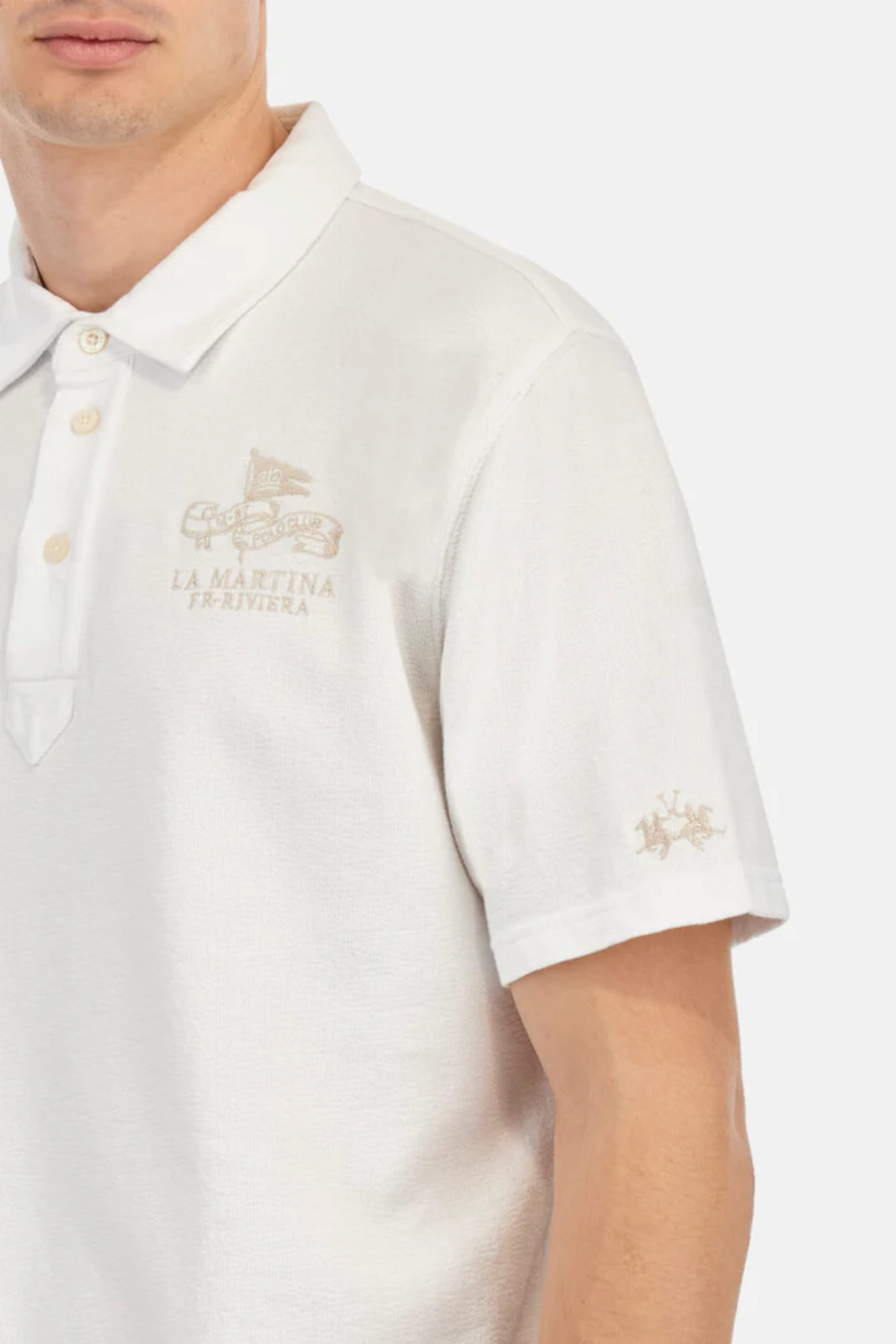 Męska koszulka polo z krótkim rękawem i kołnierzykiem marki La Martina w kolorze białym.