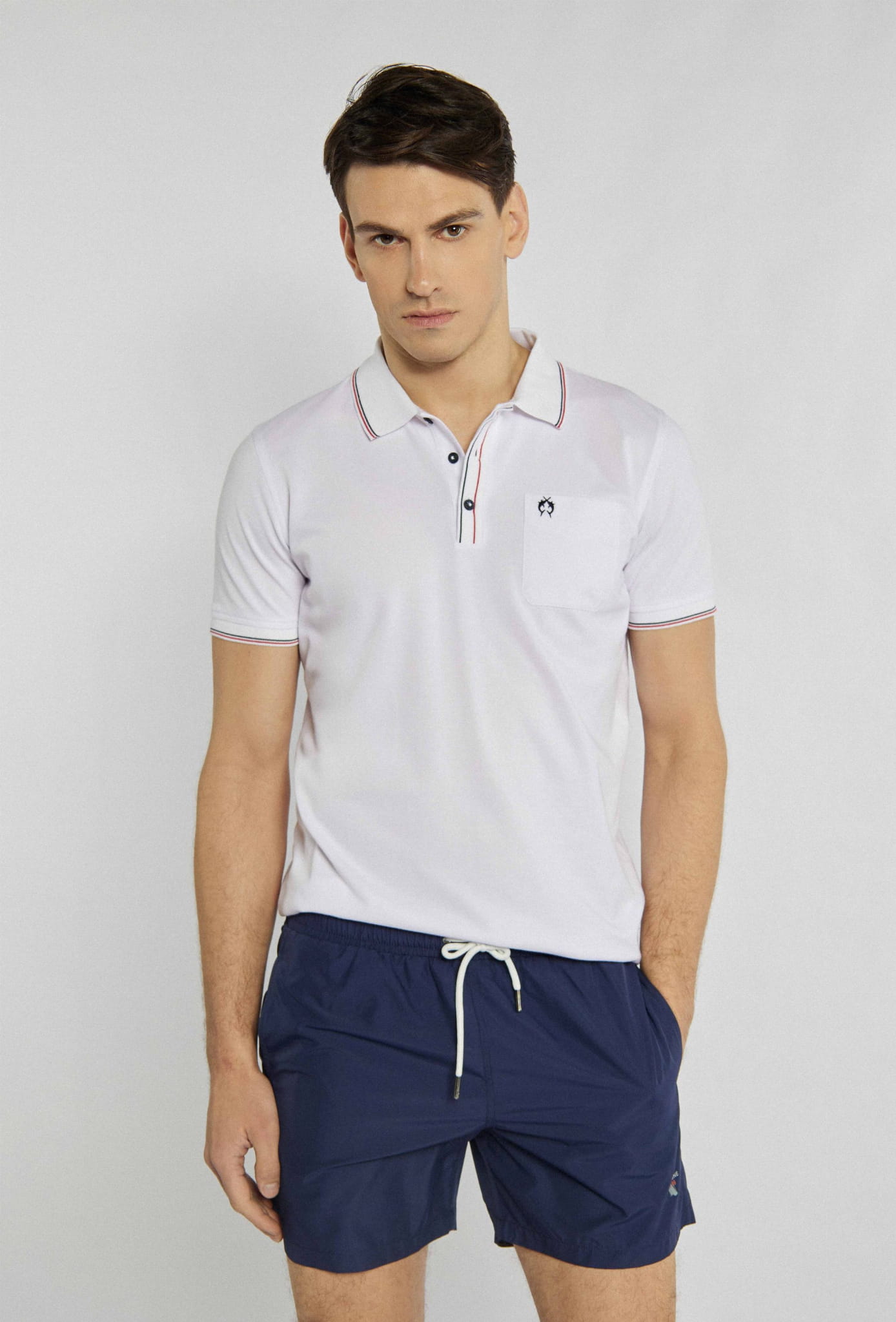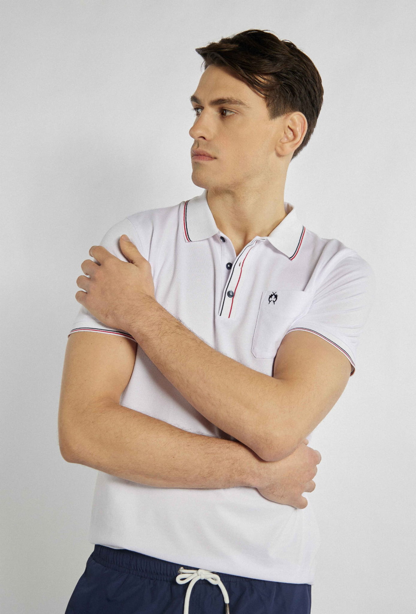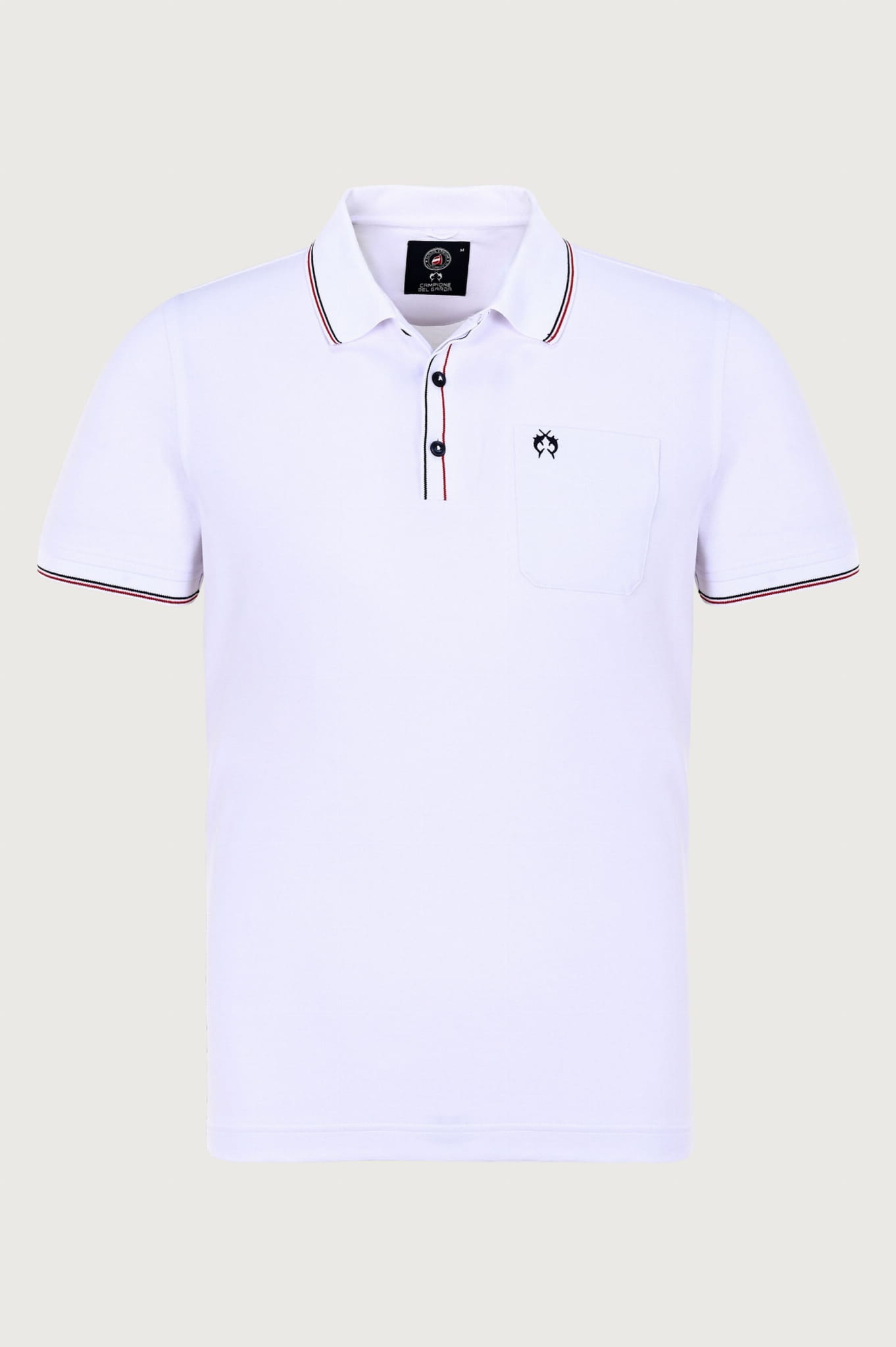 Męska koszulka polo z krótkim rękawem marki Campione w kolorze białym.