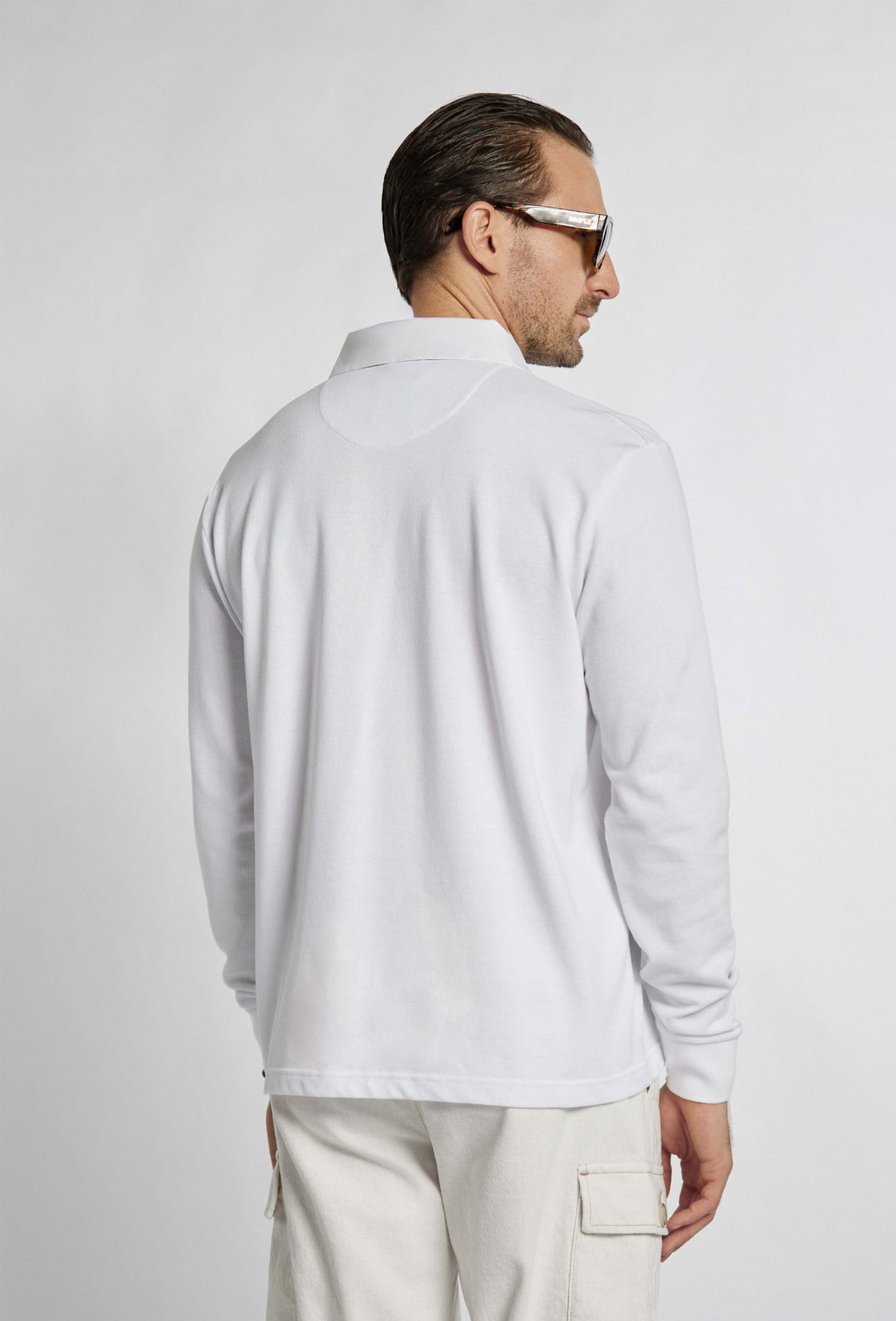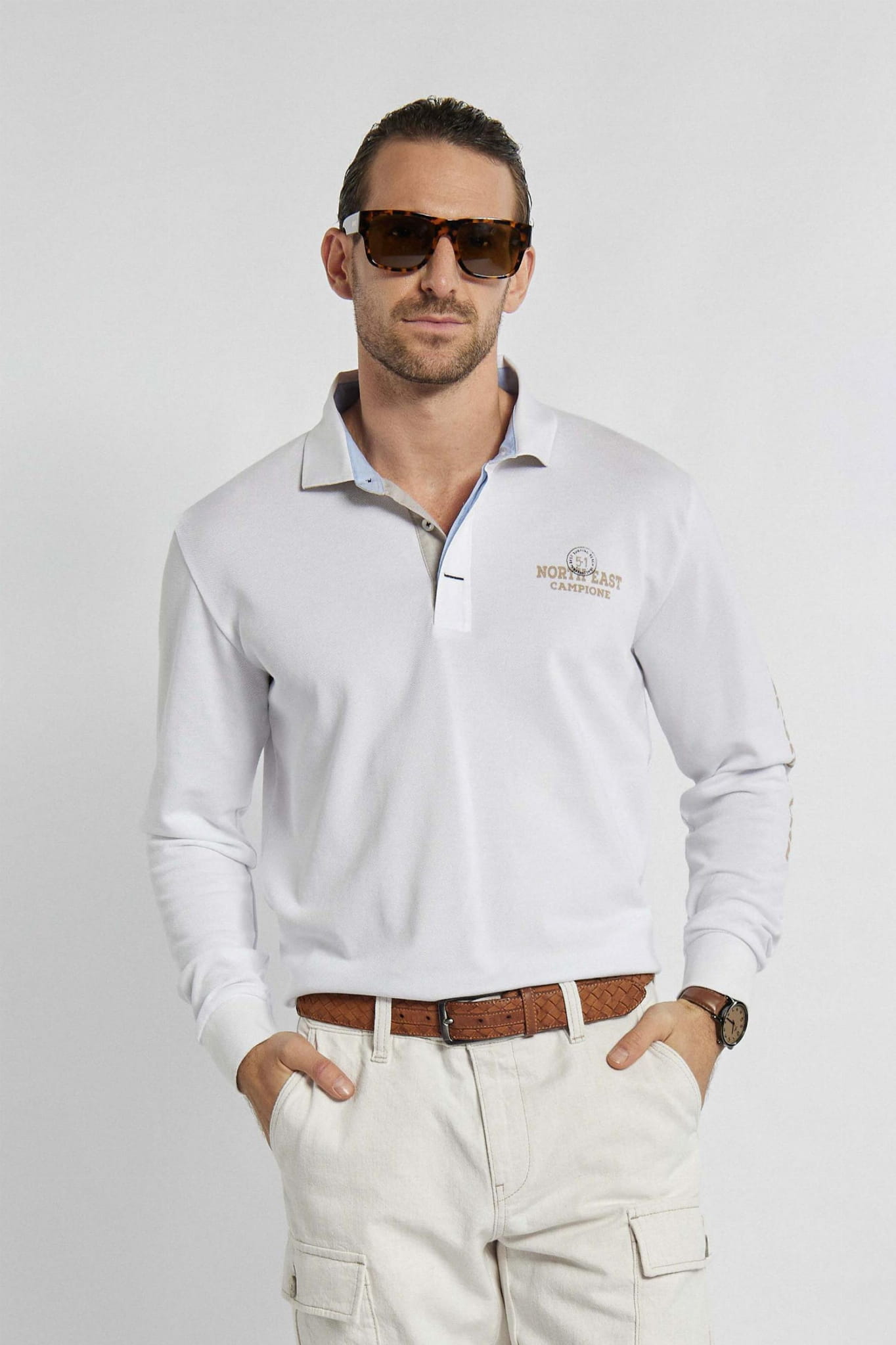 Męska koszulka polo z długim rękawem marki Campione w kolorze białym.