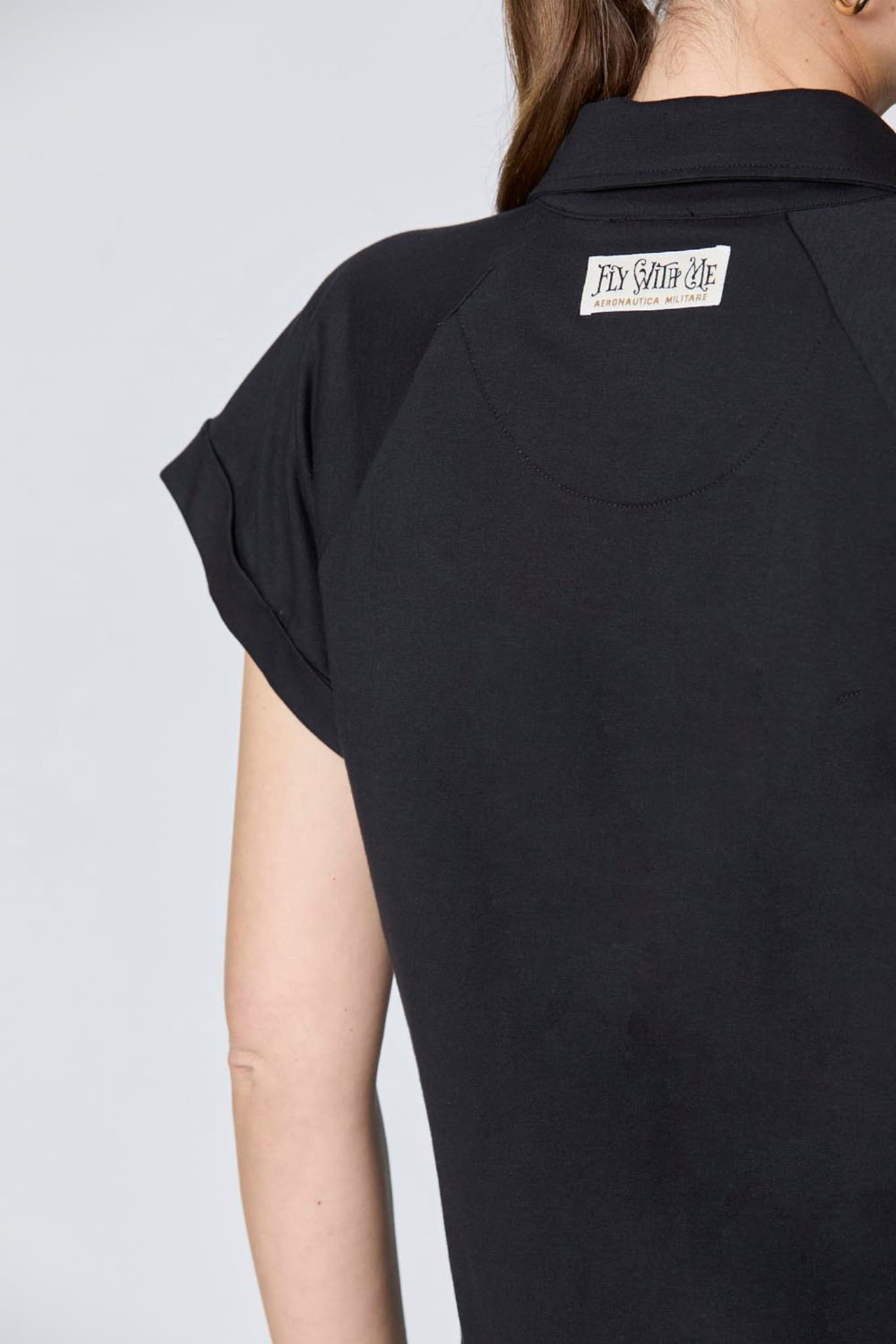 ⇒ Naszywka "Fly with me" z tyłu na karku.