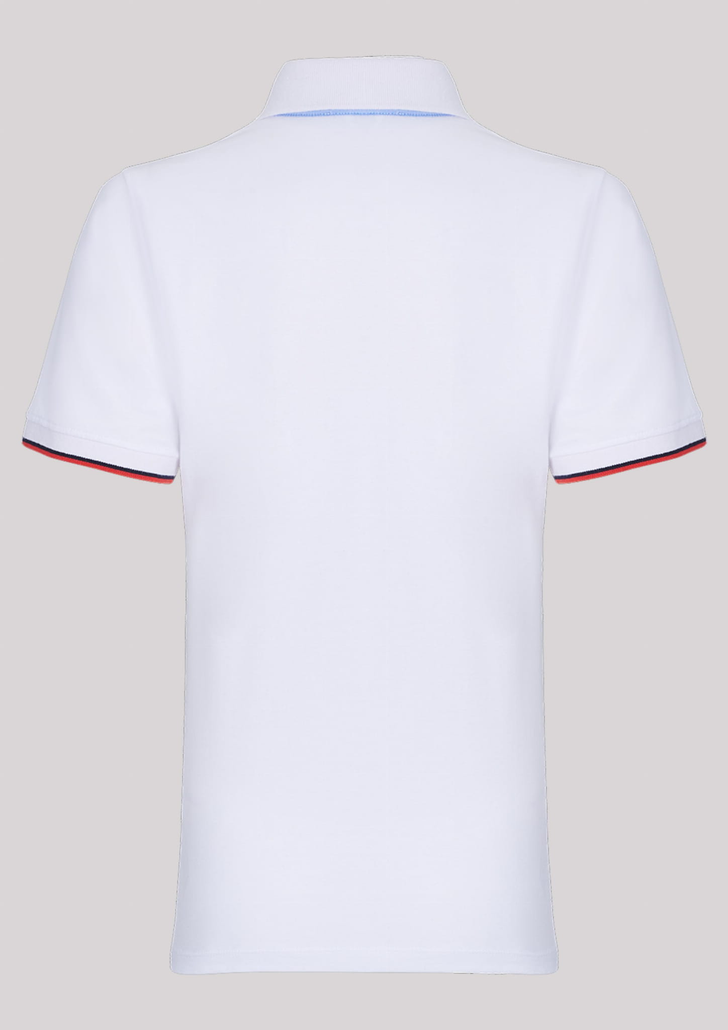 ⇒ Krótkie rękawki wykończone trójkolorowym prążkowanym ściągaczem.